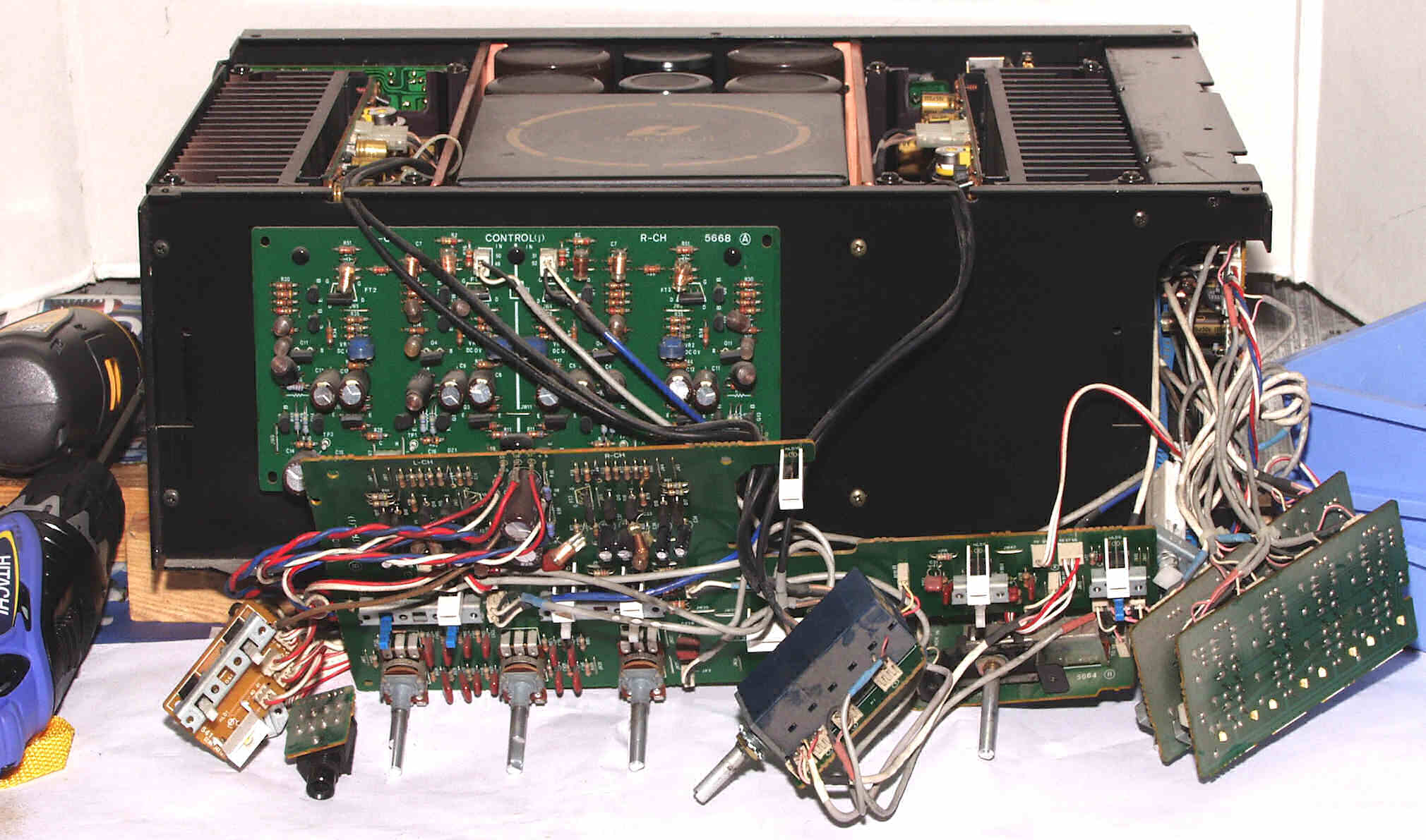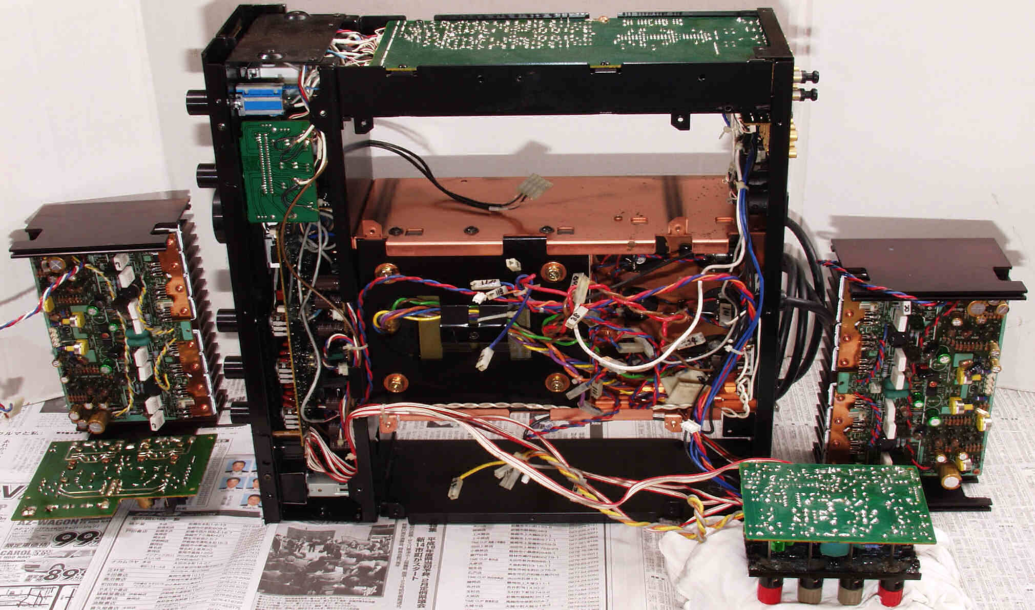 CE33. 修理中 R・L側終段基板 他方も清掃する