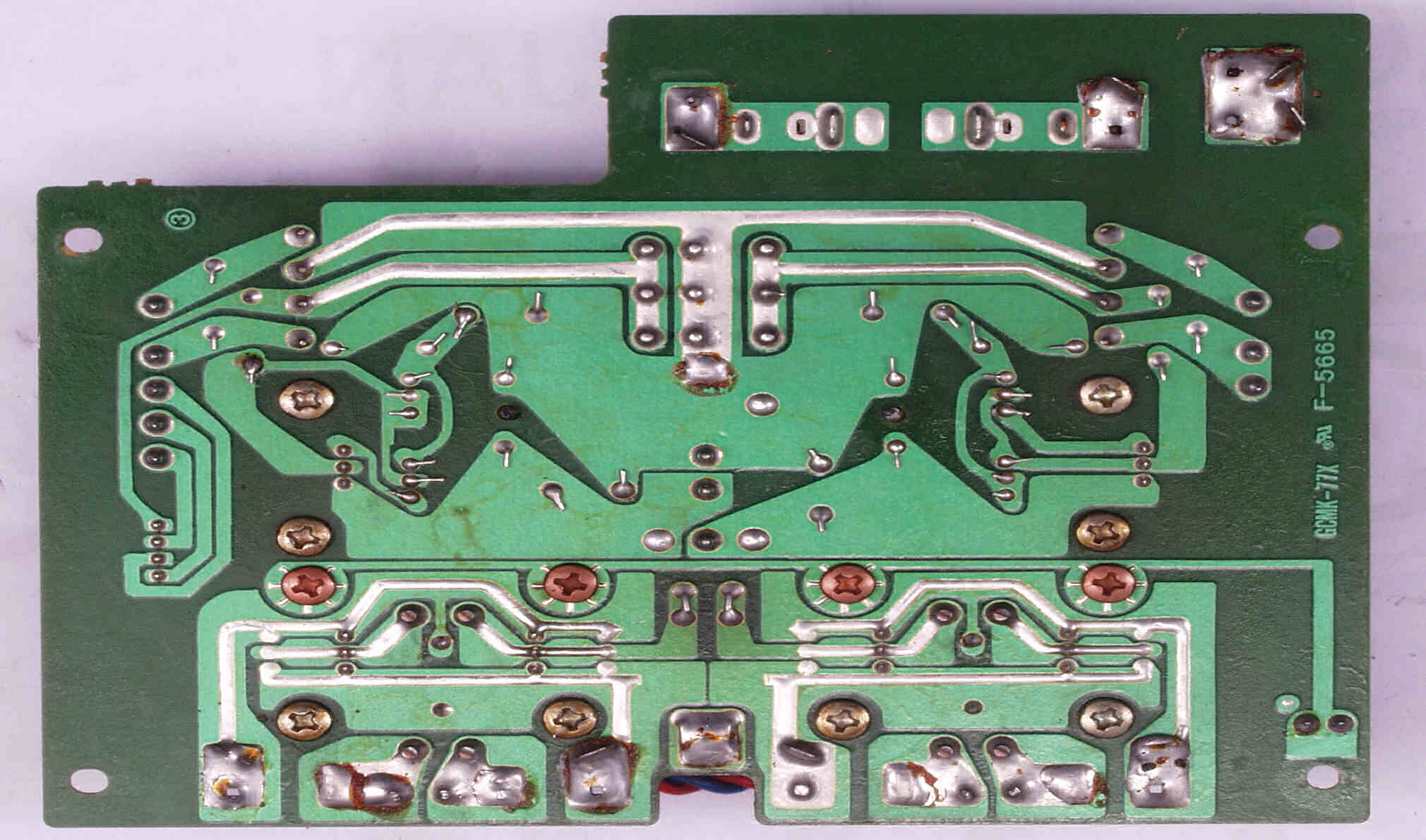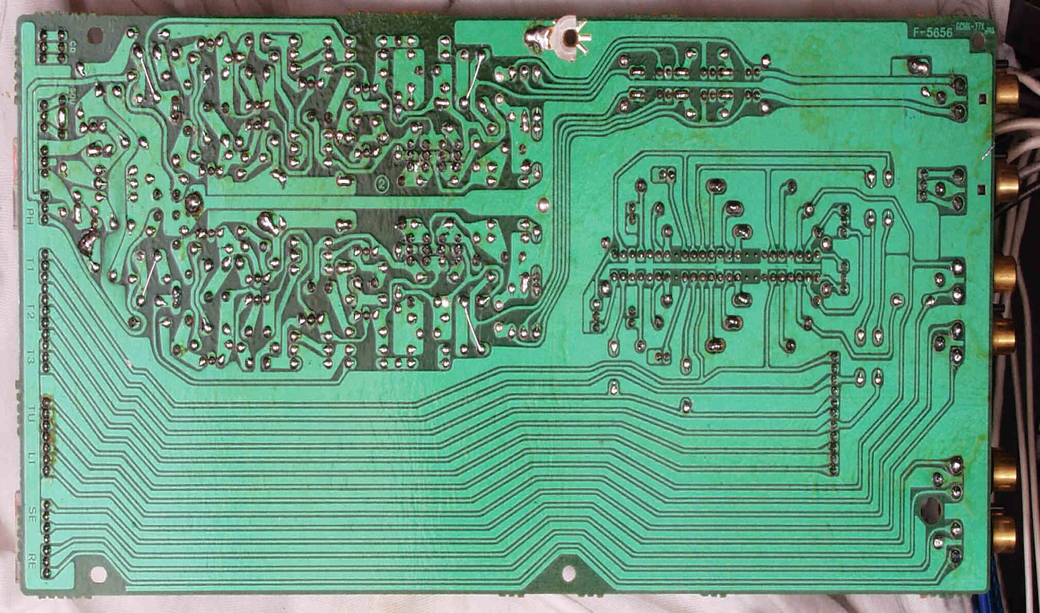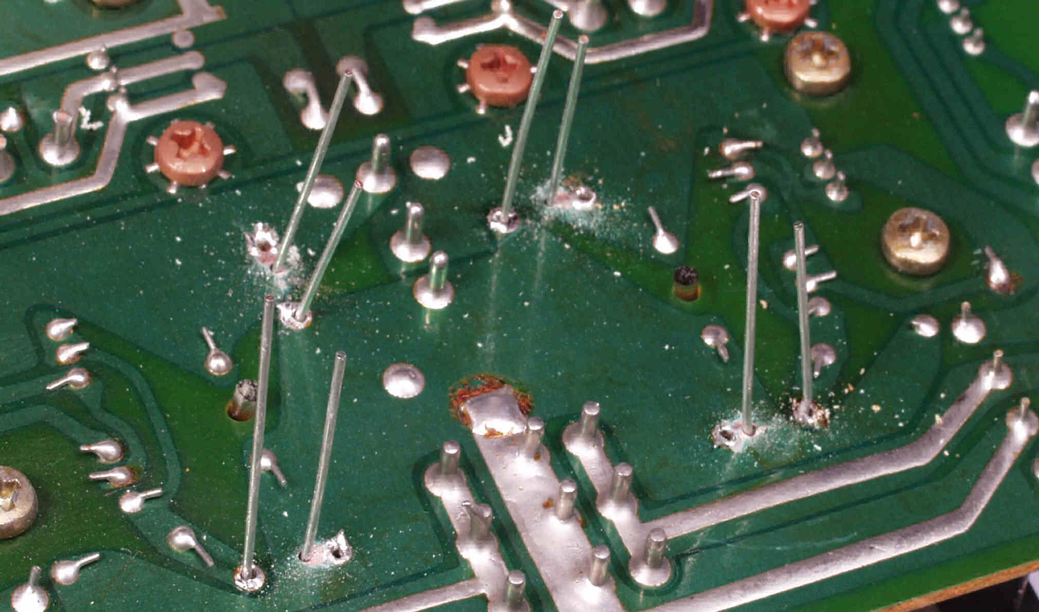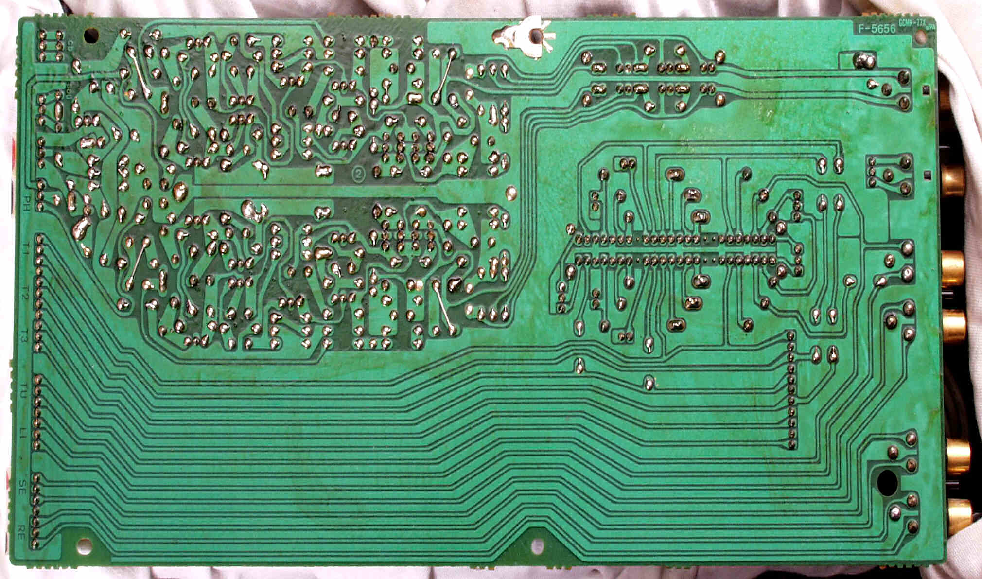 CE52. 修理中 R側終段基板裏 半田不良ヶ所2