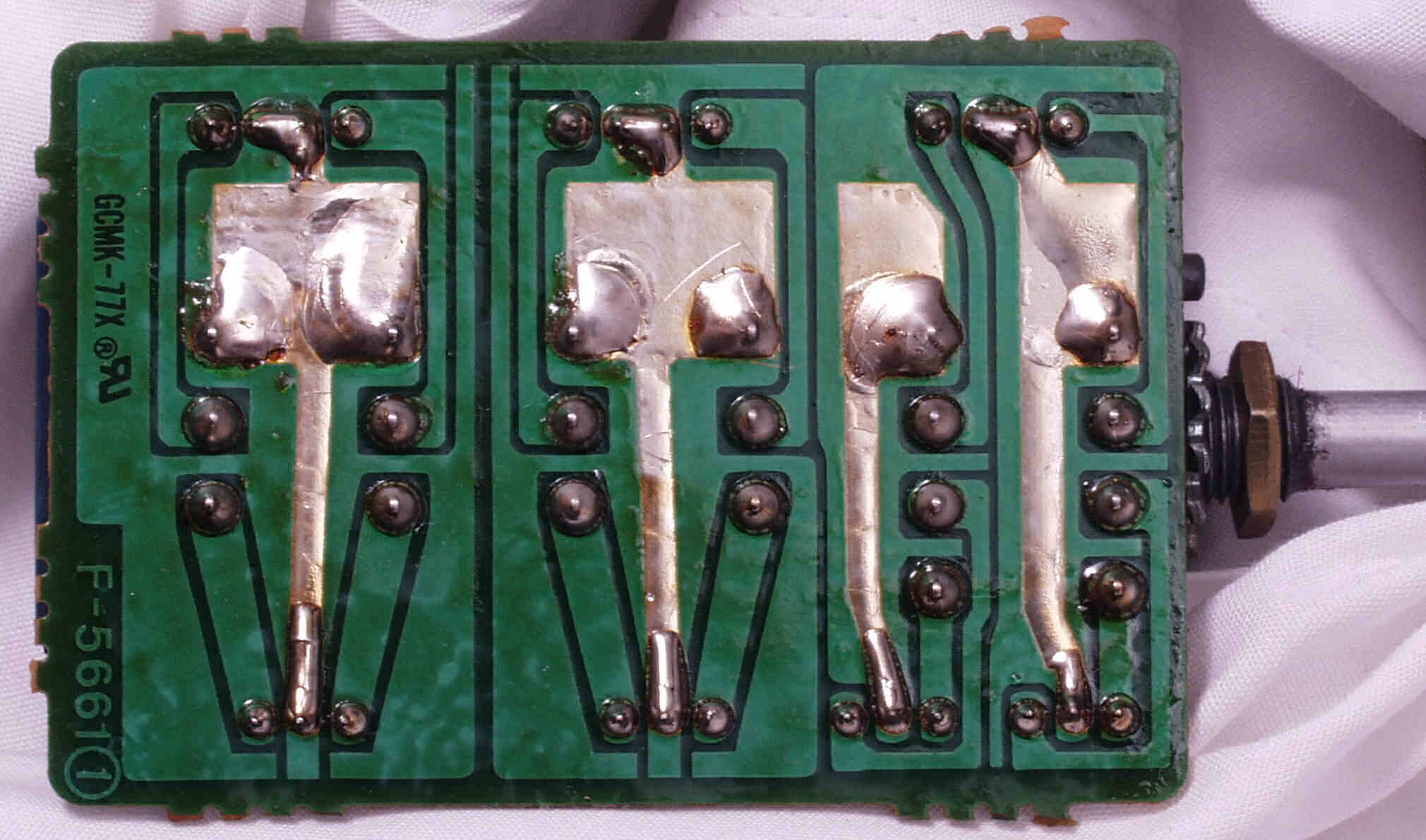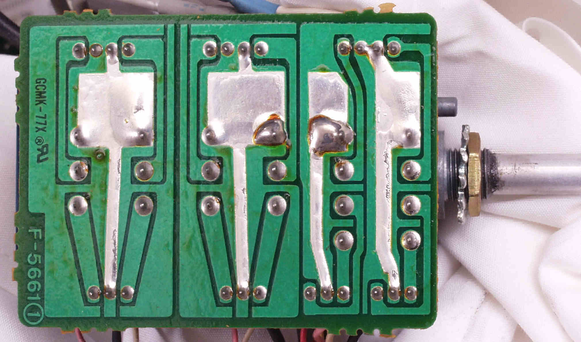 C72. 修理(ハンダ補正)後 入力切り替えSW基板裏  全ての半田をやり修す