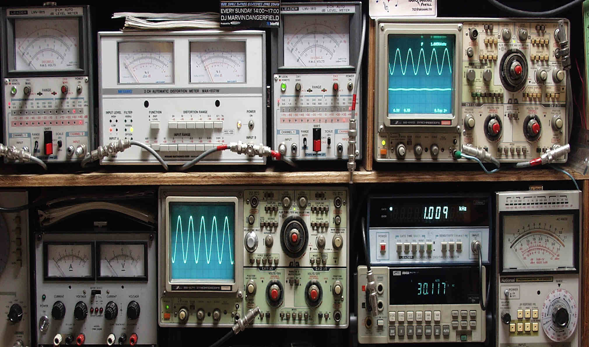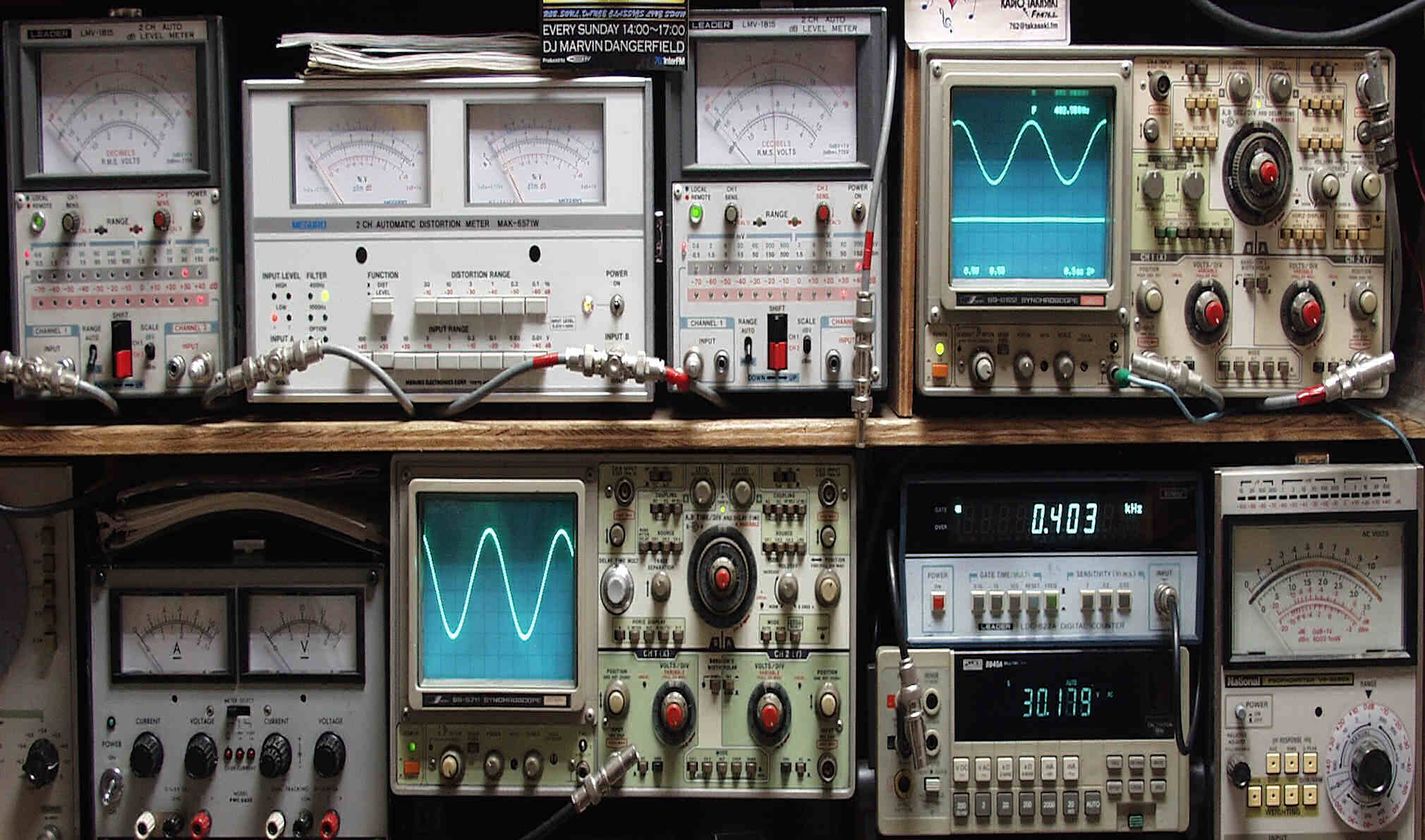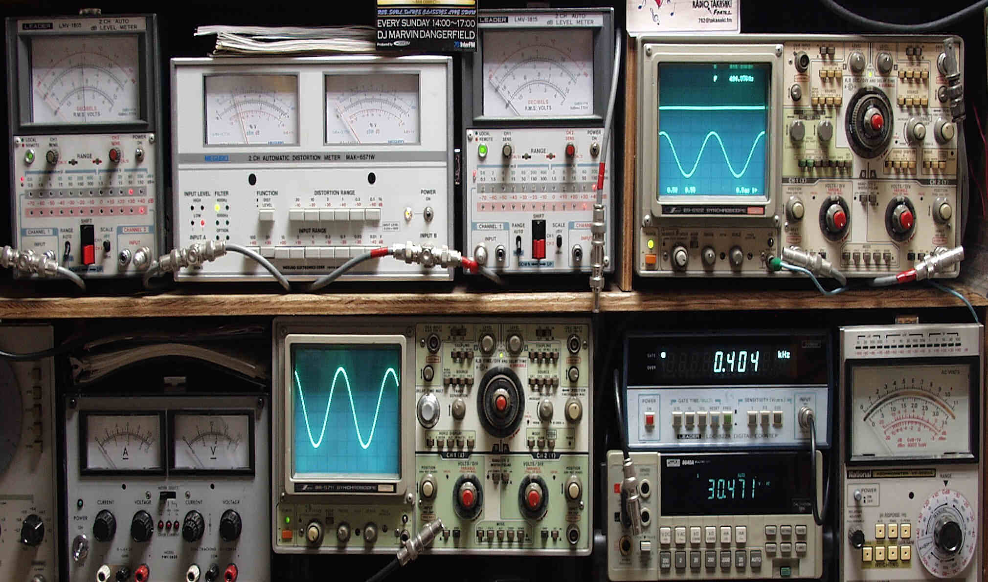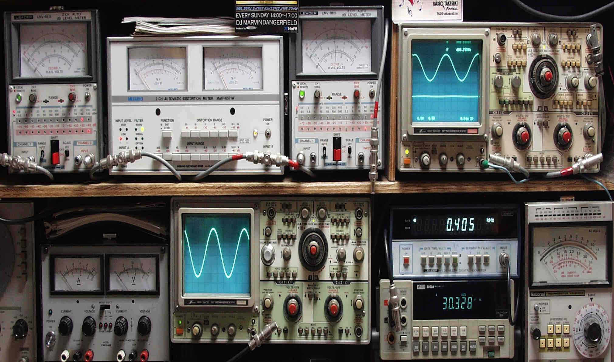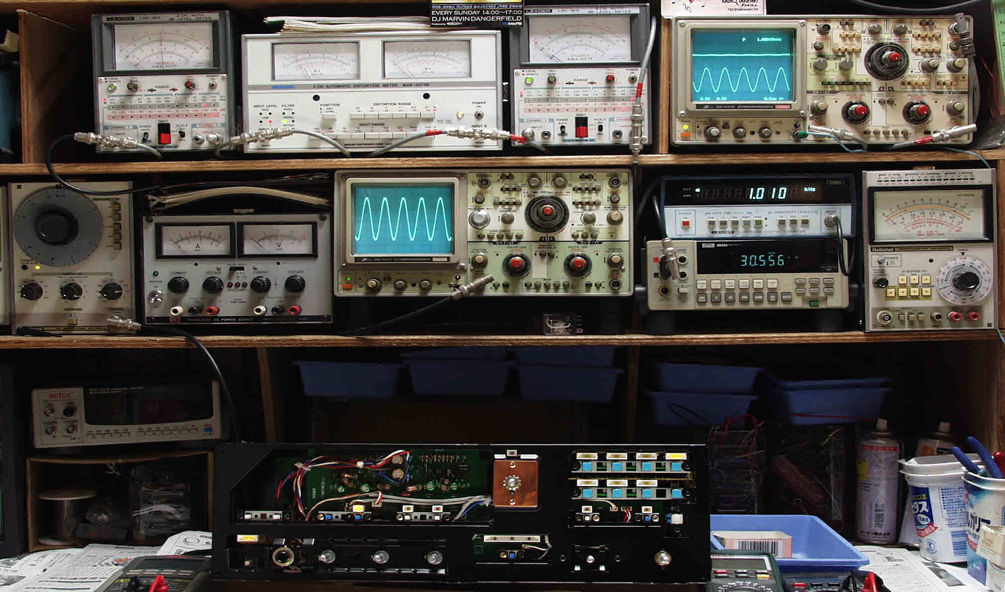 上段中左 歪み率計=SP出力の歪み率測定 左メータ=L出力、右メータ=R出力
