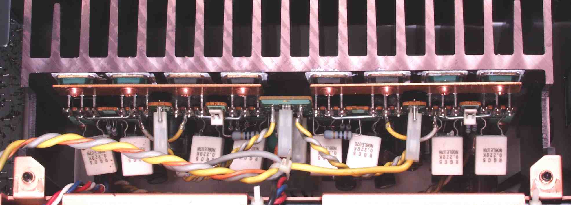 CE34. 修理後 R・L側終段基板 ガラスチュウブを入れて固定する