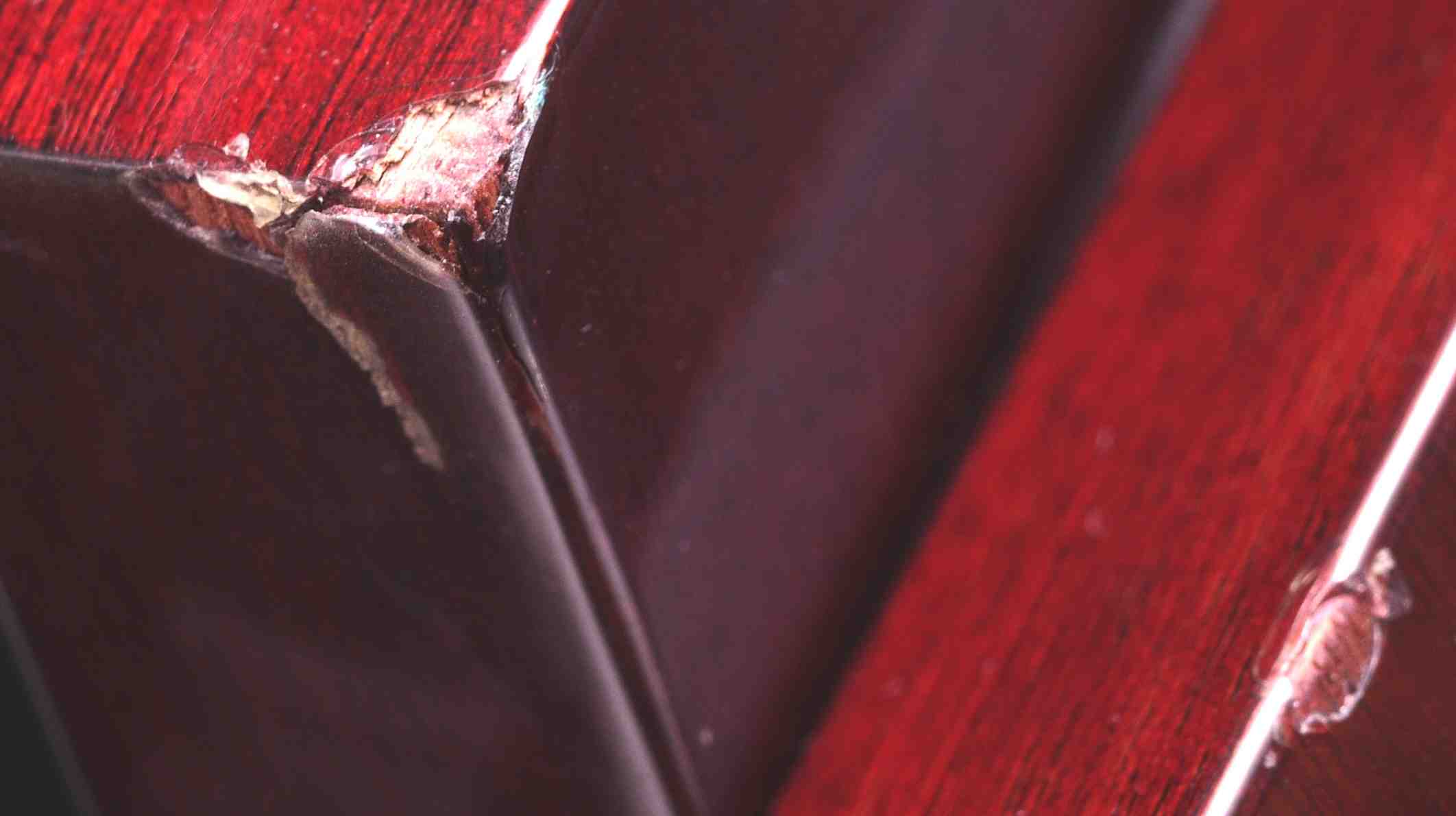 CJ2. 修理後 側面木パネルの割れ(ヒビ)、接着材で止めておく