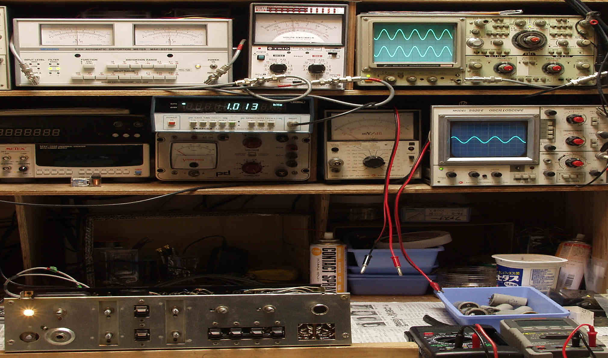 A−4. 修理前点検中 SP出力測定10V=13W出力 5%歪み 400HZ