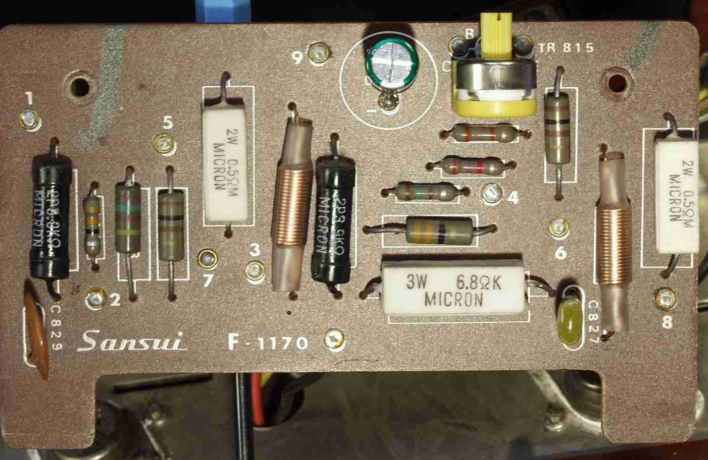 | C−2B. 修理後 右終段基板 半固定VR 電解コンデンサー フイルムコンデンサー交換 | ||||||||||||||||||||||||||||||||||||||||||||||||||||||||||