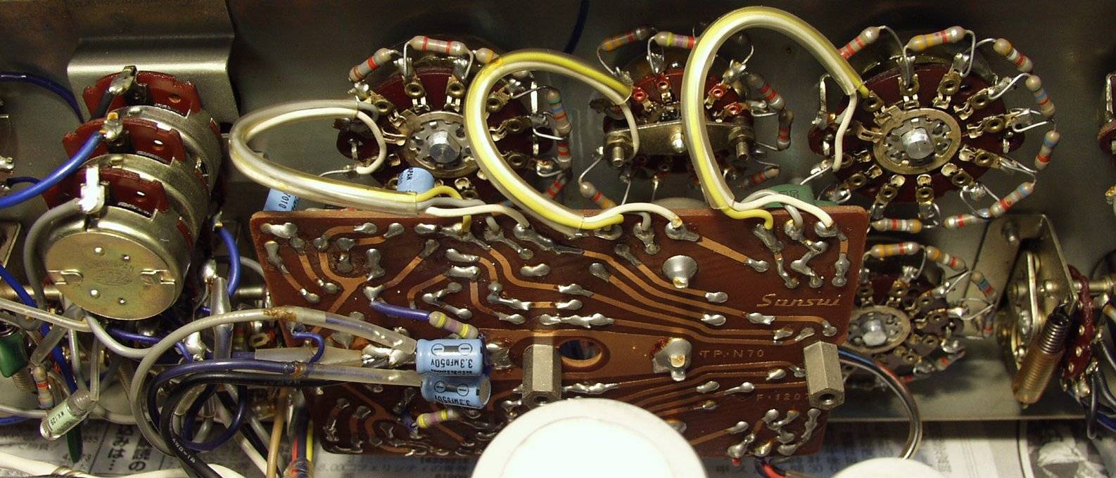 | C−2D. 修理後 左終段基板 半固定VR 電解コンデンサー フイルムコンデンサー交換 | ||||||||||||||||||||||||||||||||||||||||||||||||||||||||||