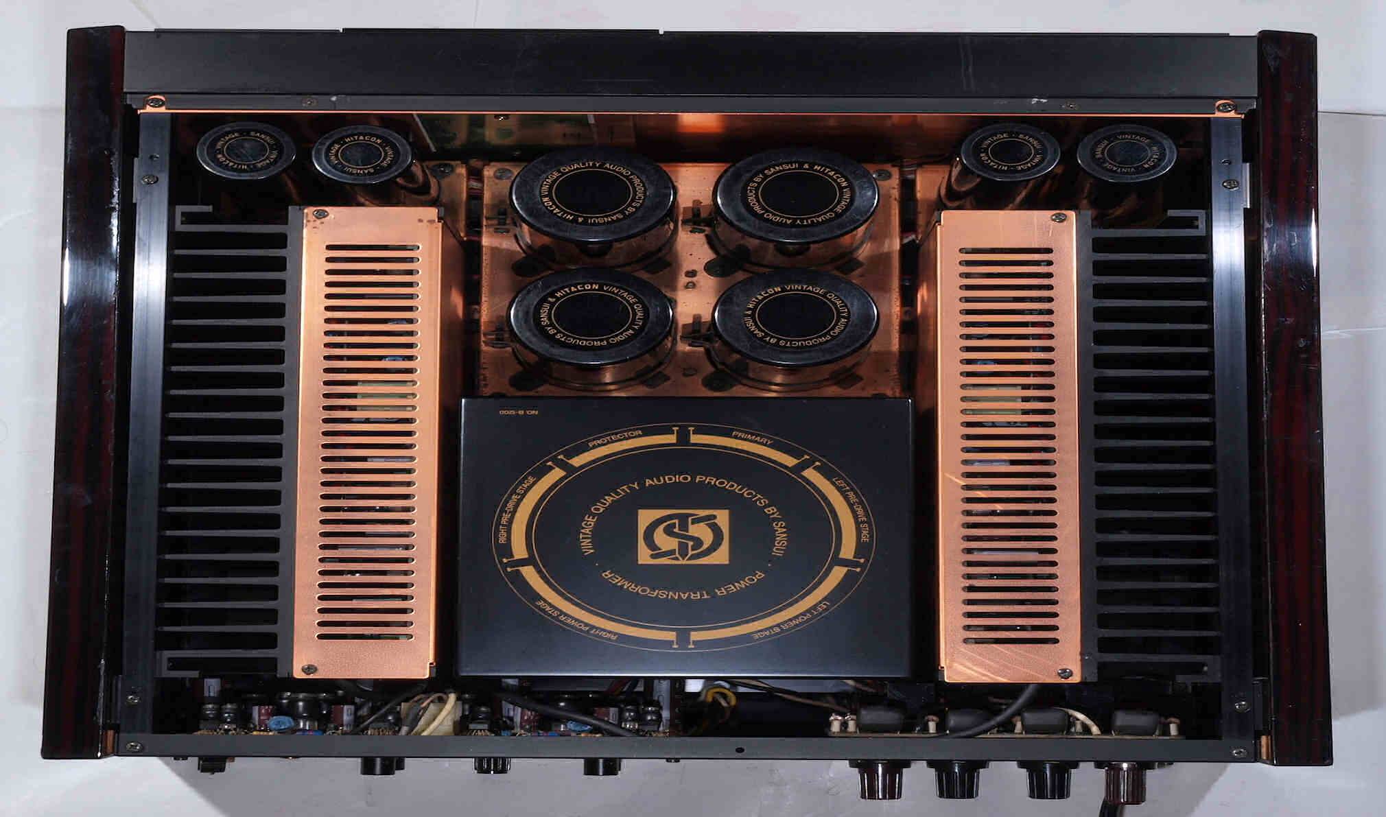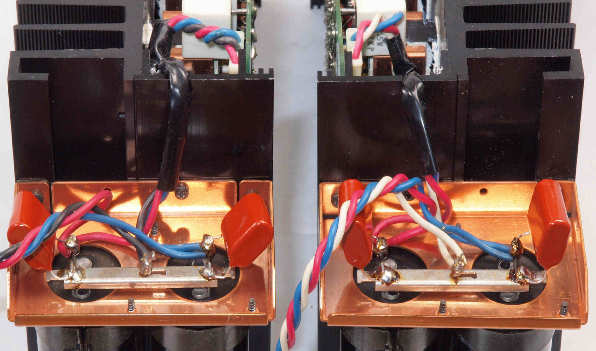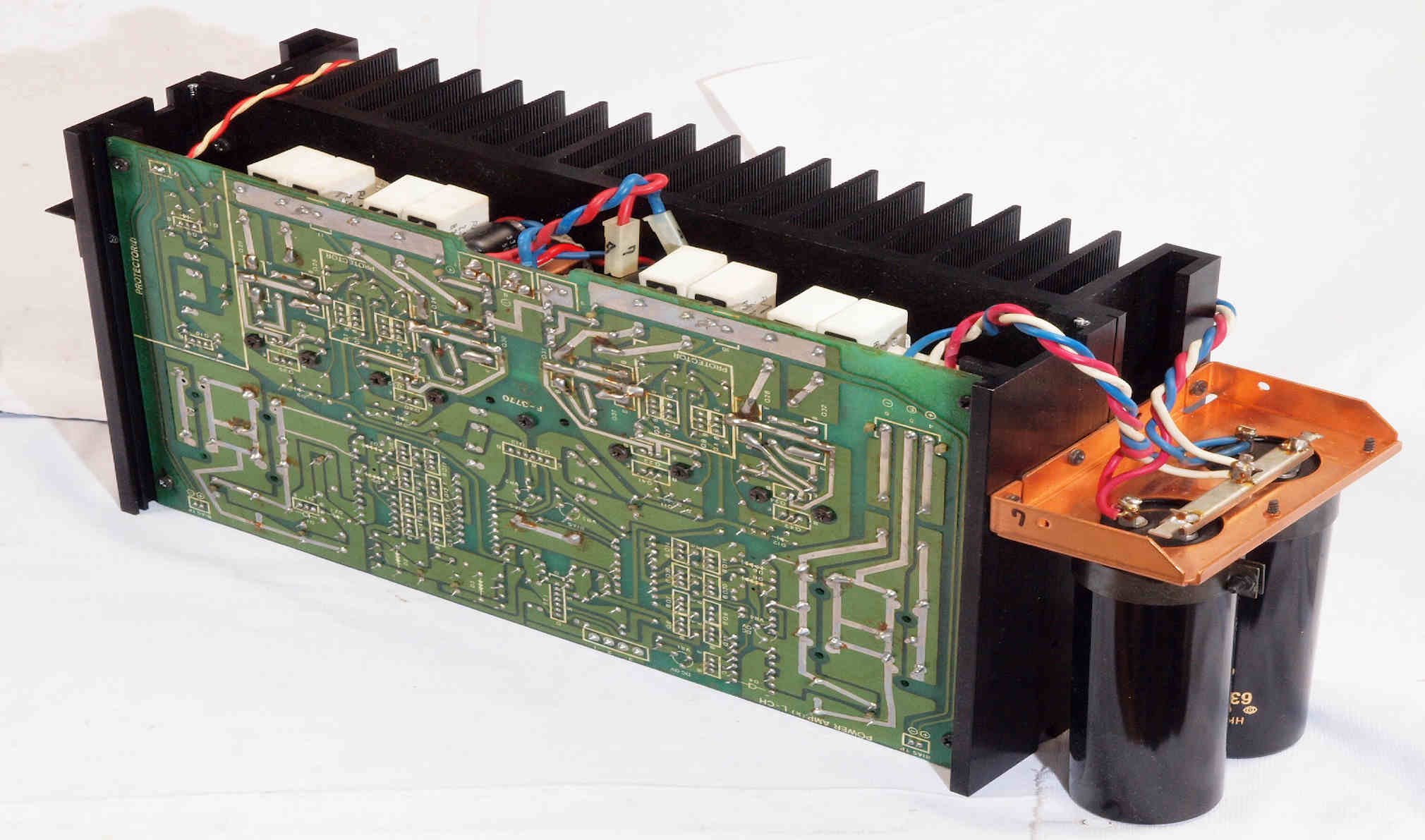 | C115. 修理中 R側AMPブロック、横取り付けの電解ブロックコンデンサー、底だけの固定なので曲がっている。 | ||||||||||||||||||||||||||||||