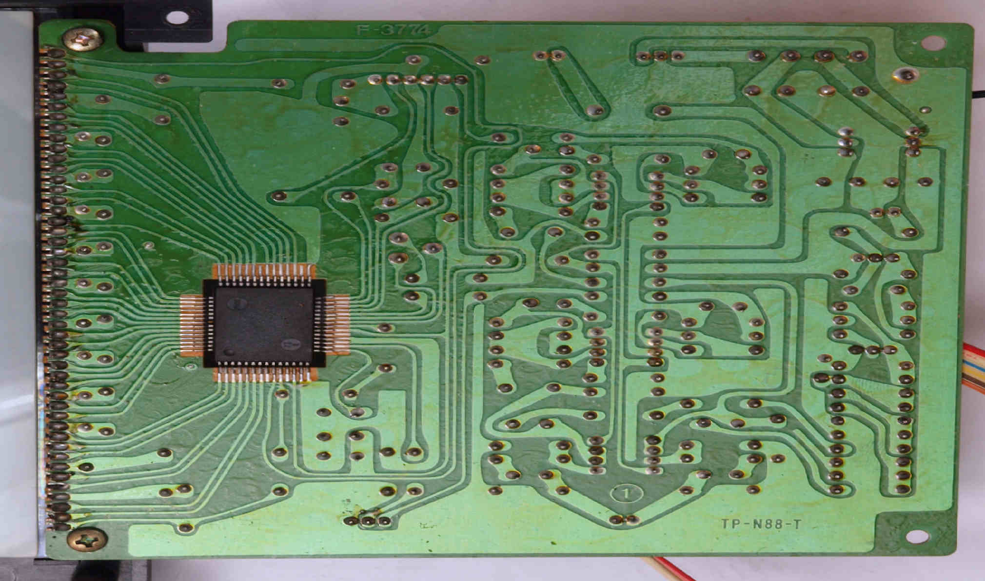 | C232. 修理中 LAMP基板、電解コンデンサー固定用の接着材、当時は溶媒にトルエンが使用されており、銅を腐食する。 | ||||||||||||||||||||||||||||||