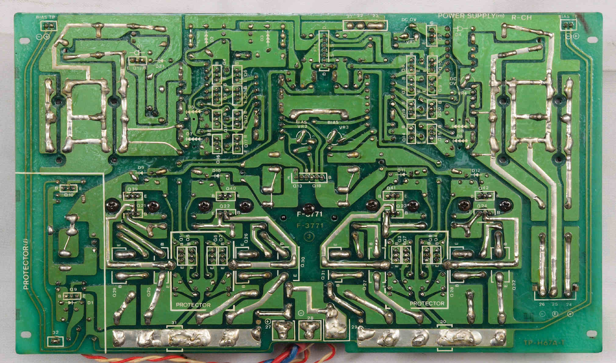 | C16. 修理(半田補正)後 R側AMP基板裏。 半田を全部やり直す。 | ||||||||||||||||||||||||||||||