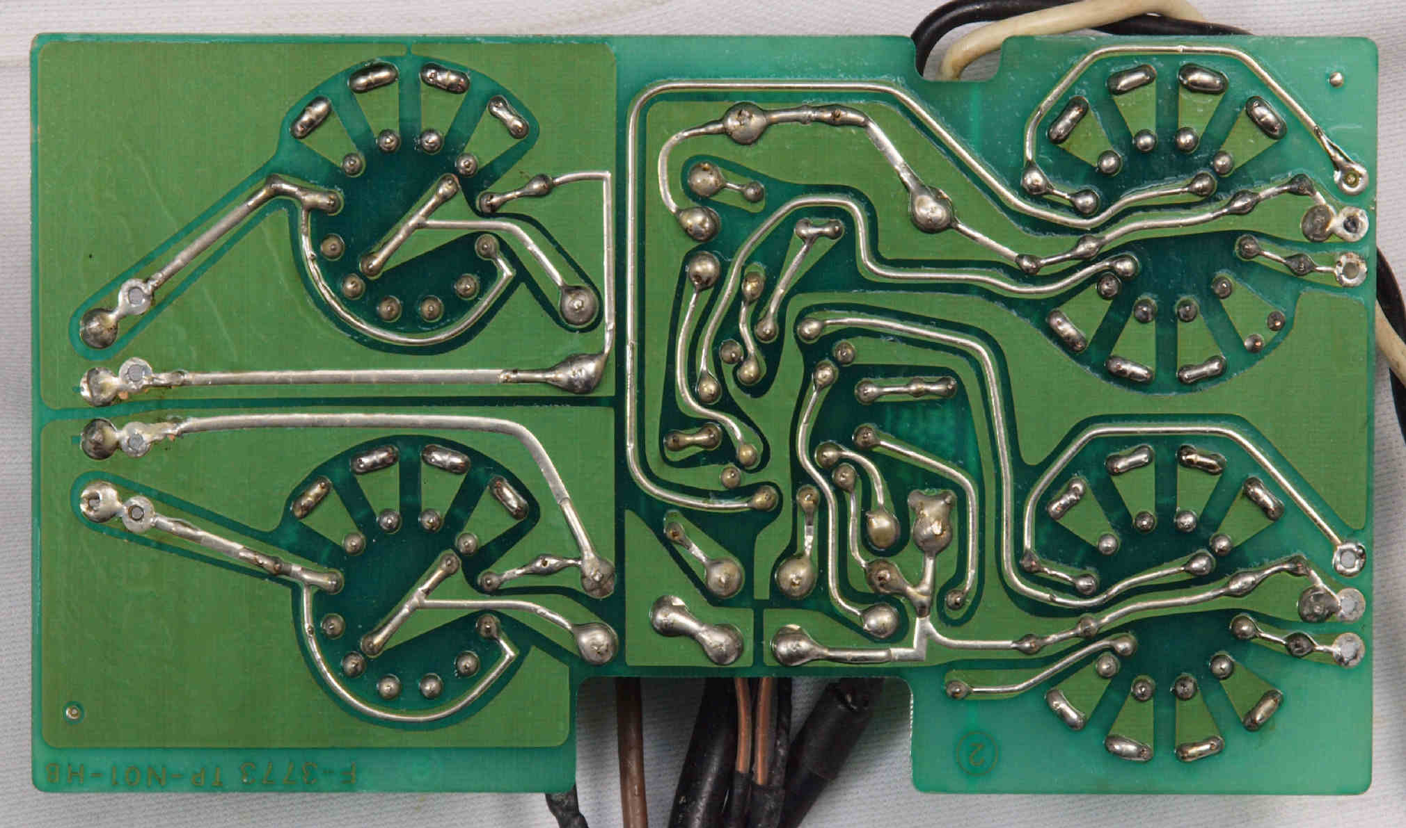 | C54. 修理(半田補正)後 入力VR基板裏。 半田を全部やり直す。 | ||||||||||||||||||||||||||||||
