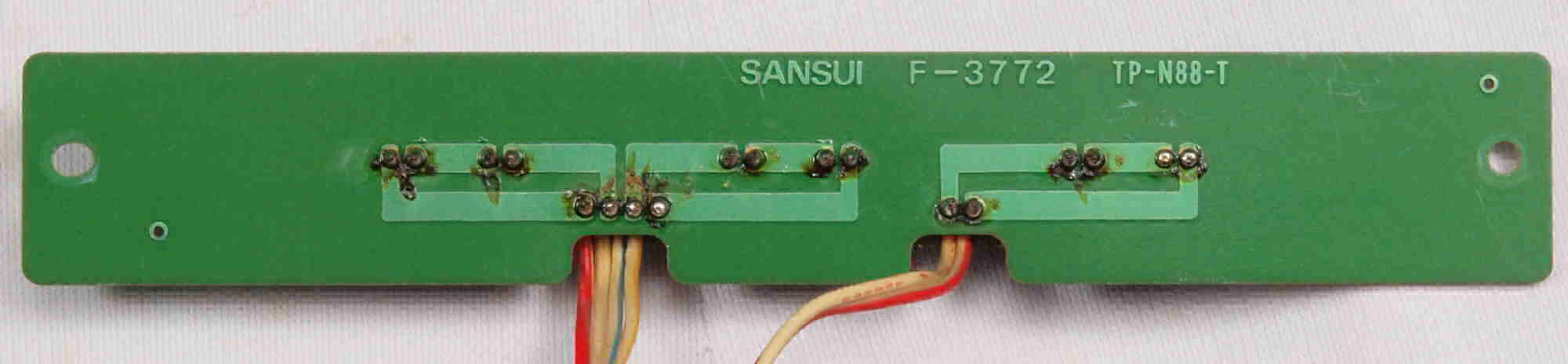 | C73. 修理(半田補正)後 電源表示LED基板裏・モードSW基板裏。 半田を全部やり直す。 | ||||||||||||||||||||||||||||||