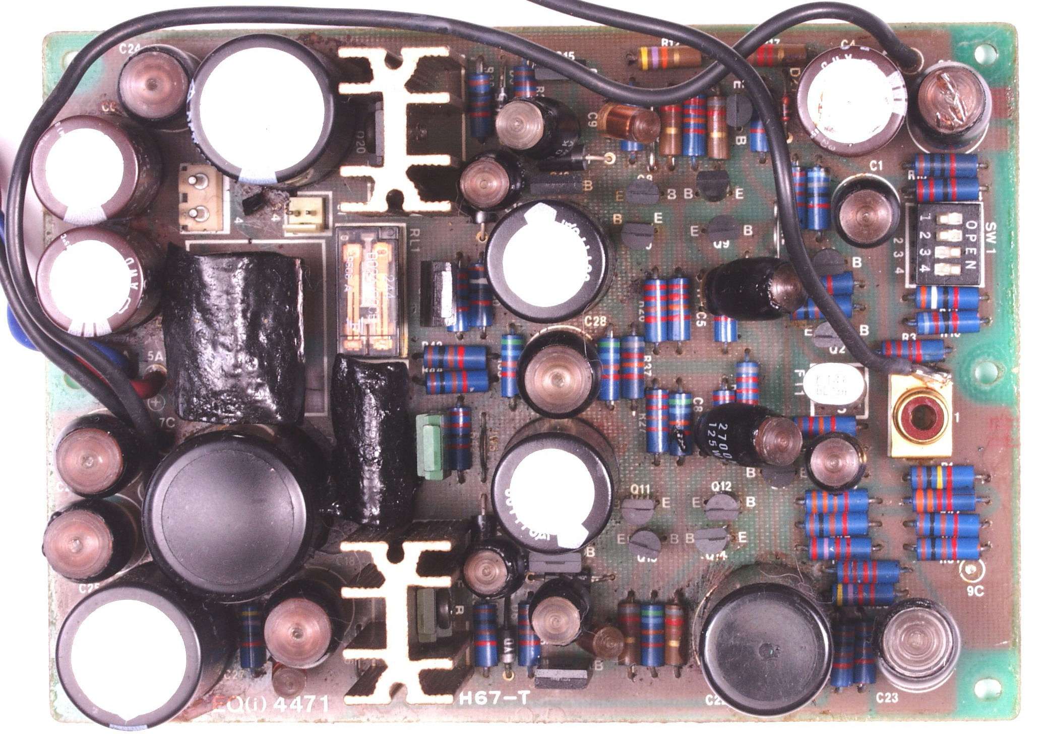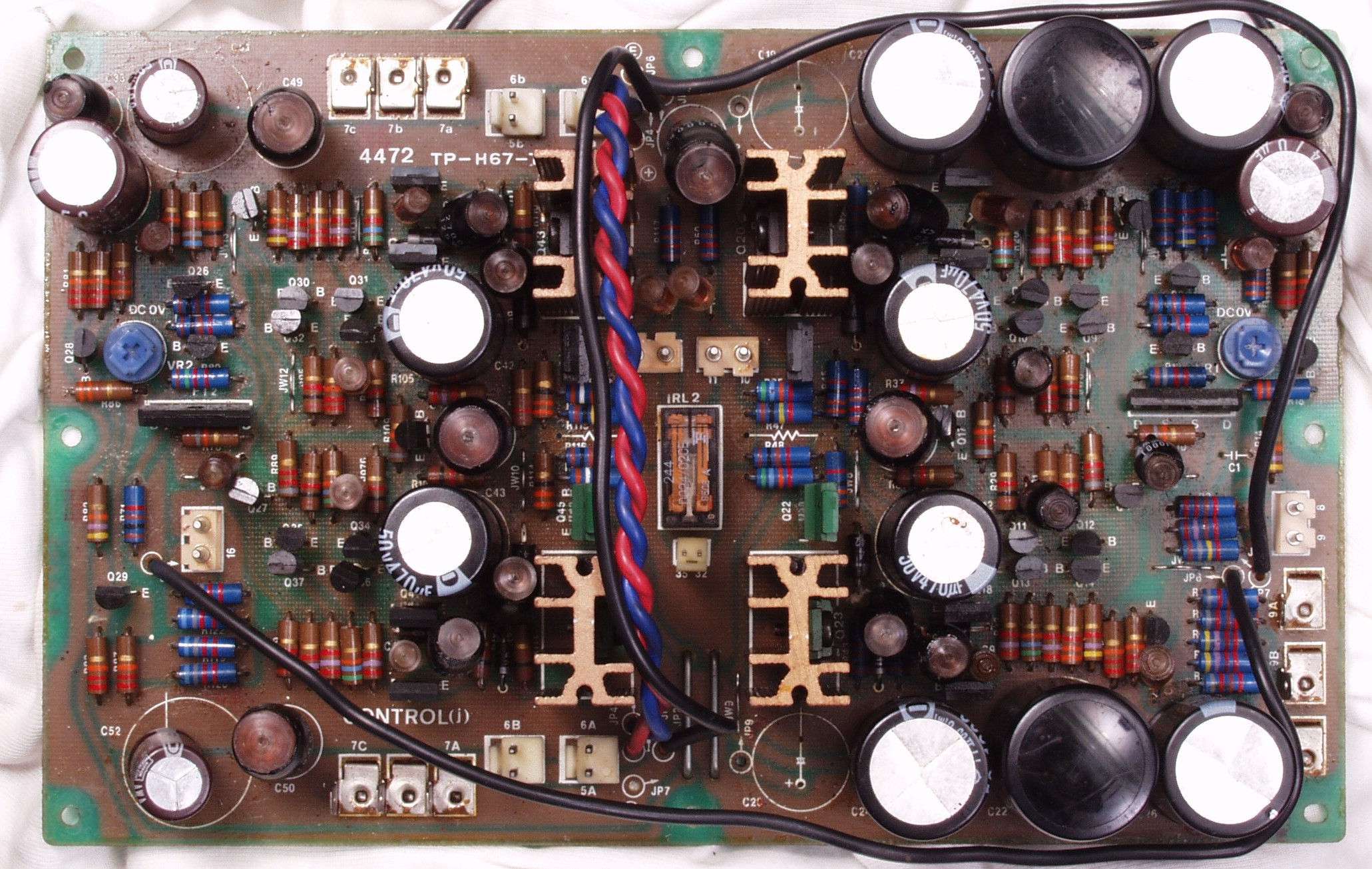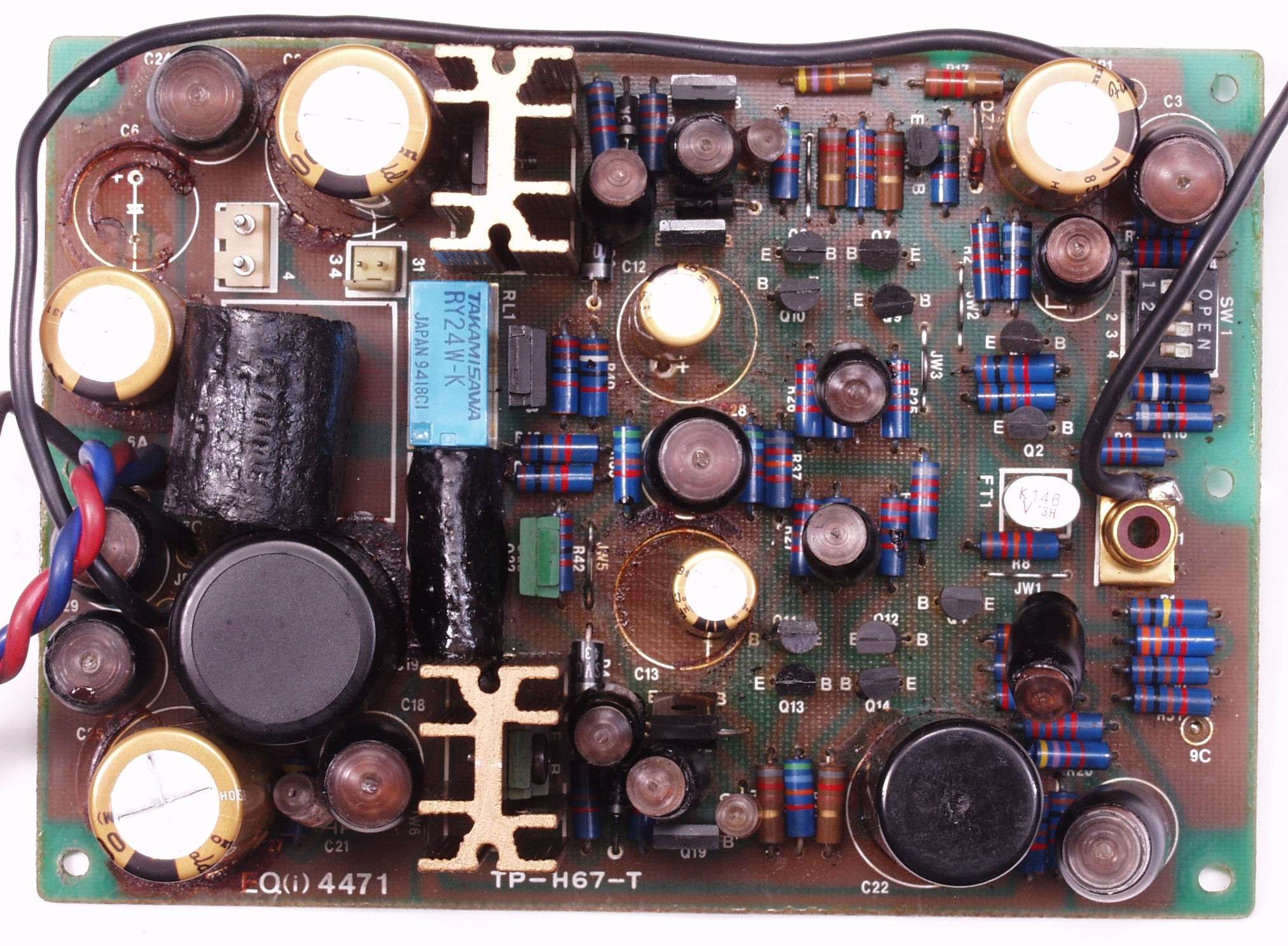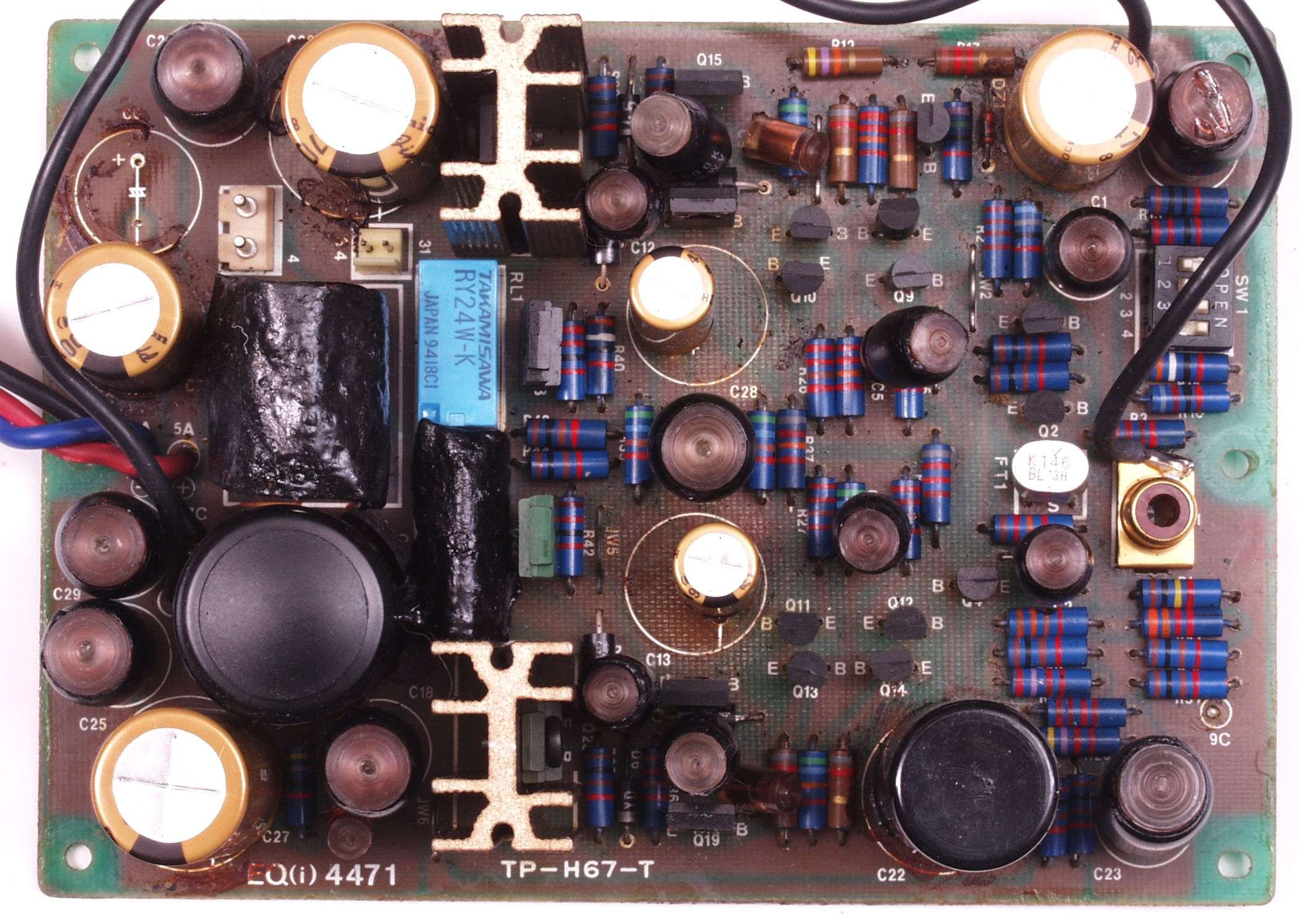 | A32. 点検中 L側EQ−AMP基板、膨らんだフイルム・コンデンサー | |||||||||||||||||||