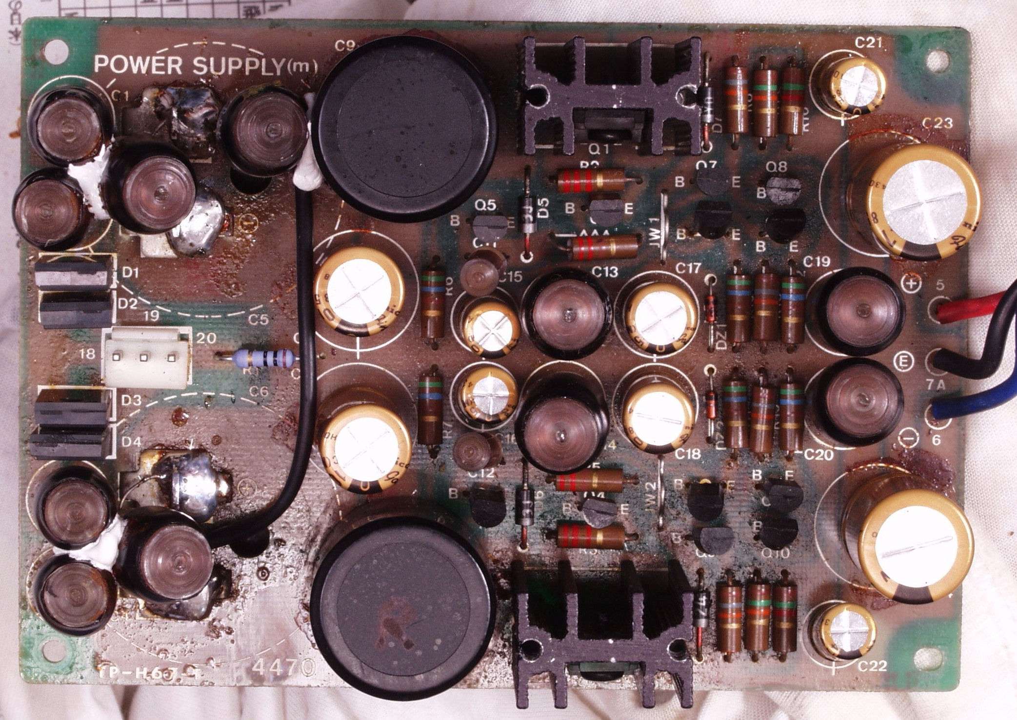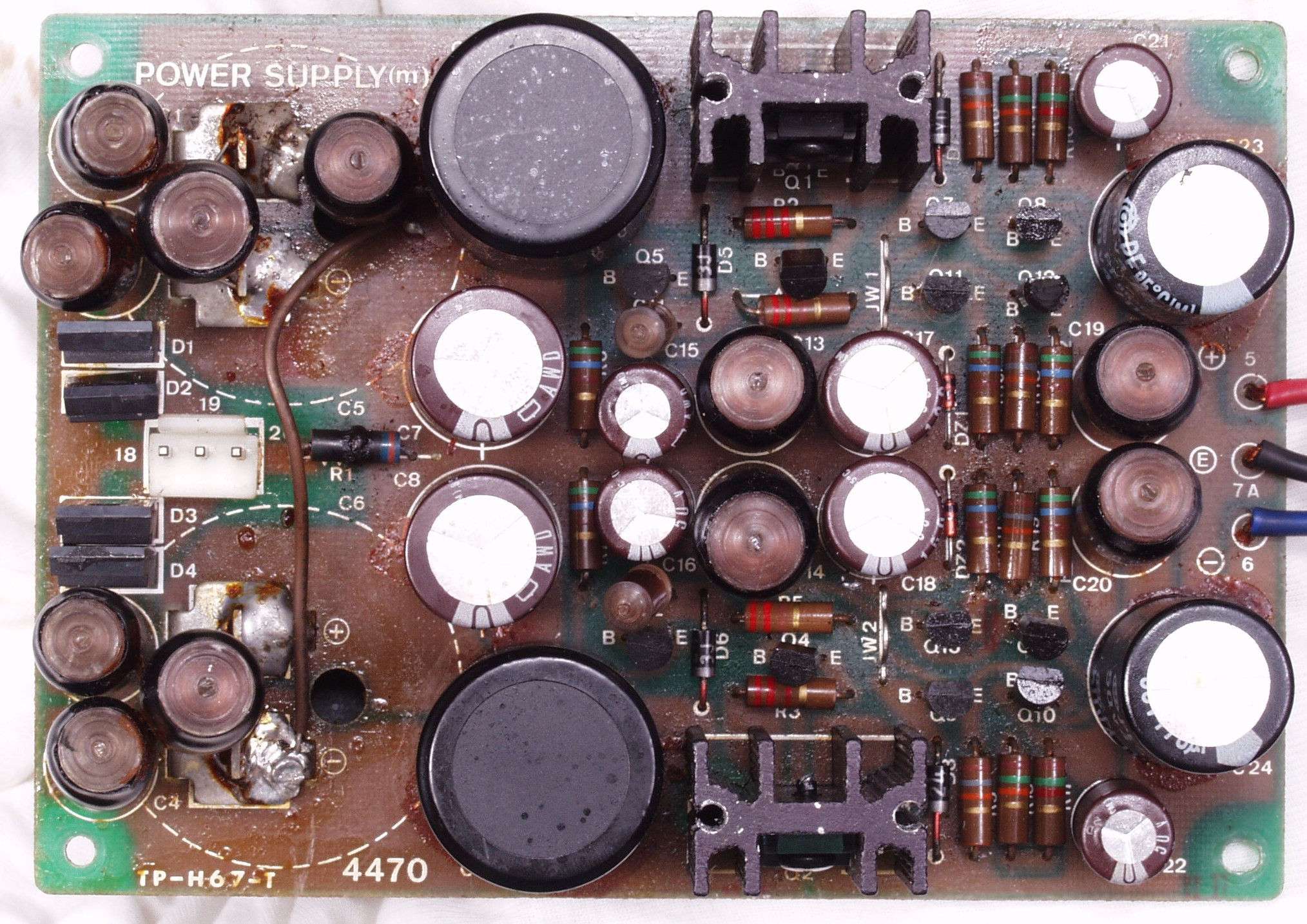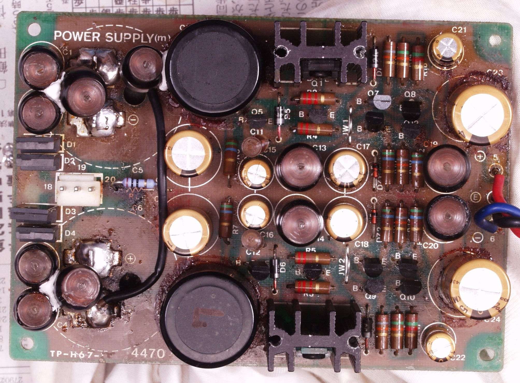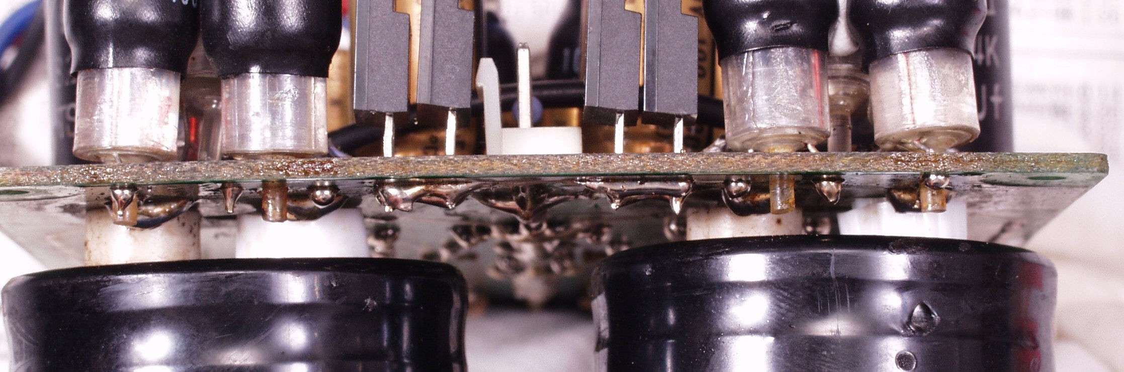 | A32. 点検中 L側EQ−AMP基板、膨らんだフイルム・コンデンサー | |||||||||||||||||||