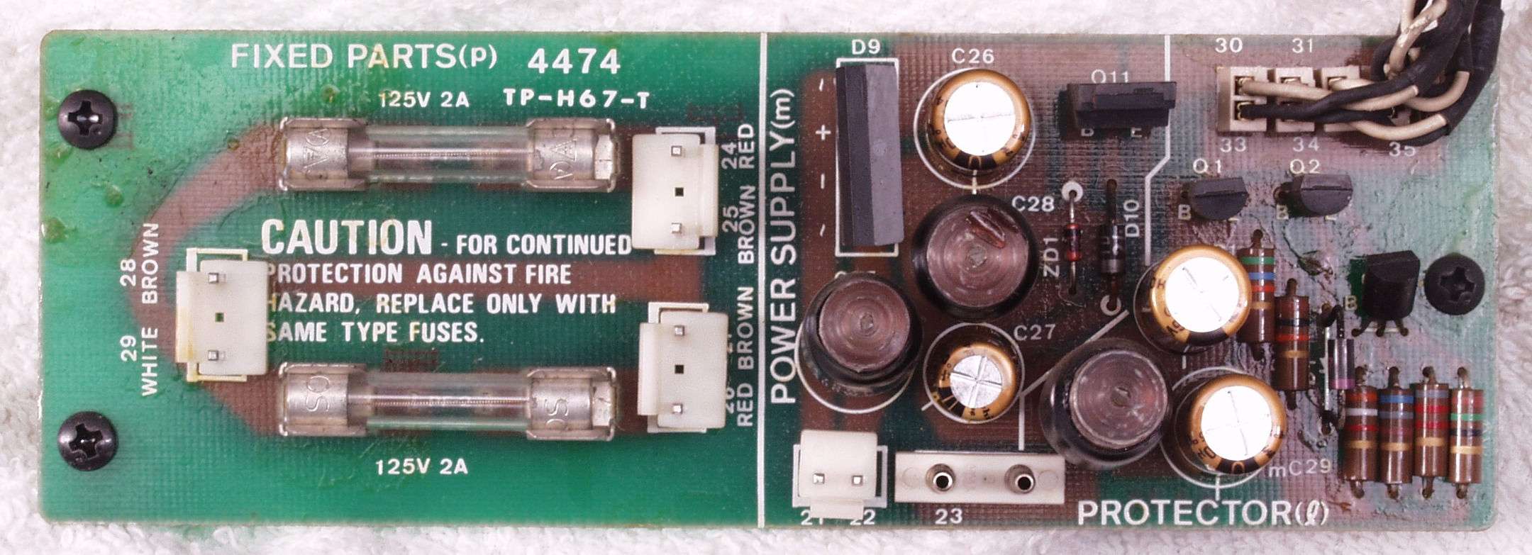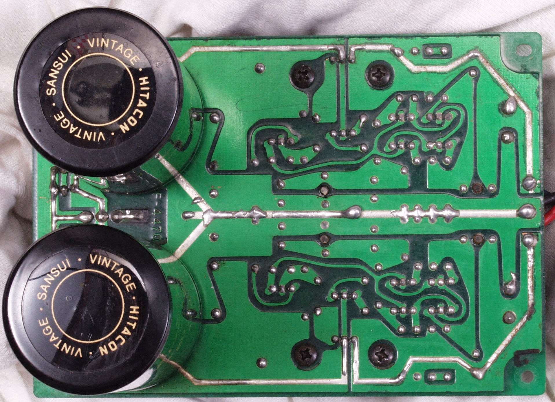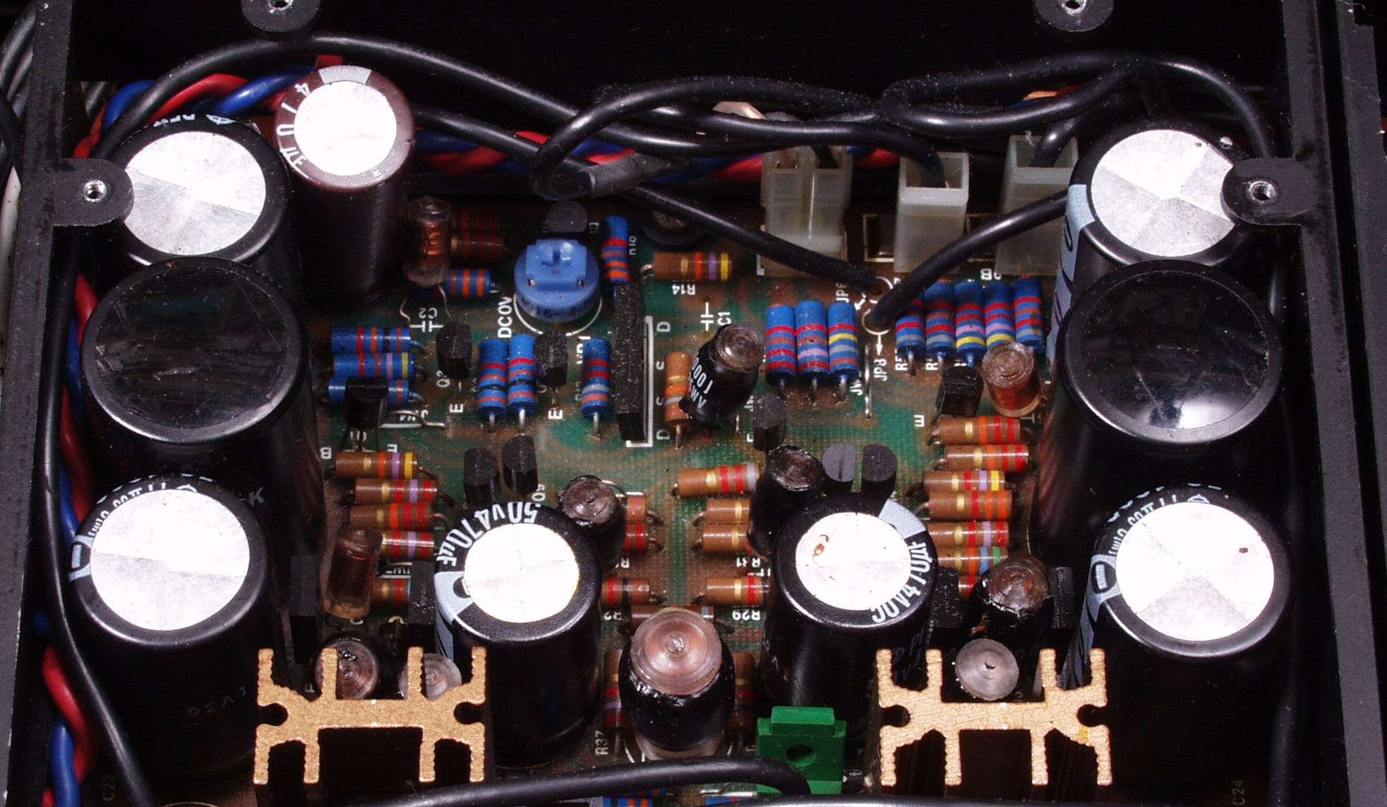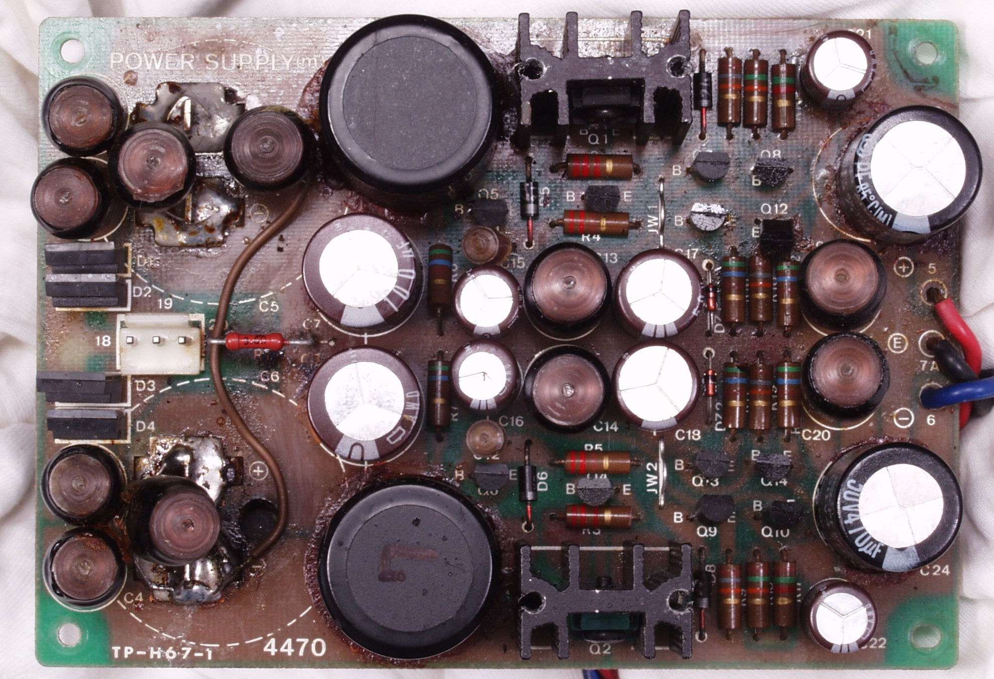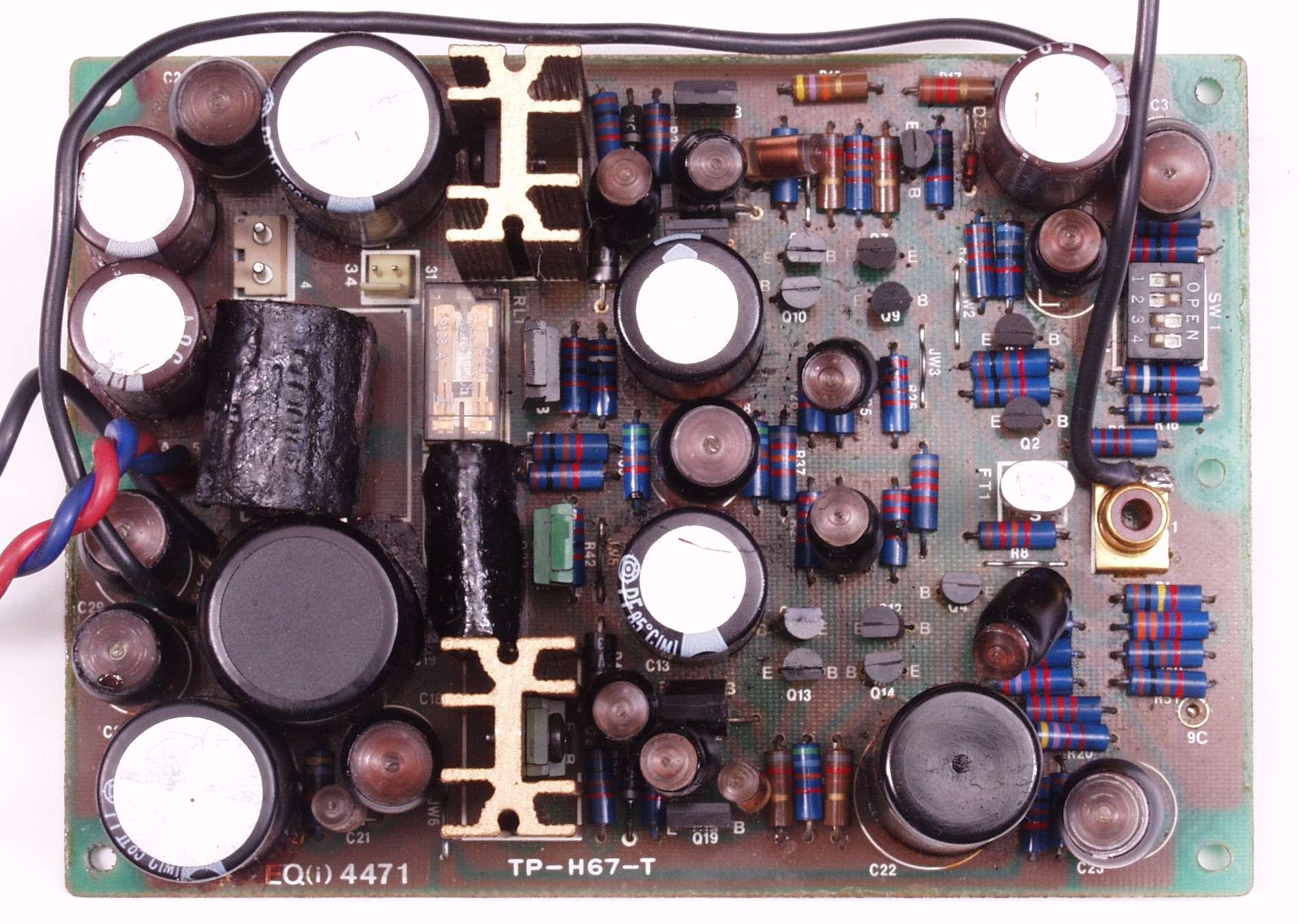 | A32. 点検中 L側EQ−AMP基板、膨らんだフイルム・コンデンサー | |||||||||||||||||||