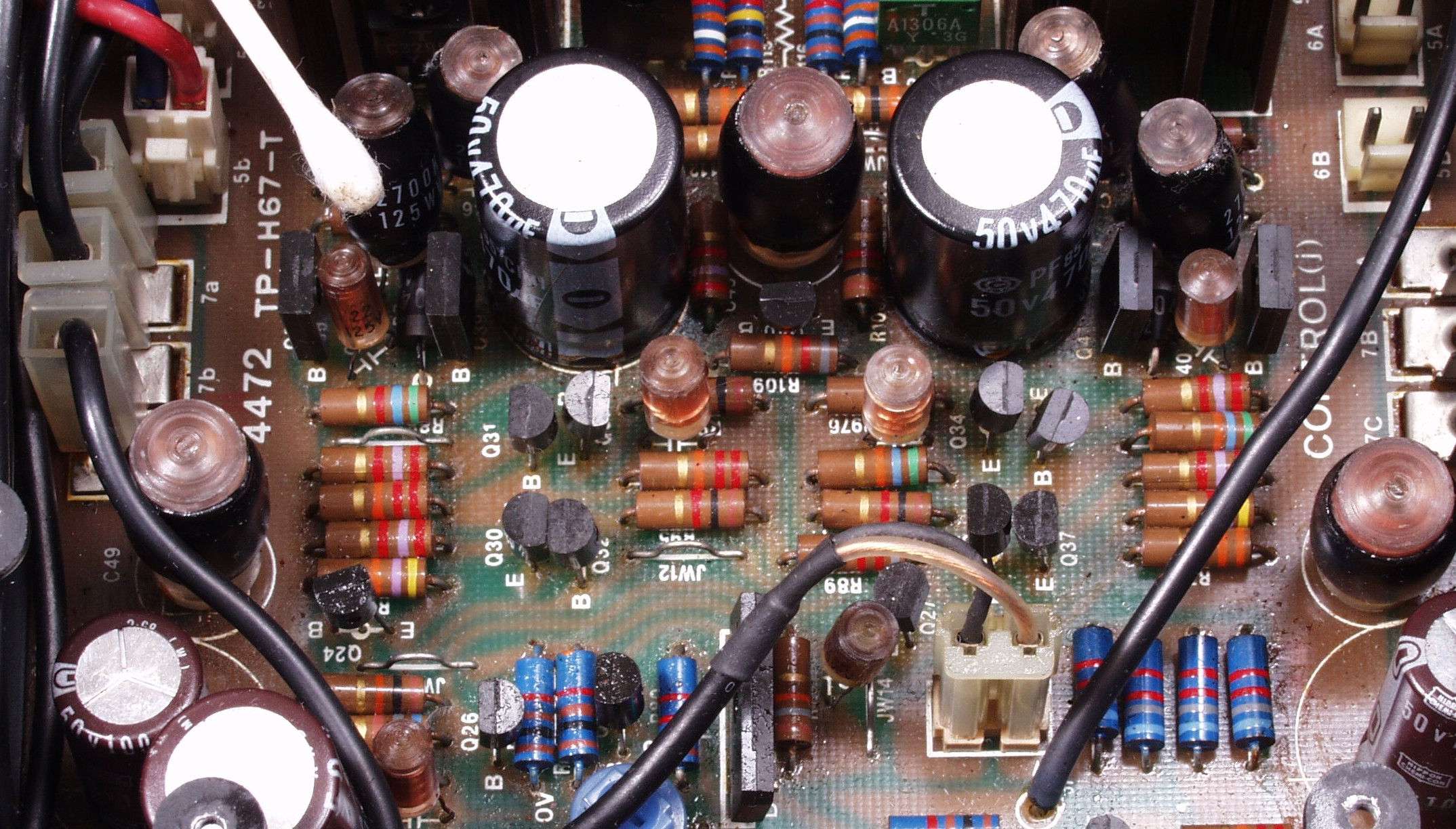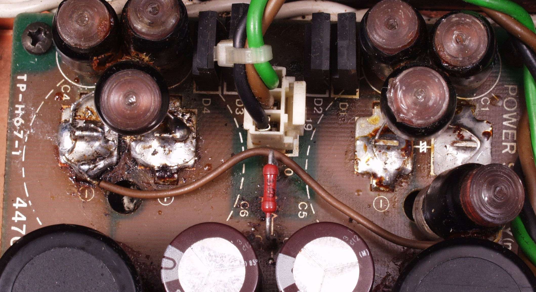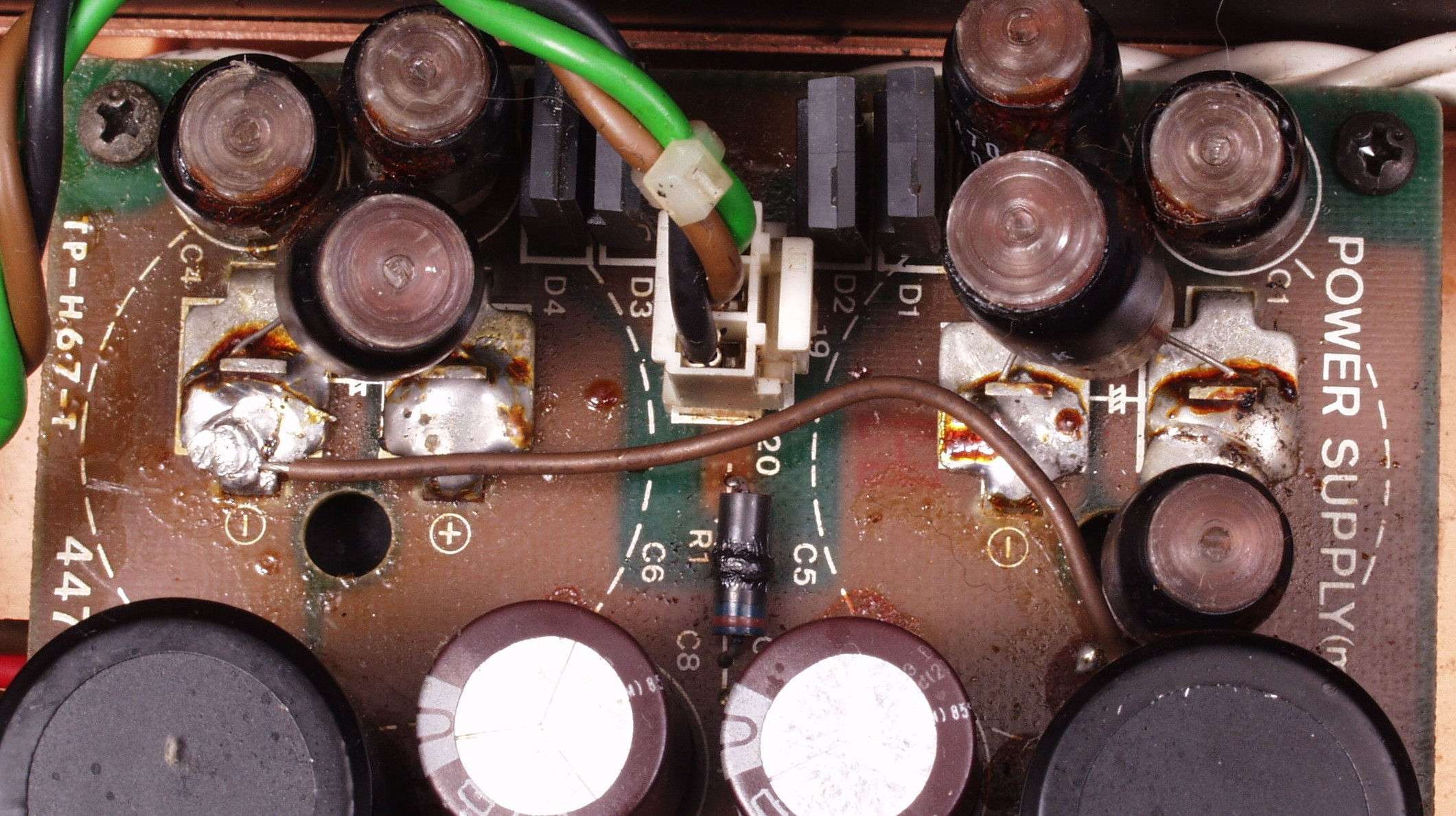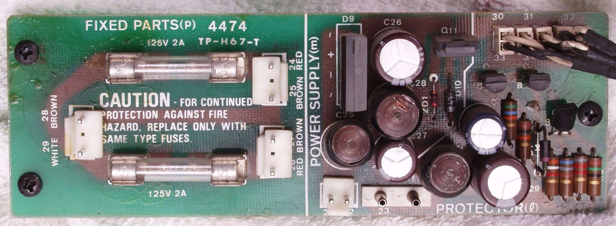 | A32. 点検中 L側EQ−AMP基板、膨らんだフイルム・コンデンサー | |||||||||||||||||||