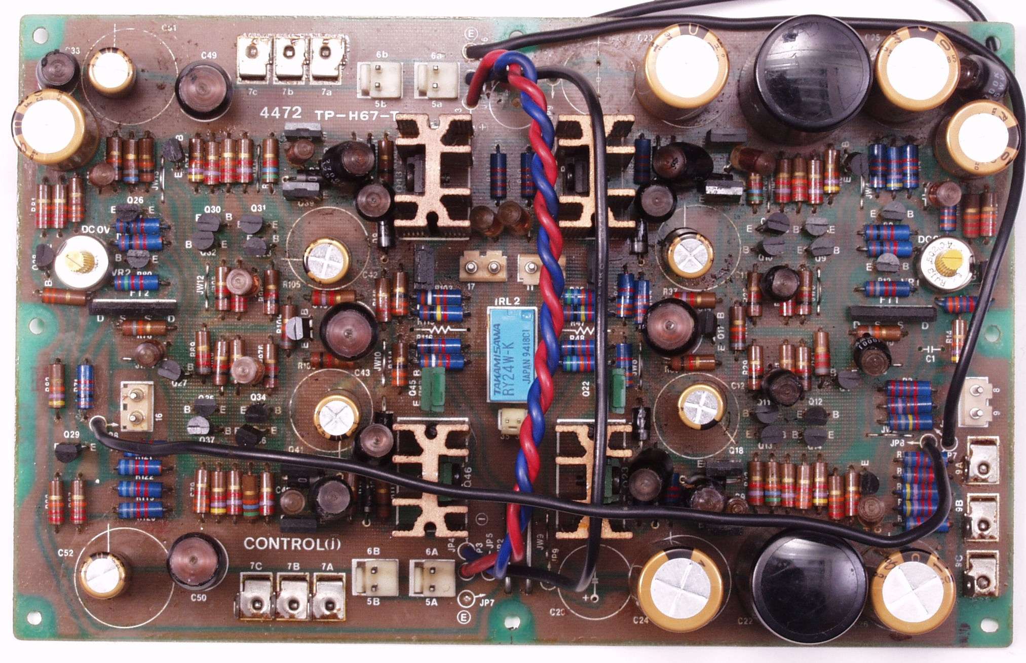 | C42. 修理後 L側AMP基板 初段FET(電界効果トランジスター)2個、半固定VR2個、電解コンデンサー13個、リレー1個交換 | |||||||||||||||||||