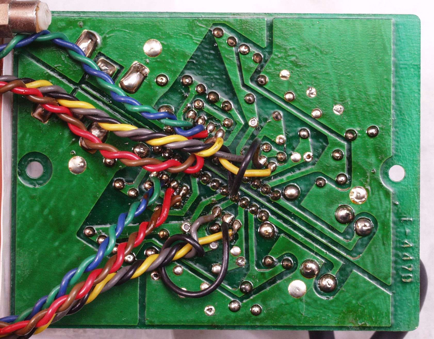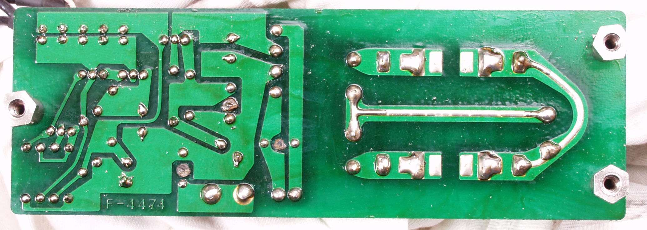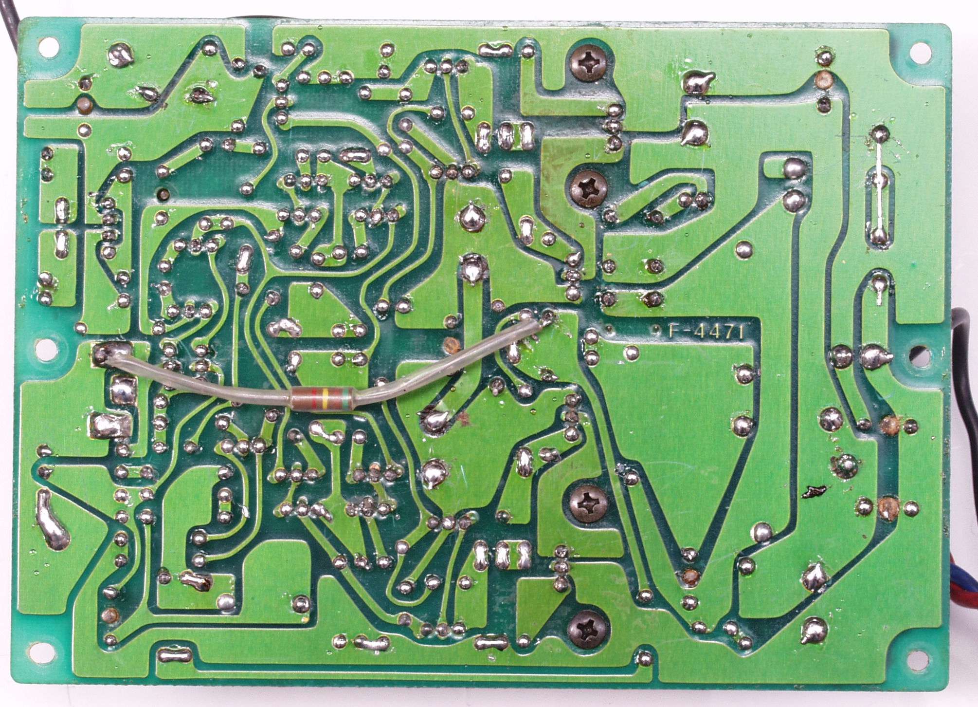 | CA5. 修理(半田補正)中 入力端子裏の基板、比較の為、右下のみ未補正 | |||||||||||||||||||