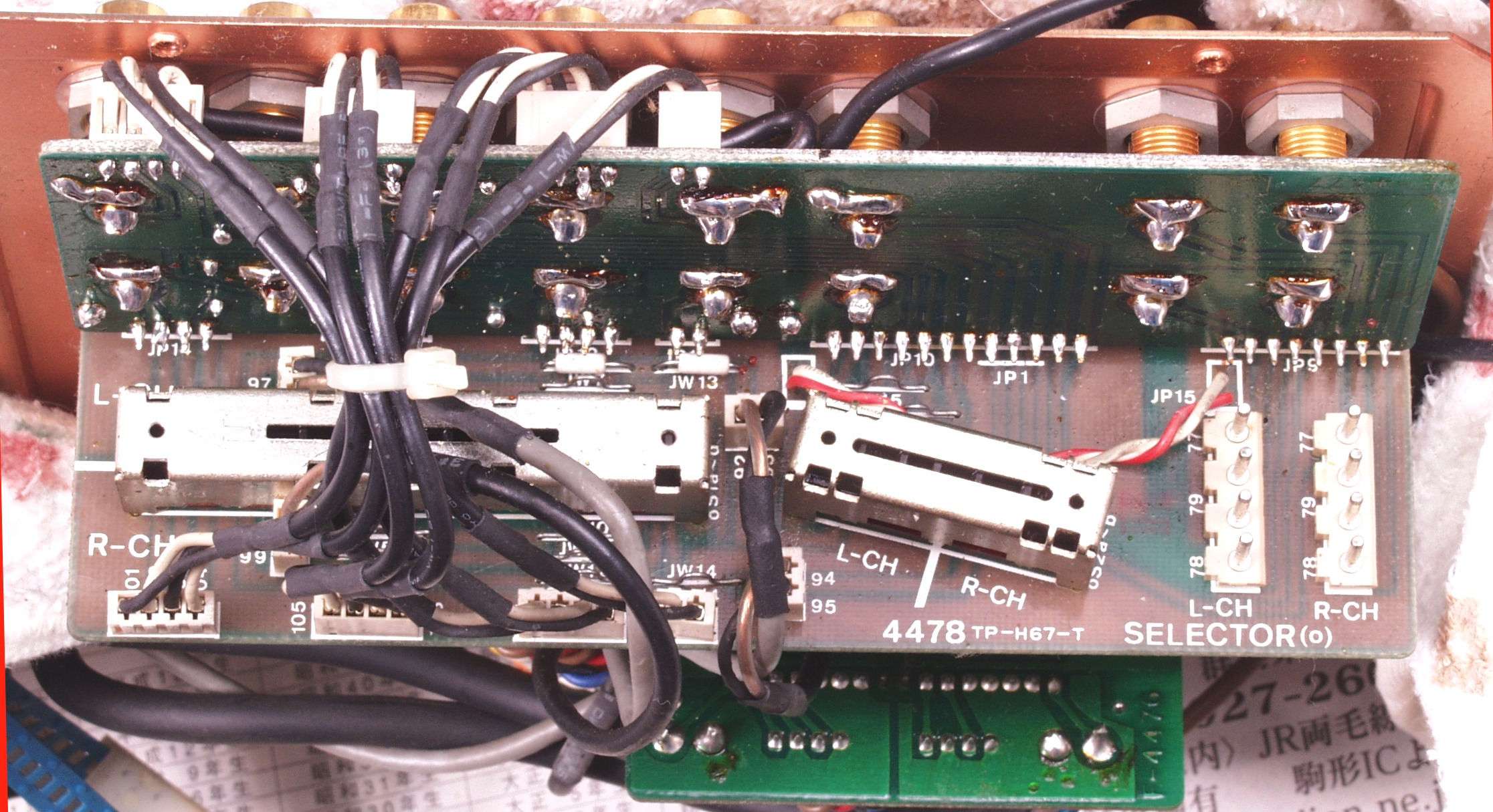 | CA6. 修理(半田補正)中 入力端子裏のSW基板裏。 半田を全部やり直す。 | |||||||||||||||||||