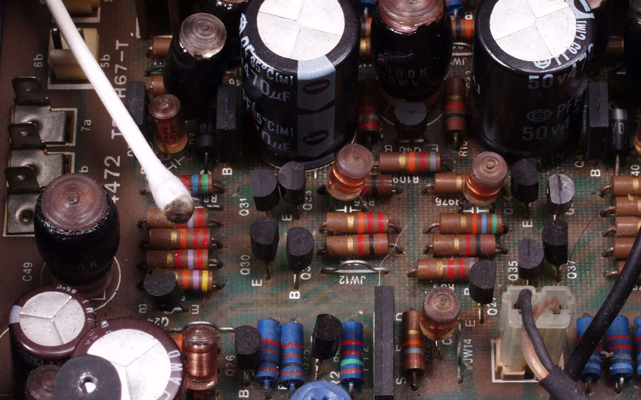 | A31. 点検中 L側EQ−AMP基板、シールドの蓋が接点復活材?で濡れている | |||||||||||||||||||