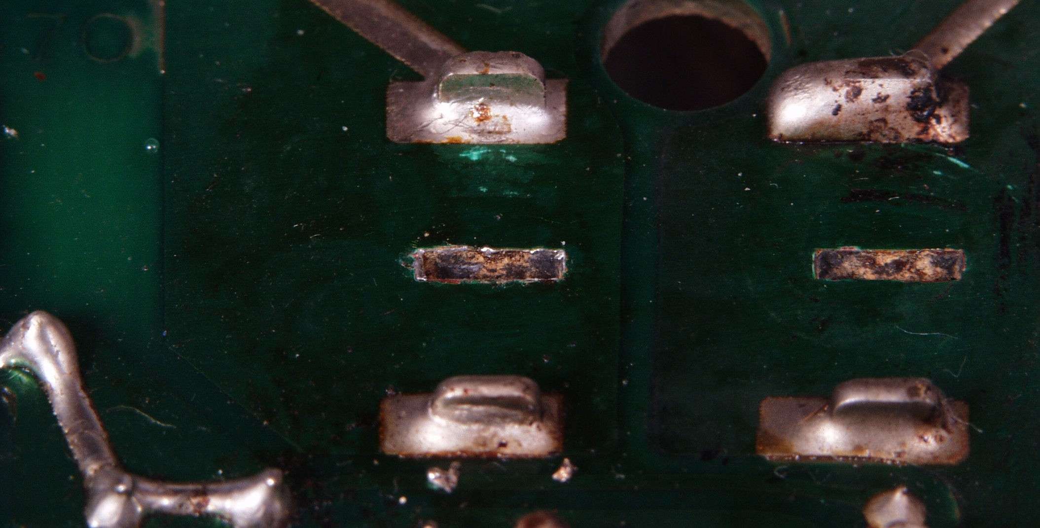 | C73. 修理(半田補正)後 MM/MC切り替えSW基板裏。 半田を全部やり直す。 | |||||||||||||||||||