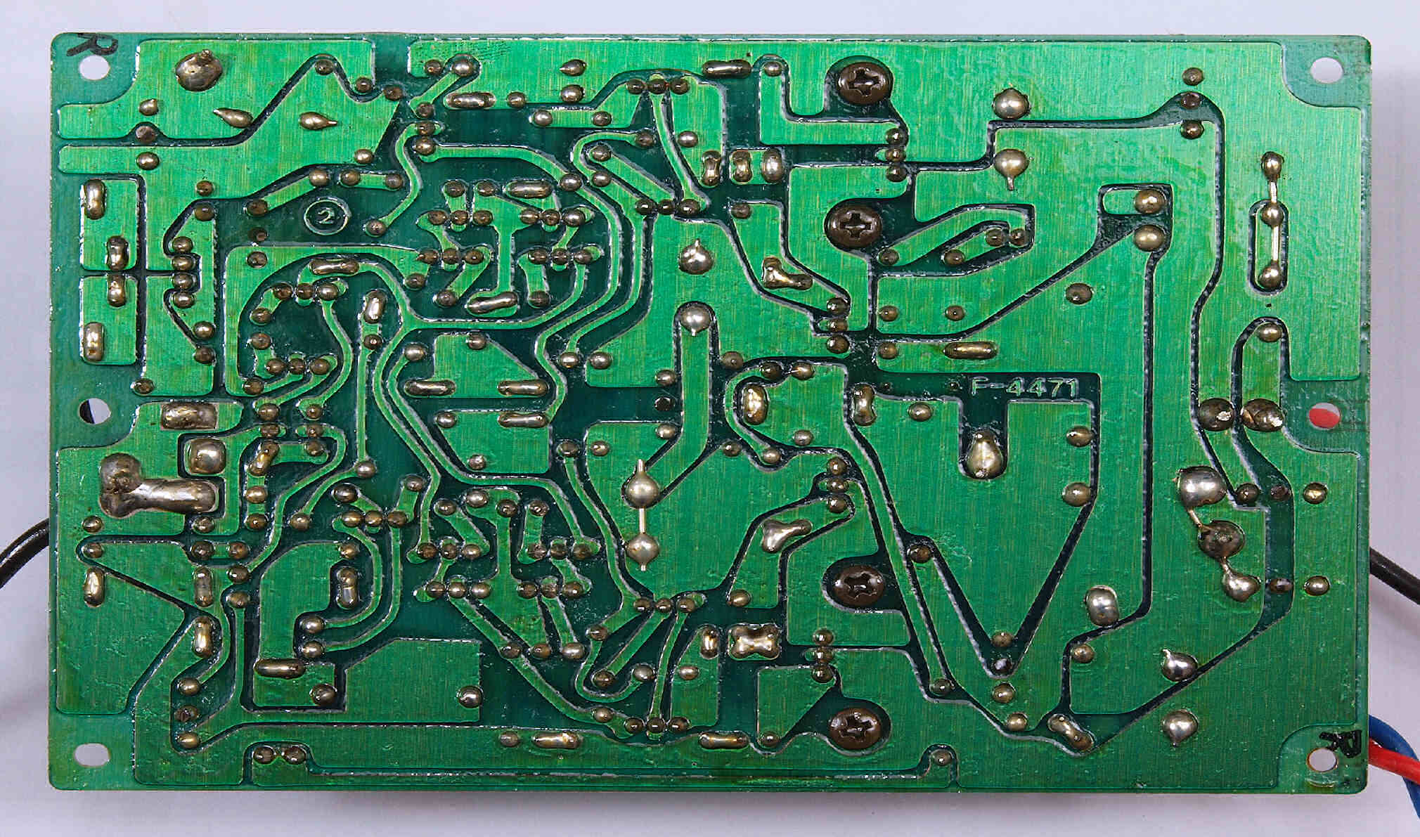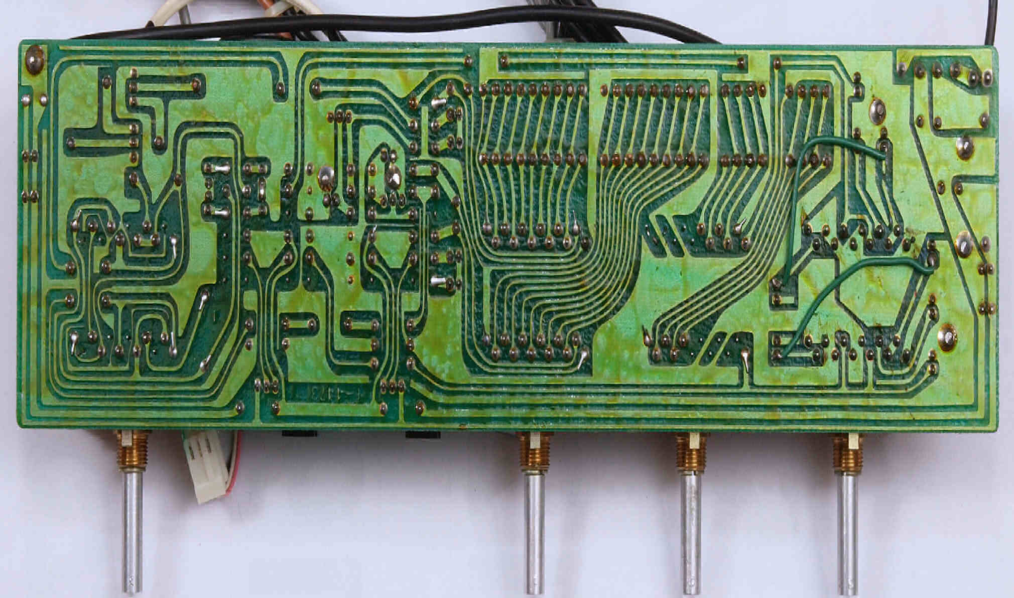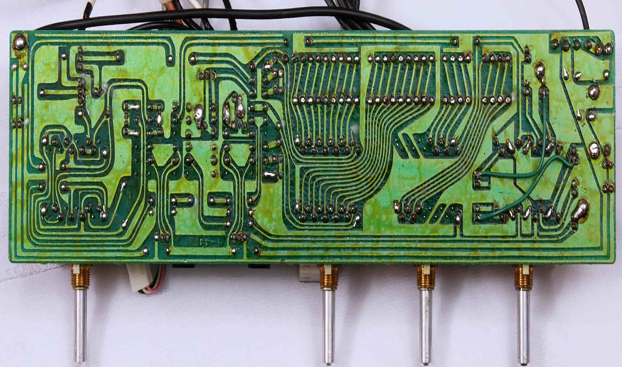 | CC33. 修理(半田補正)後 メインVolume表示ランプ基板裏。 半田を全部やり直す。 | ||||||||||||||||||