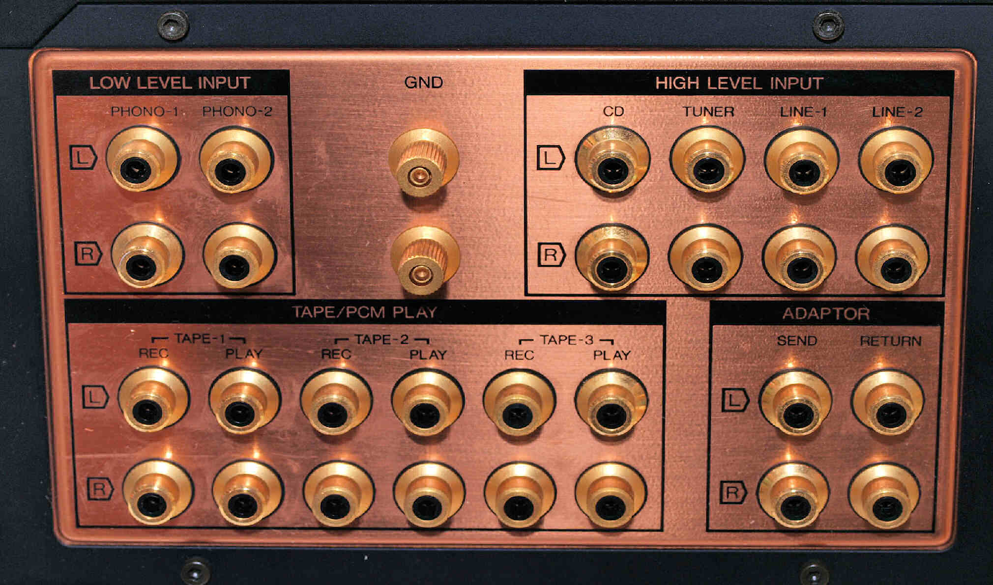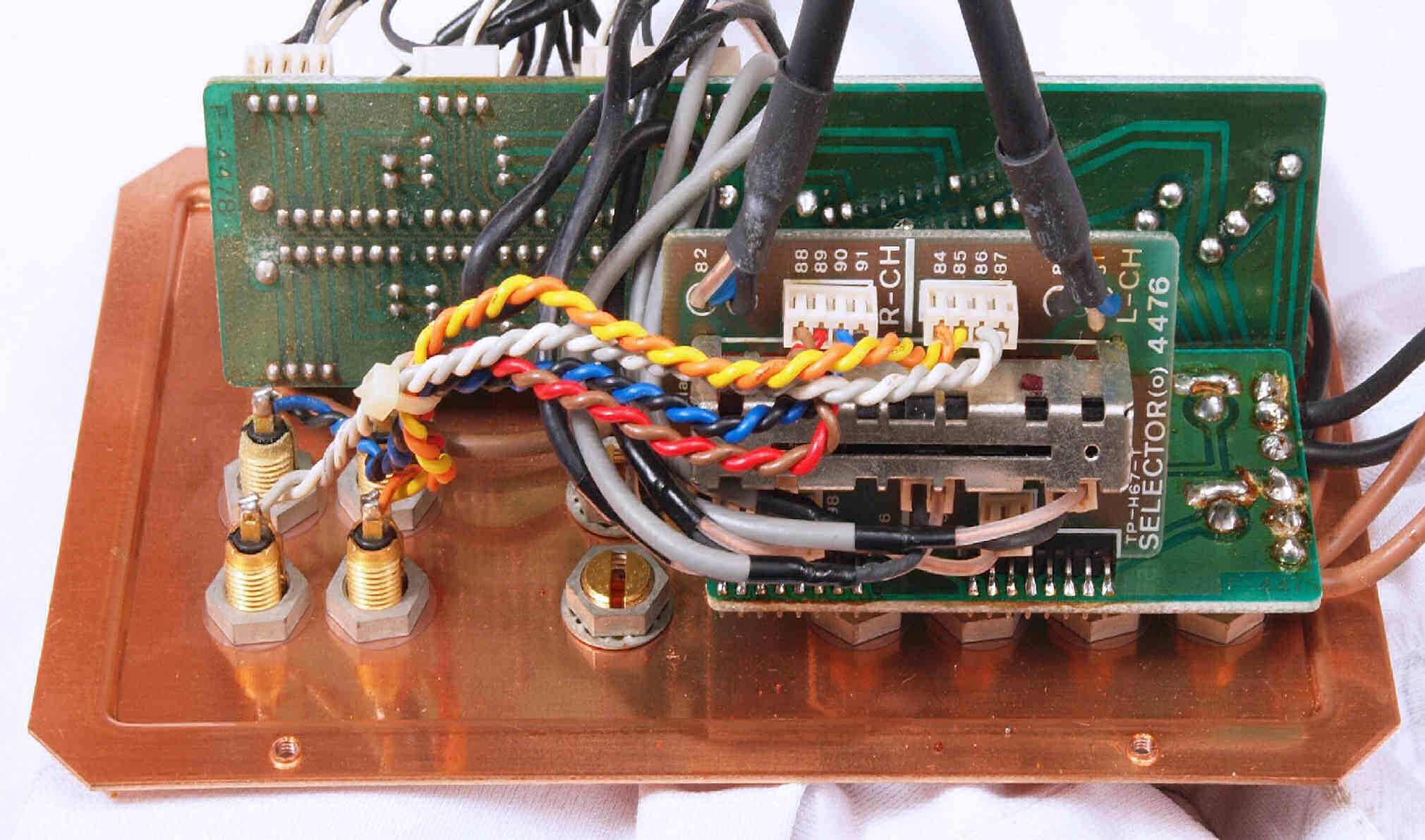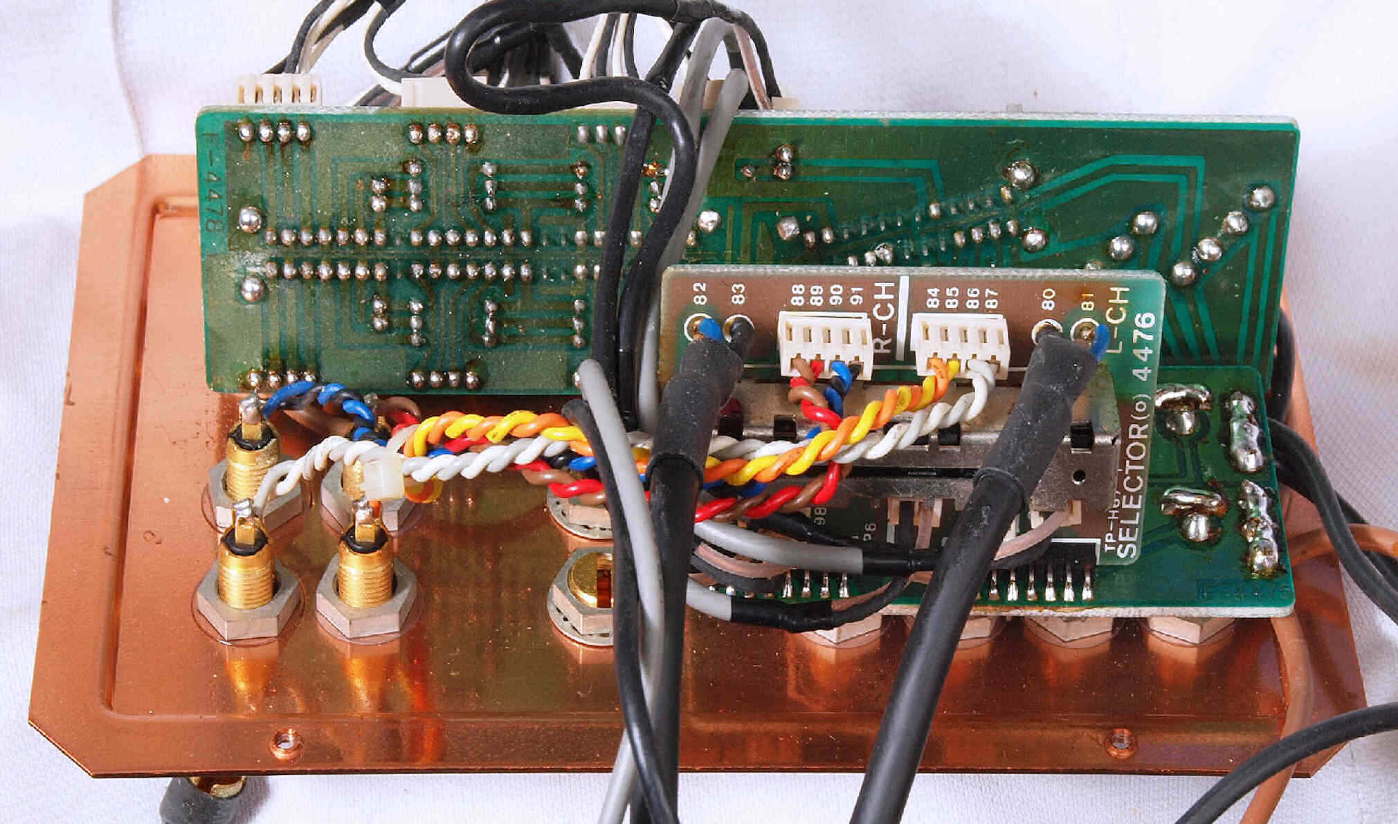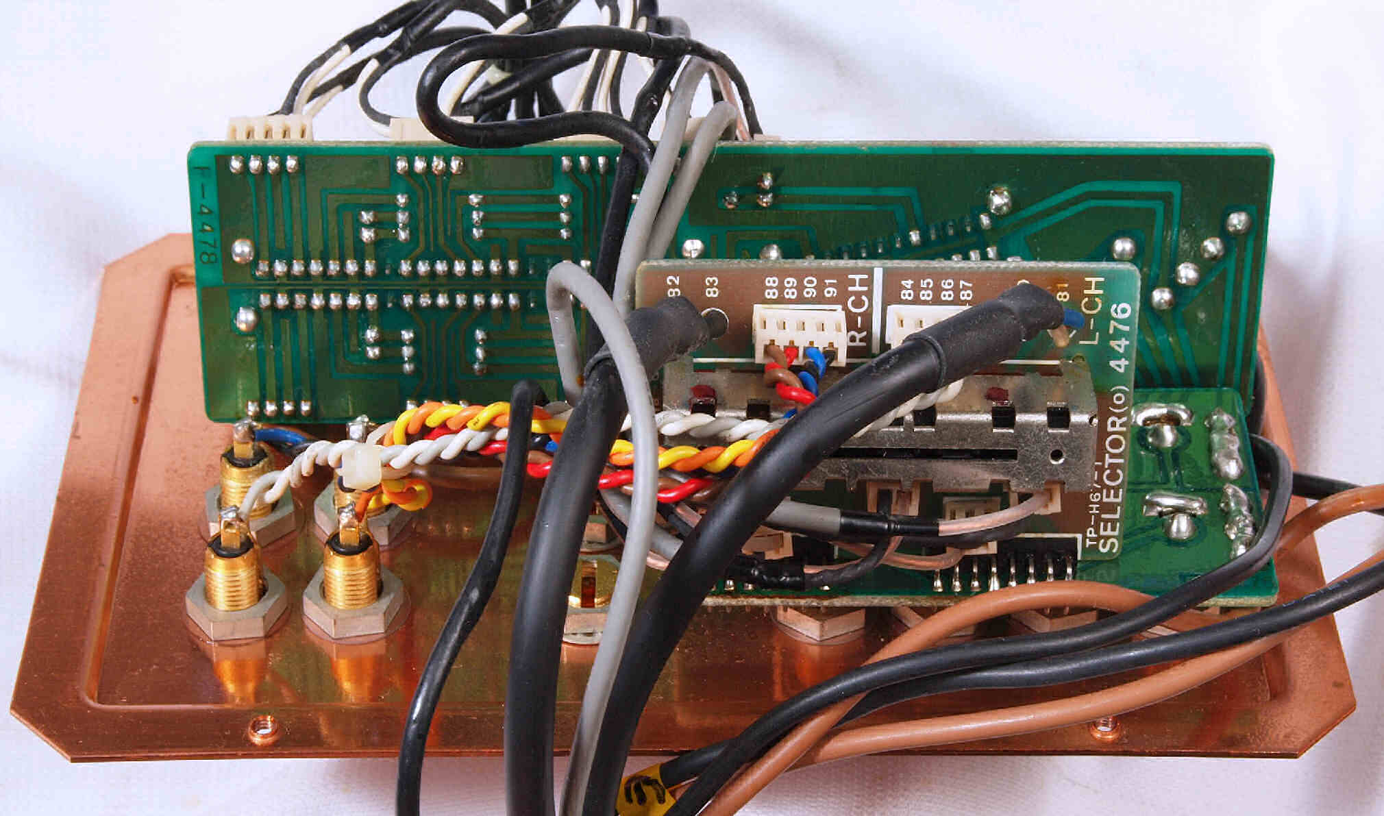 | A54. 点検中 プリRCA入出力端子郡、 Phono_RCA端子(2組4個)は交換可能です。 今回は見送り。 | ||||||||||||||||||