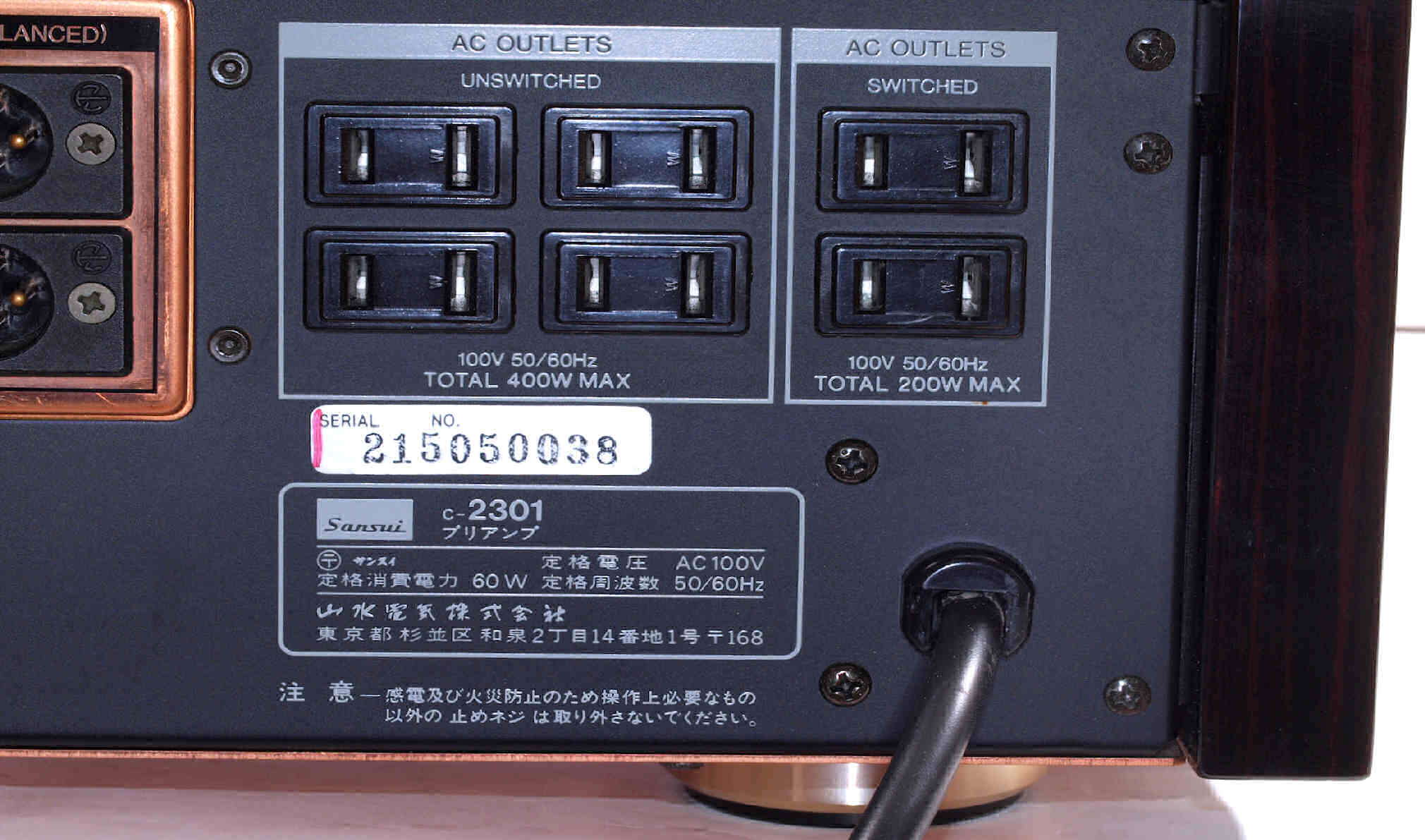 | S. Sansui C−2301 の仕様(マニアル・カタログより) | ||||||||||||||||||