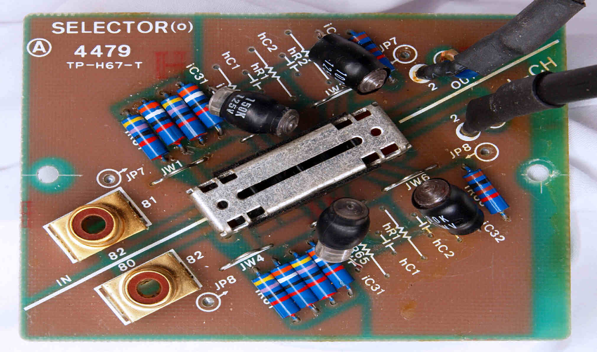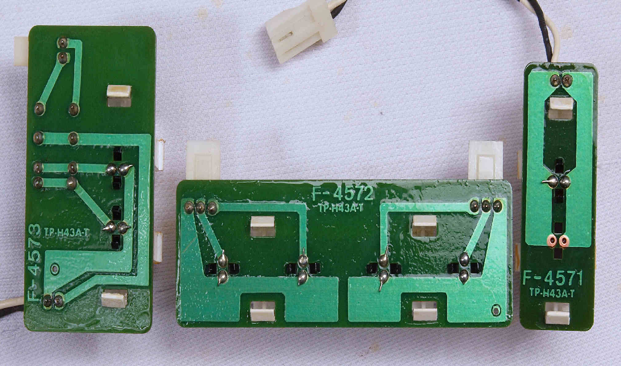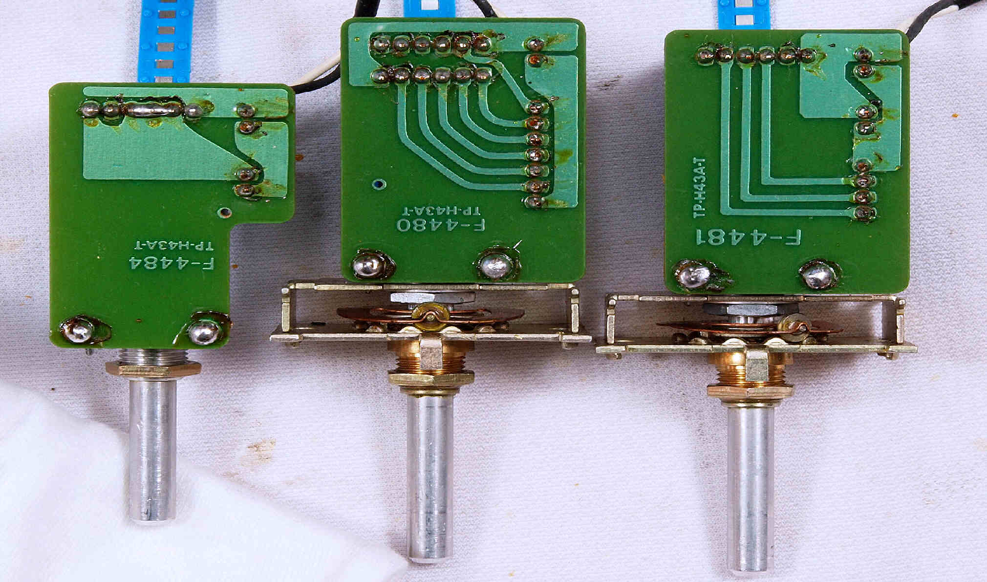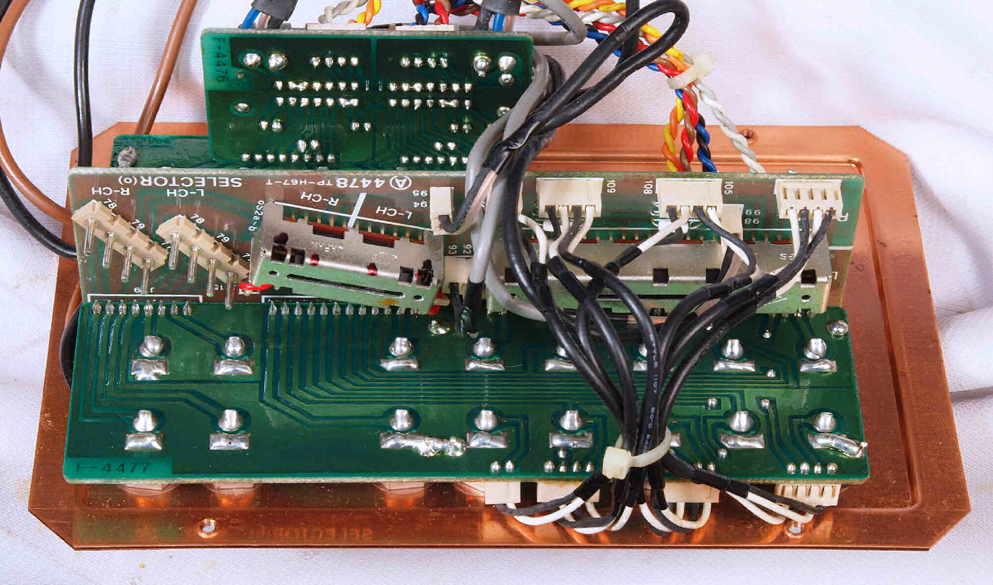 | CC41. 修理前 SW基板、 左=REC、 中=入力、 右=テープ。 | ||||||||||||||||||