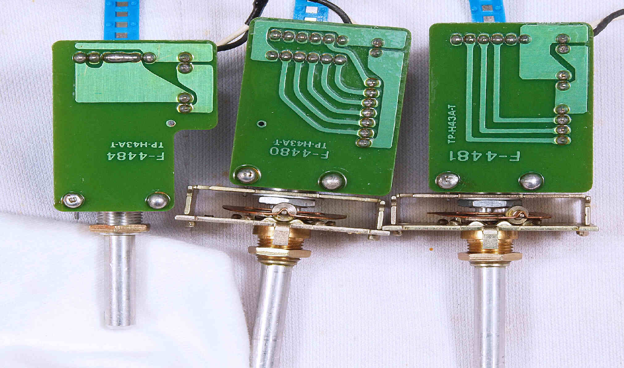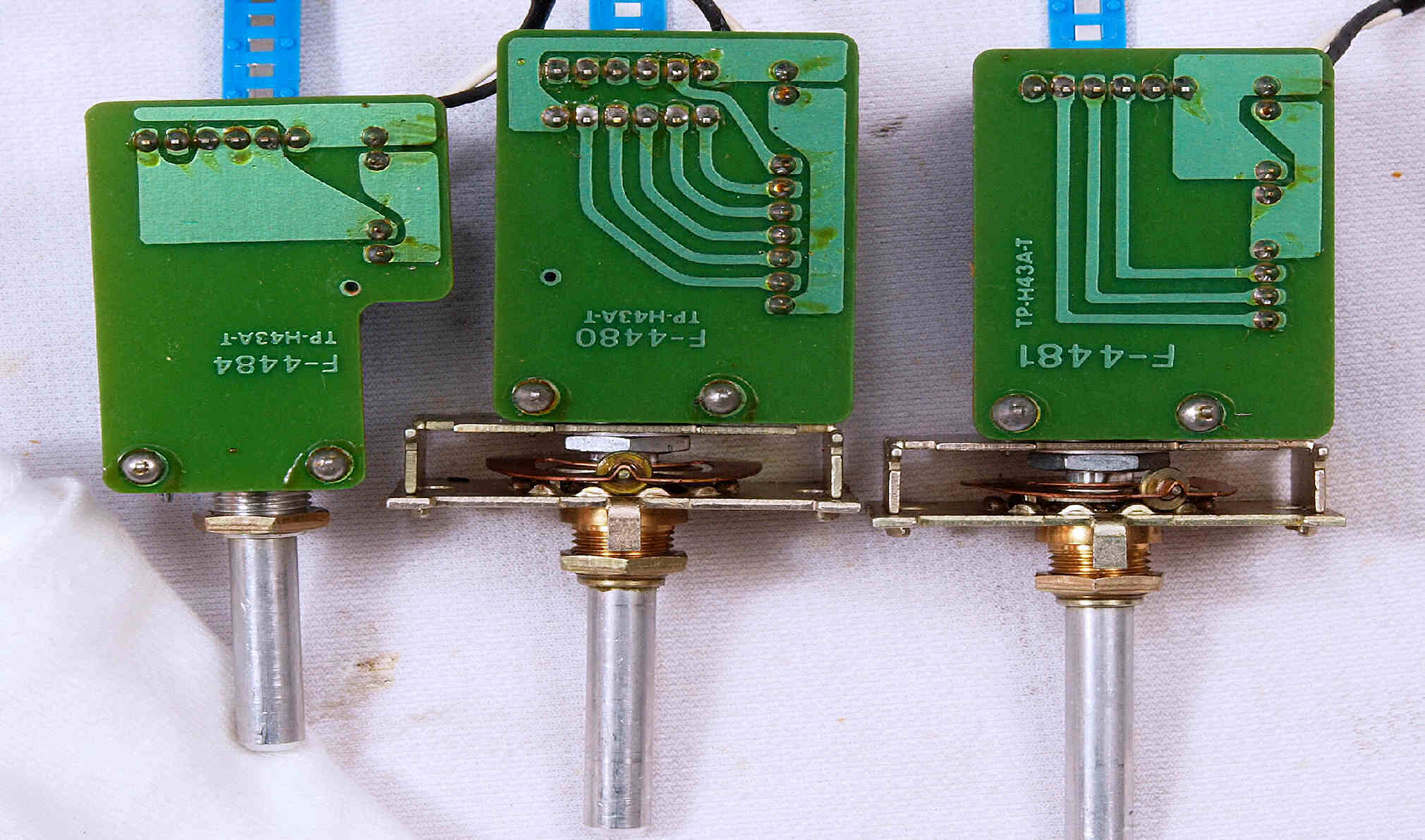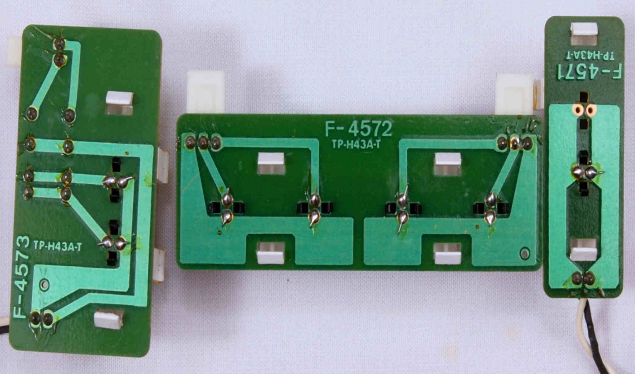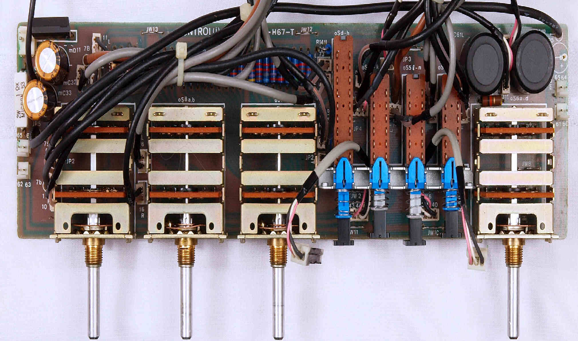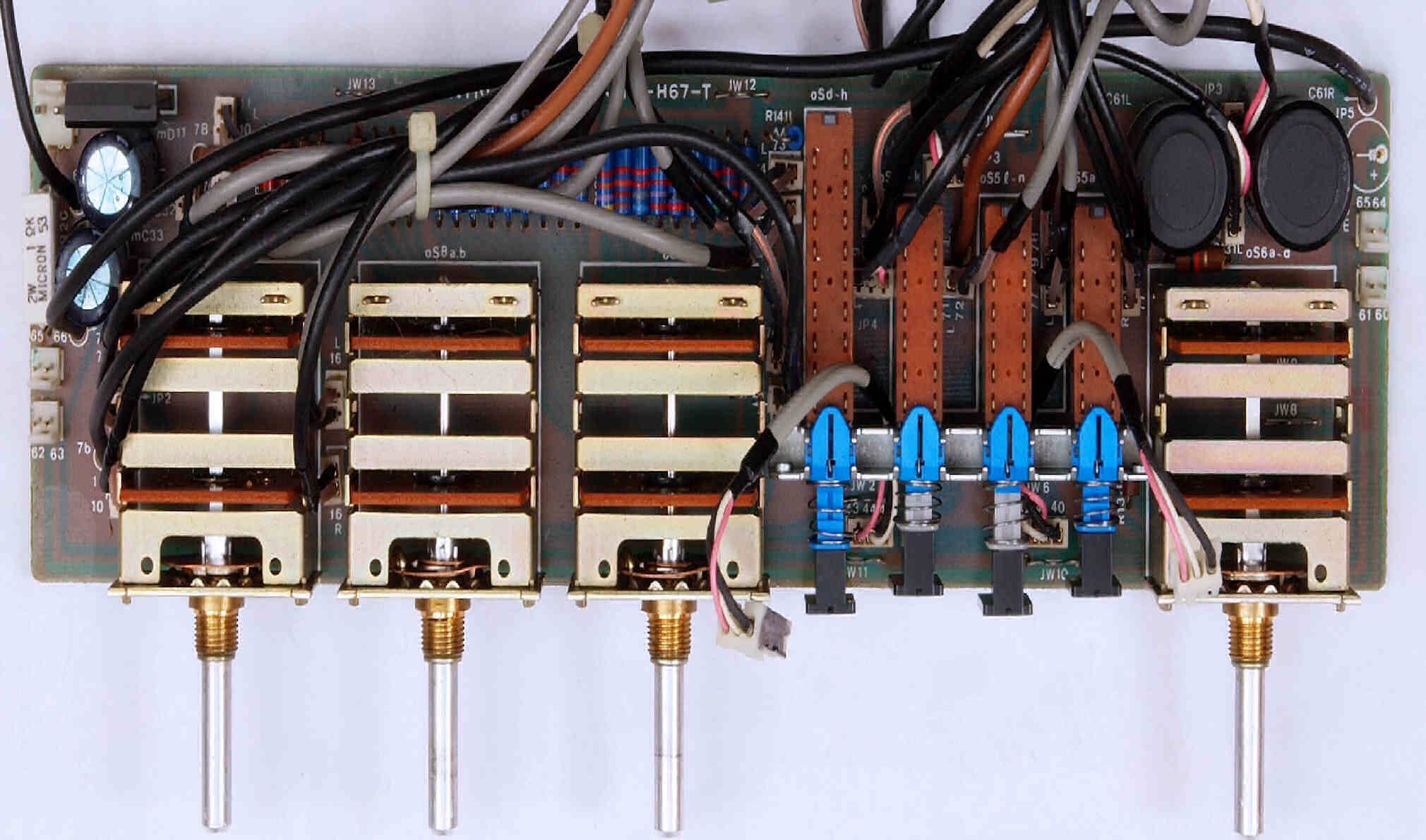 | CC41. 修理前 SW基板、 左=REC、 中=入力、 右=テープ。 | ||||||||||||||||||