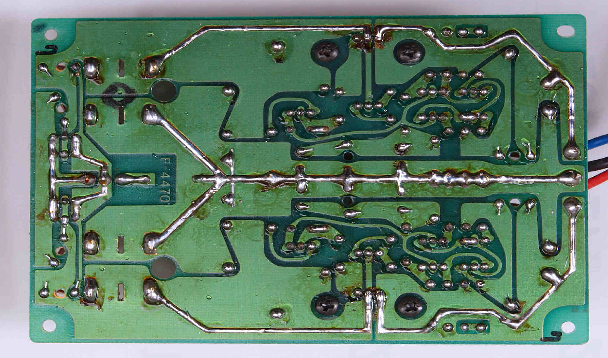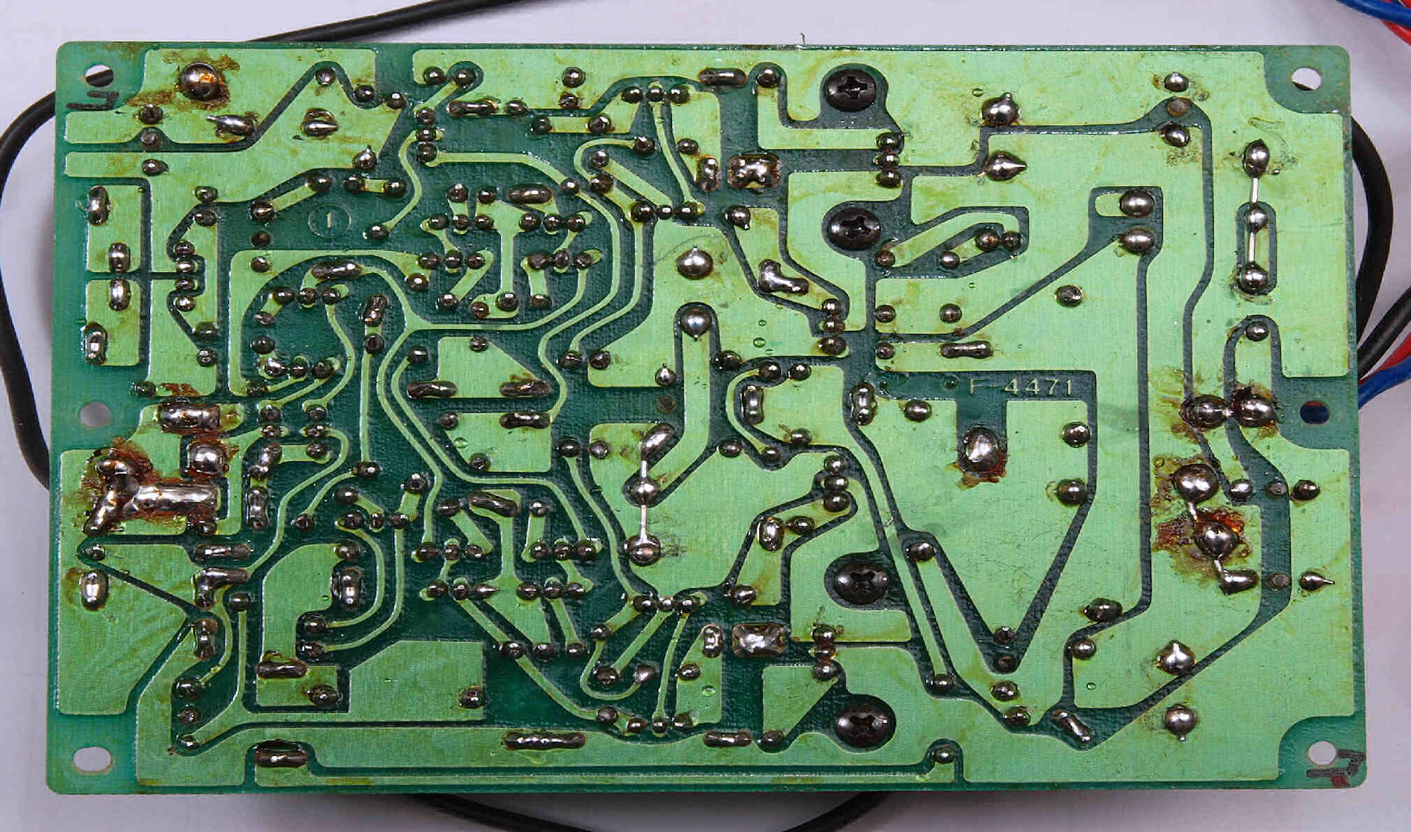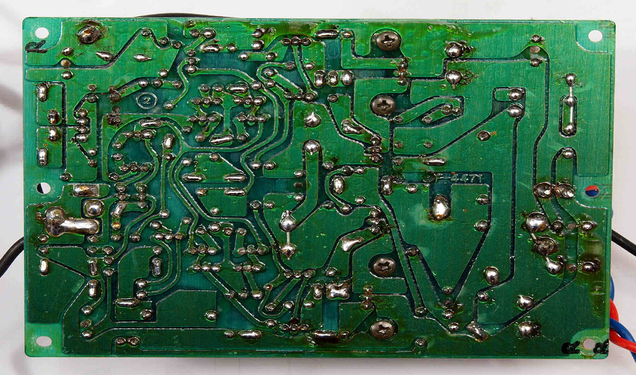 | CA3. 修理(半田補正)後 入力端子裏の基板。 半田を全部やり直す。 | ||||||||||||||||||
