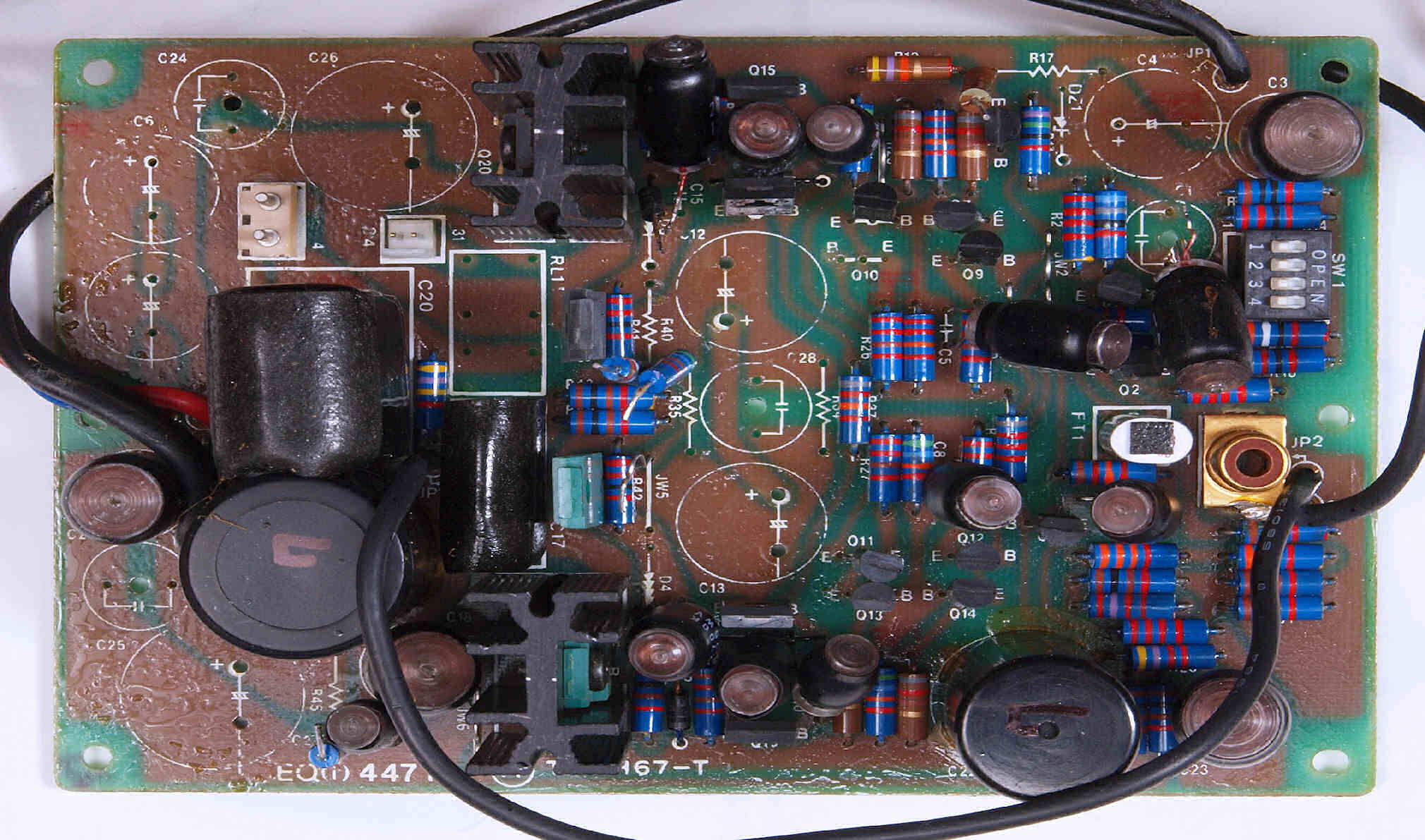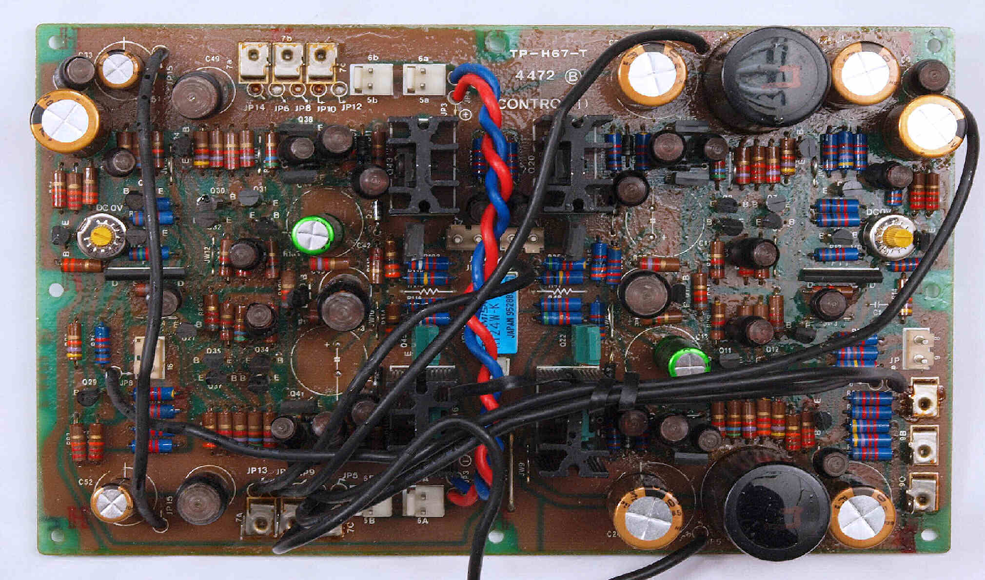 | C32. 修理後 R側AMP基板 初段FET(電界効果トランジスター)2個、半固定VR2個、電解コンデンサー12個、リレー1個交換 | ||||||||||||||||||