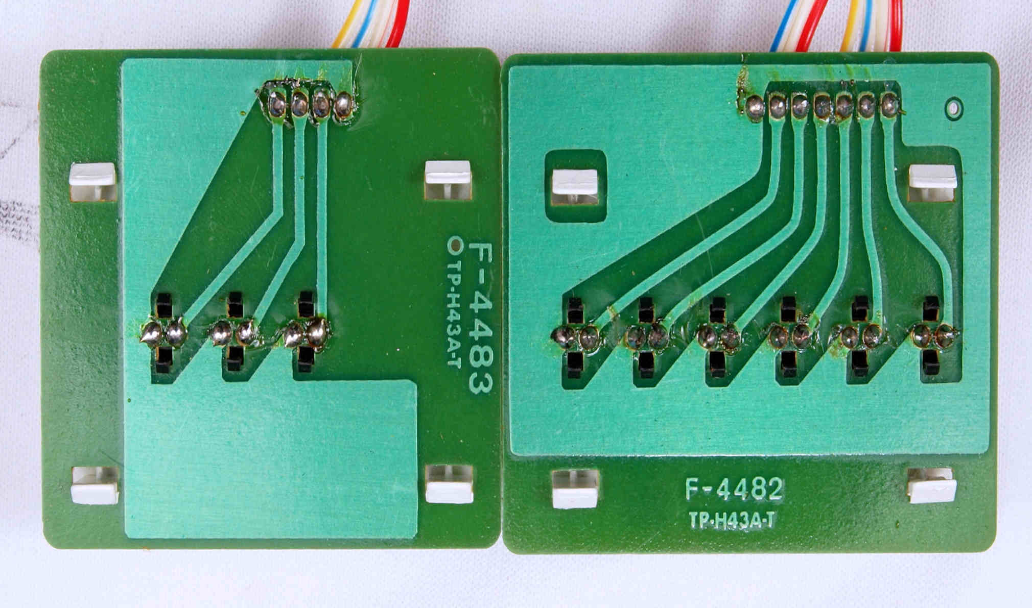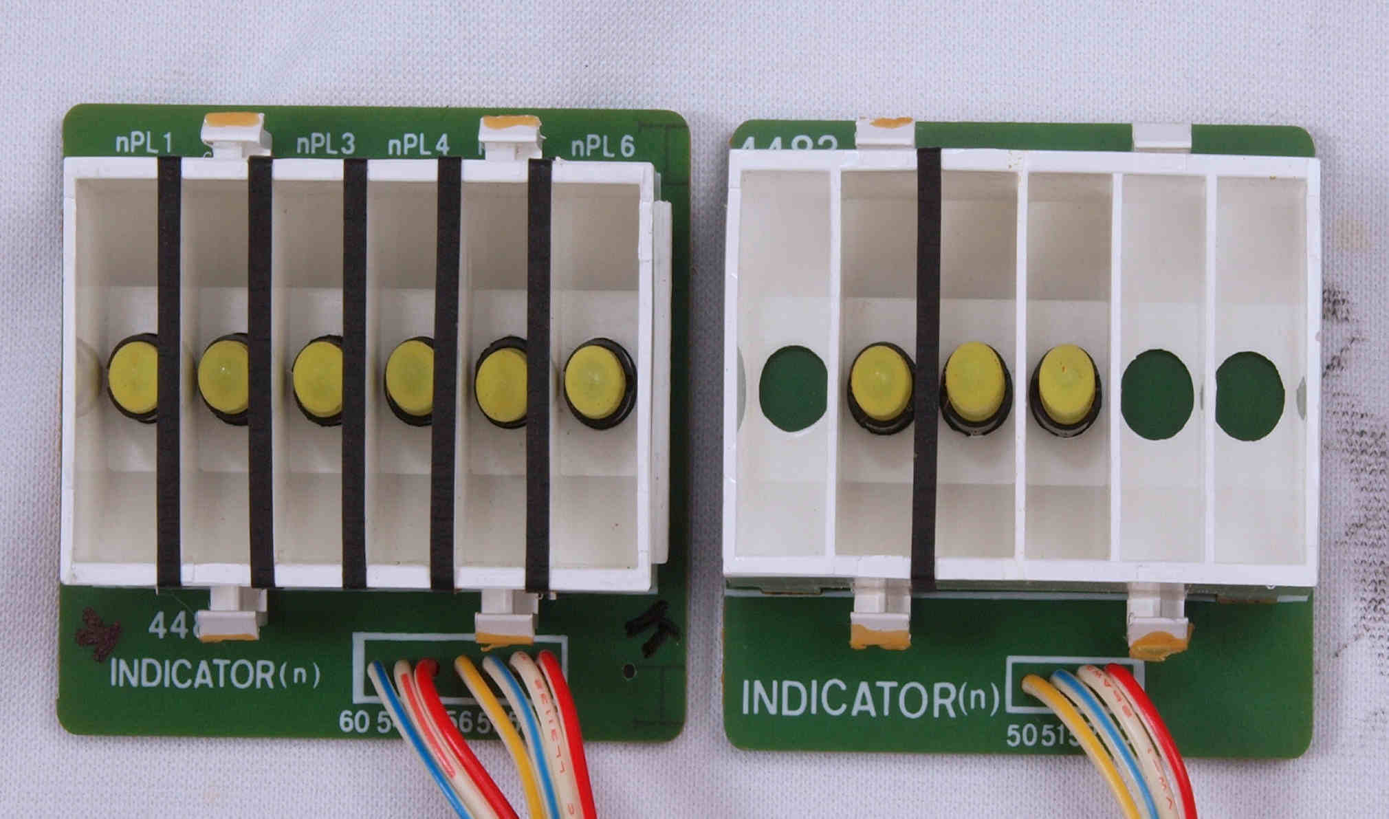 | CC11. 修理前 表示ランプ基板、 左=入力、 右=テープ。 | ||||||||||||||||||