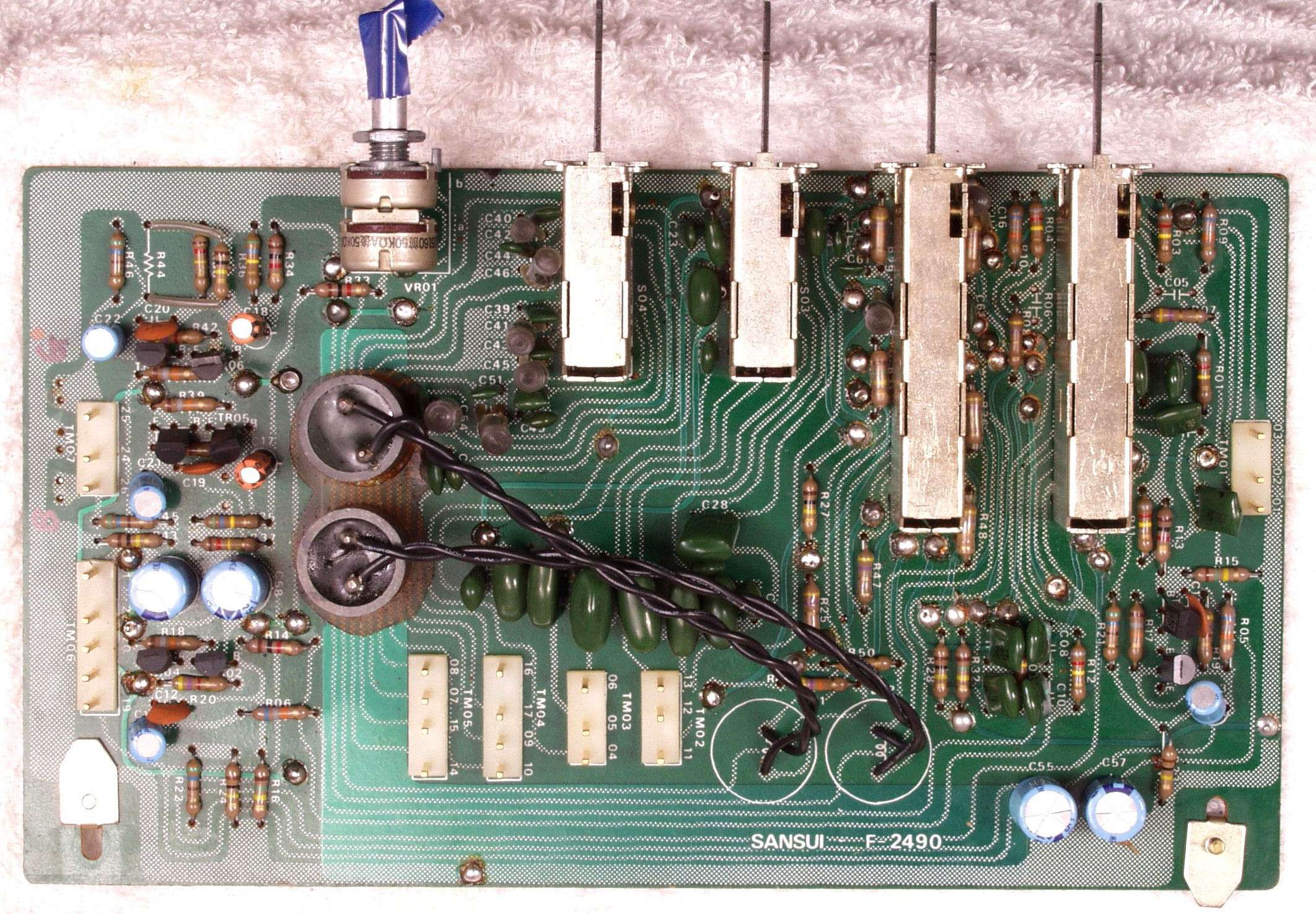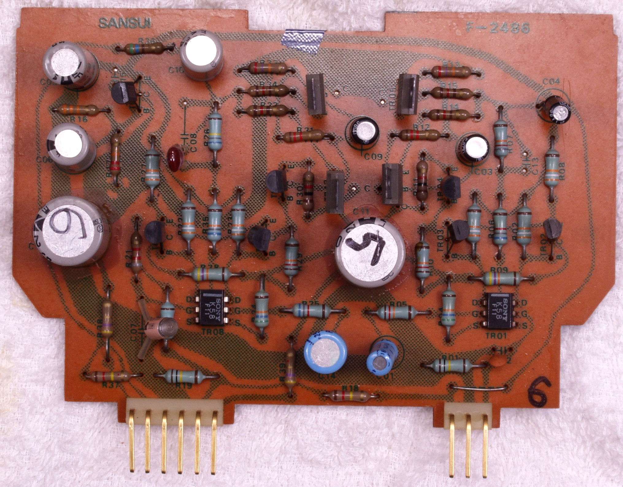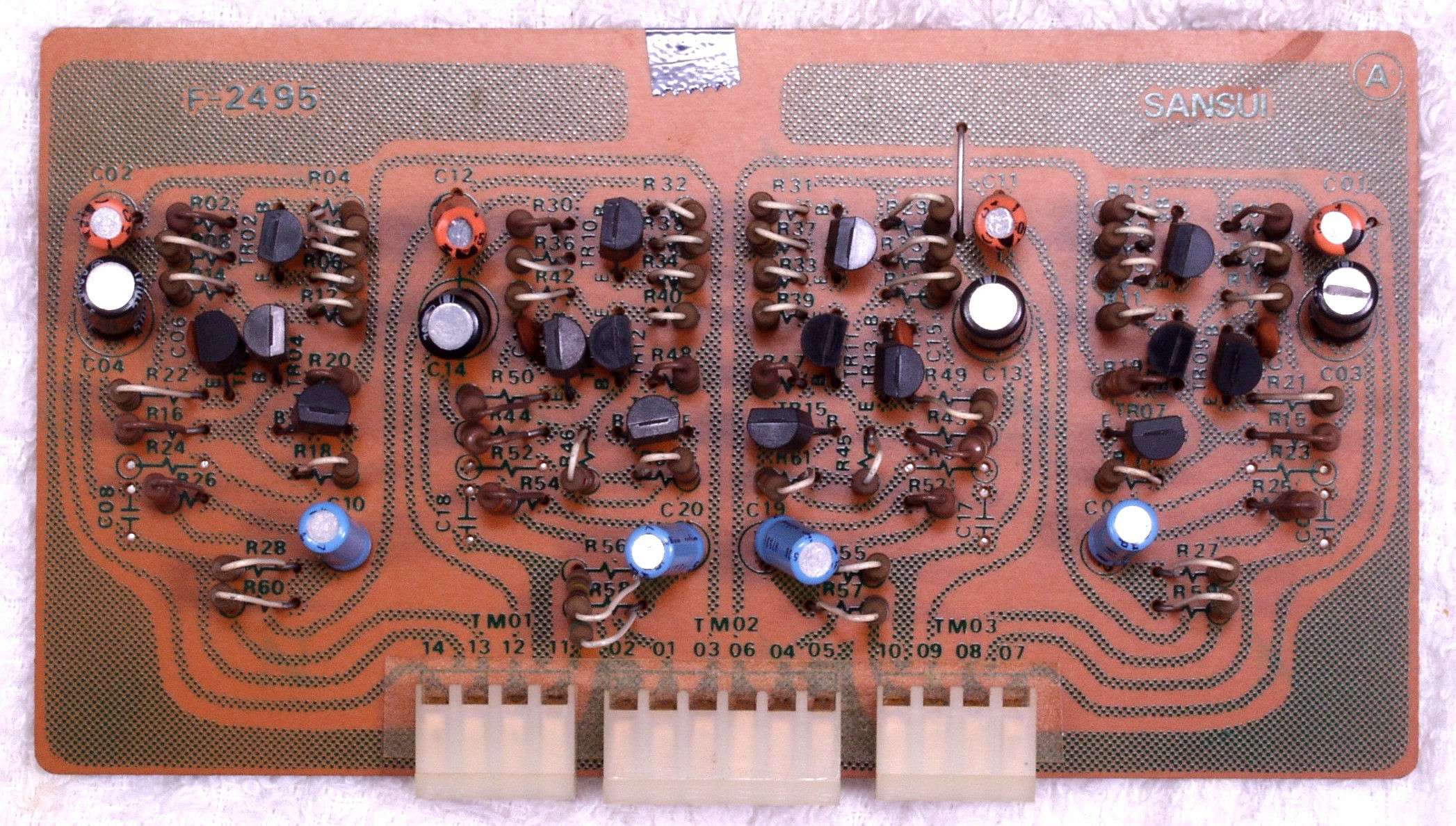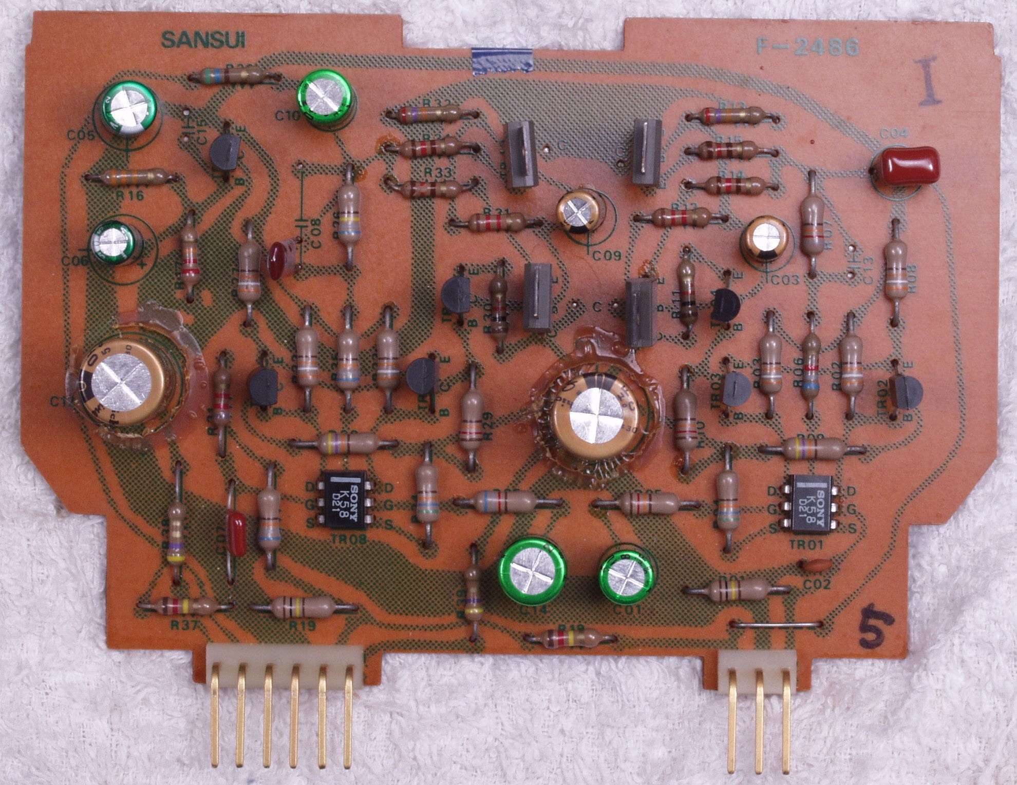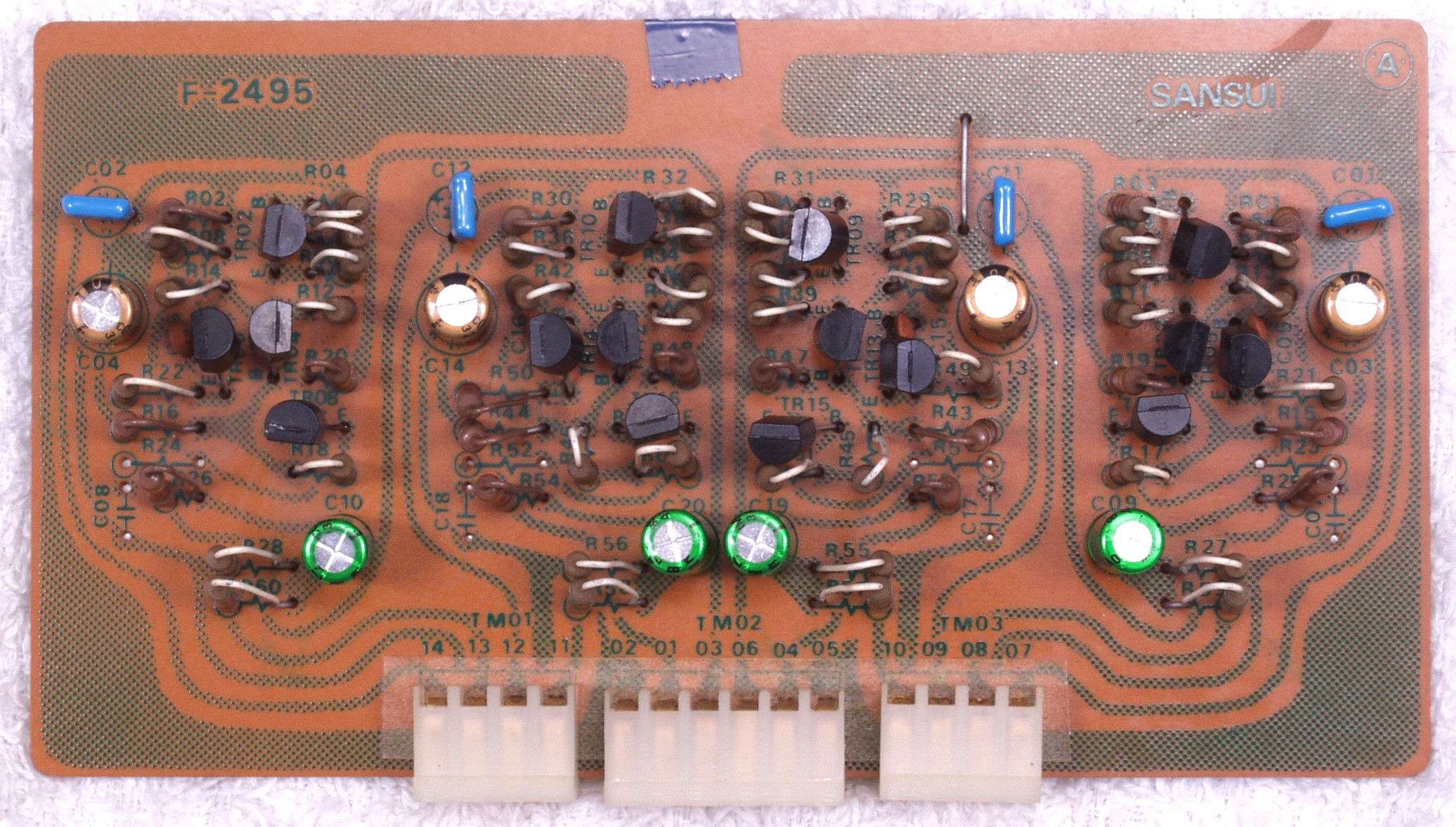 C−7B. 修理後 L−EQ−AMP基板  TR(トランジスター)3個、電解コンデンサー10個交換