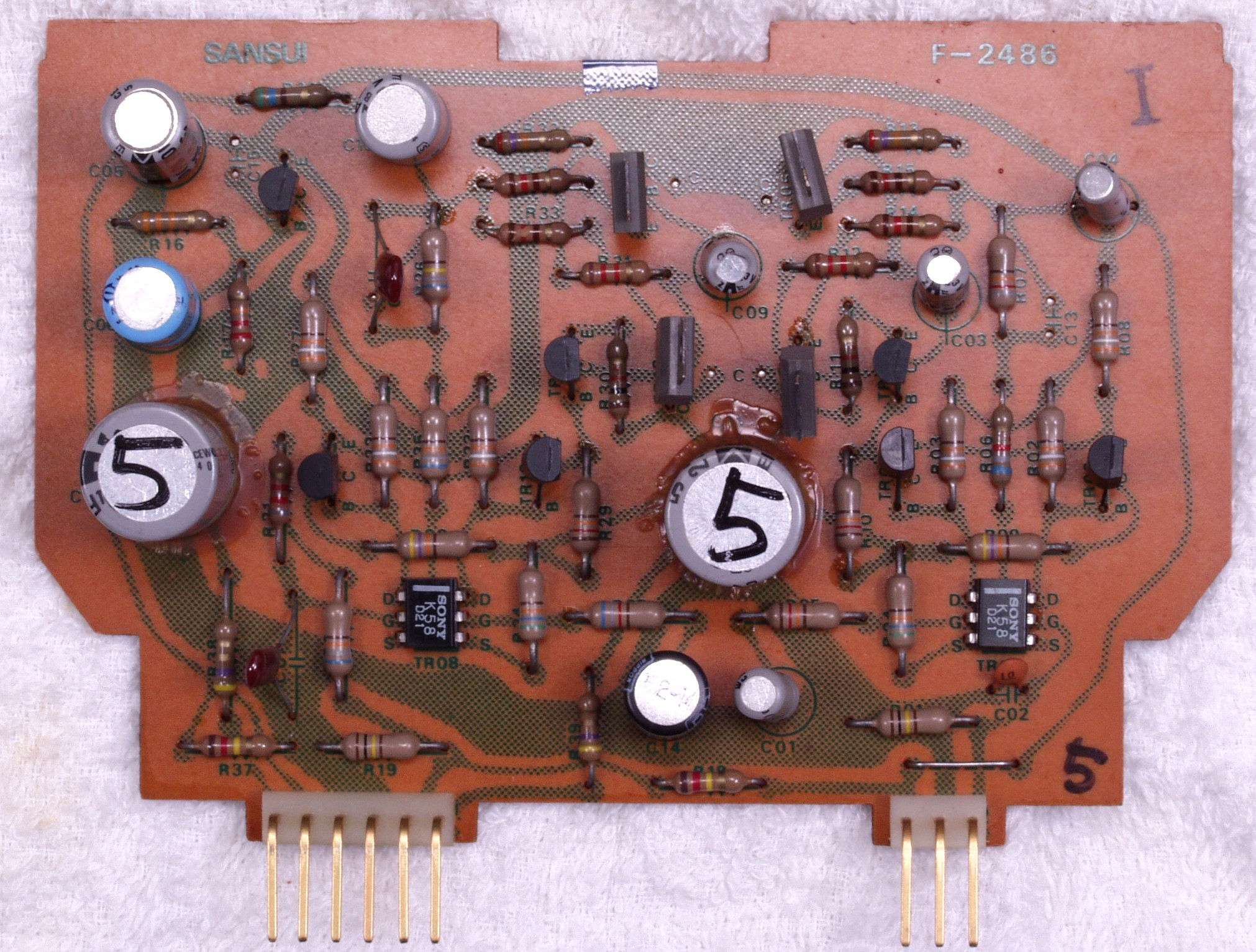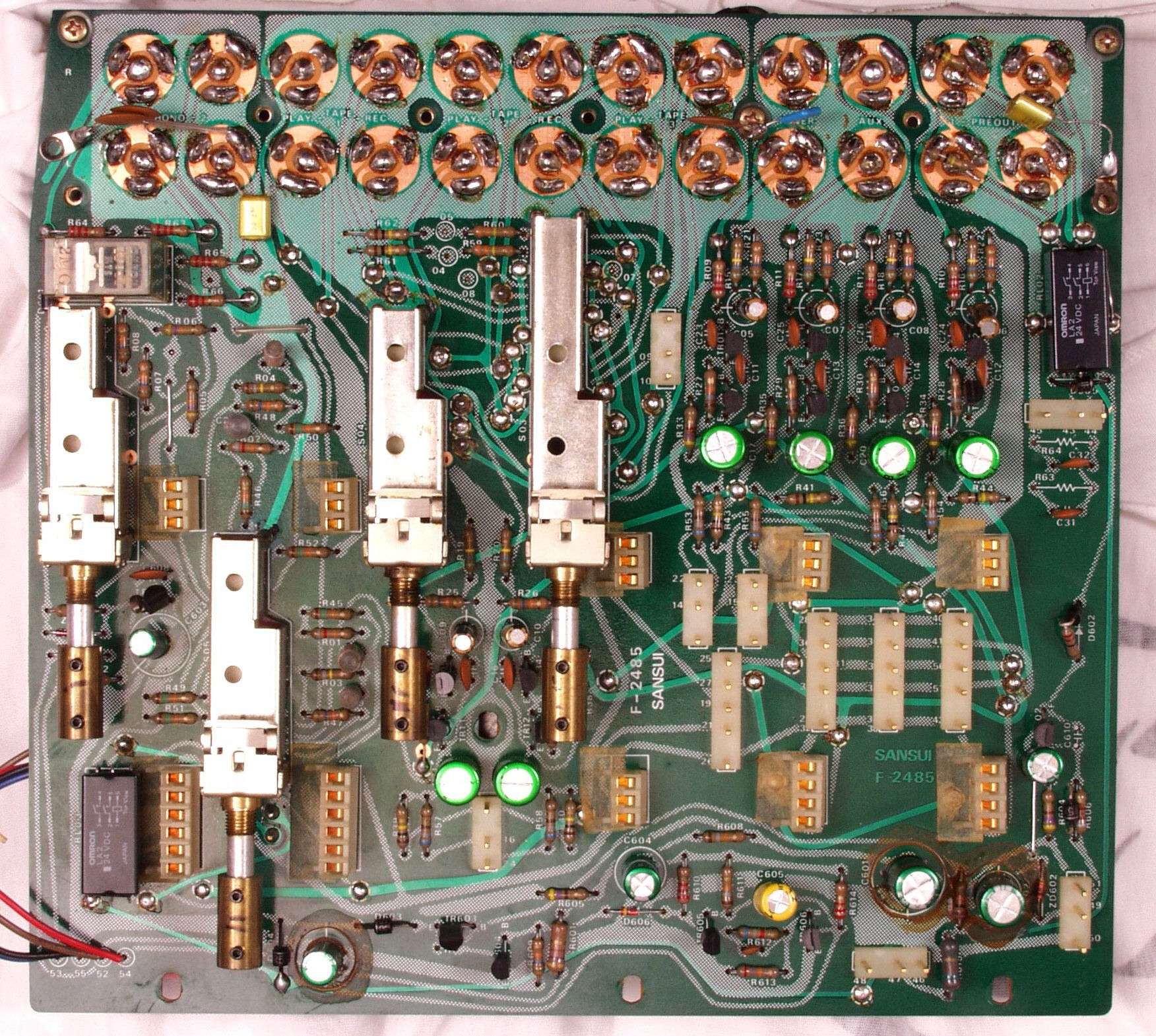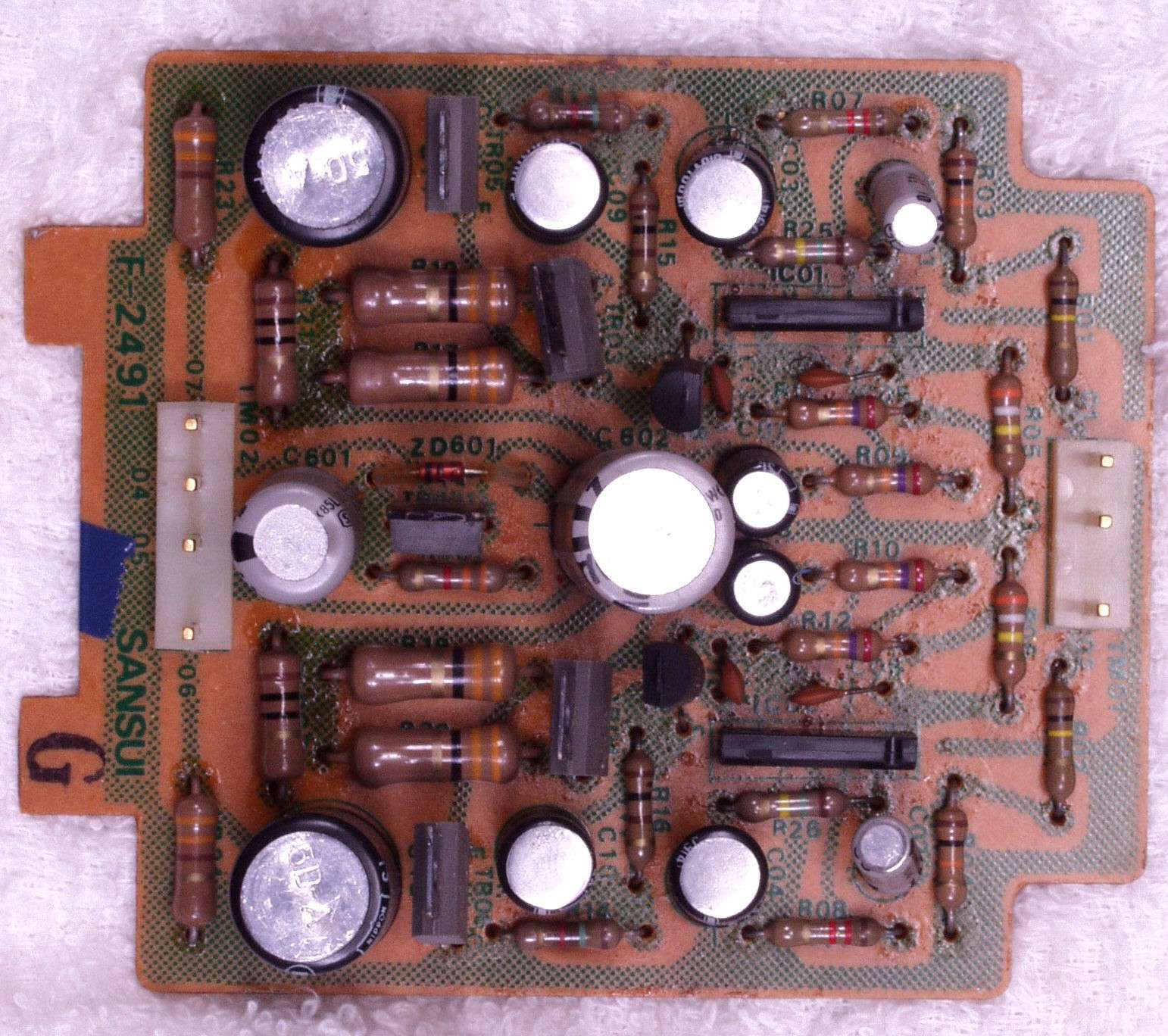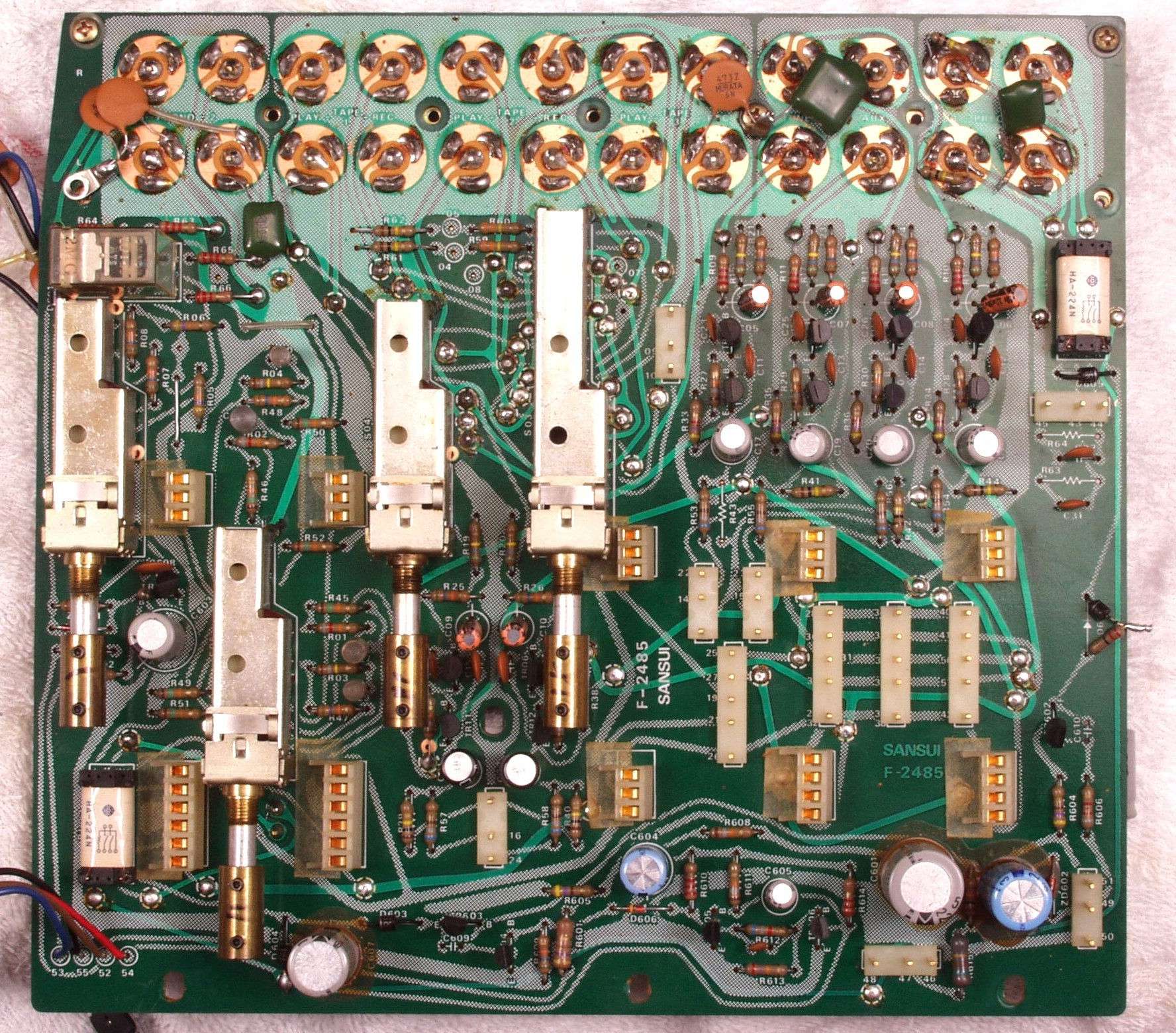 C−7B. 修理後 L−EQ−AMP基板  TR(トランジスター)3個、電解コンデンサー10個交換