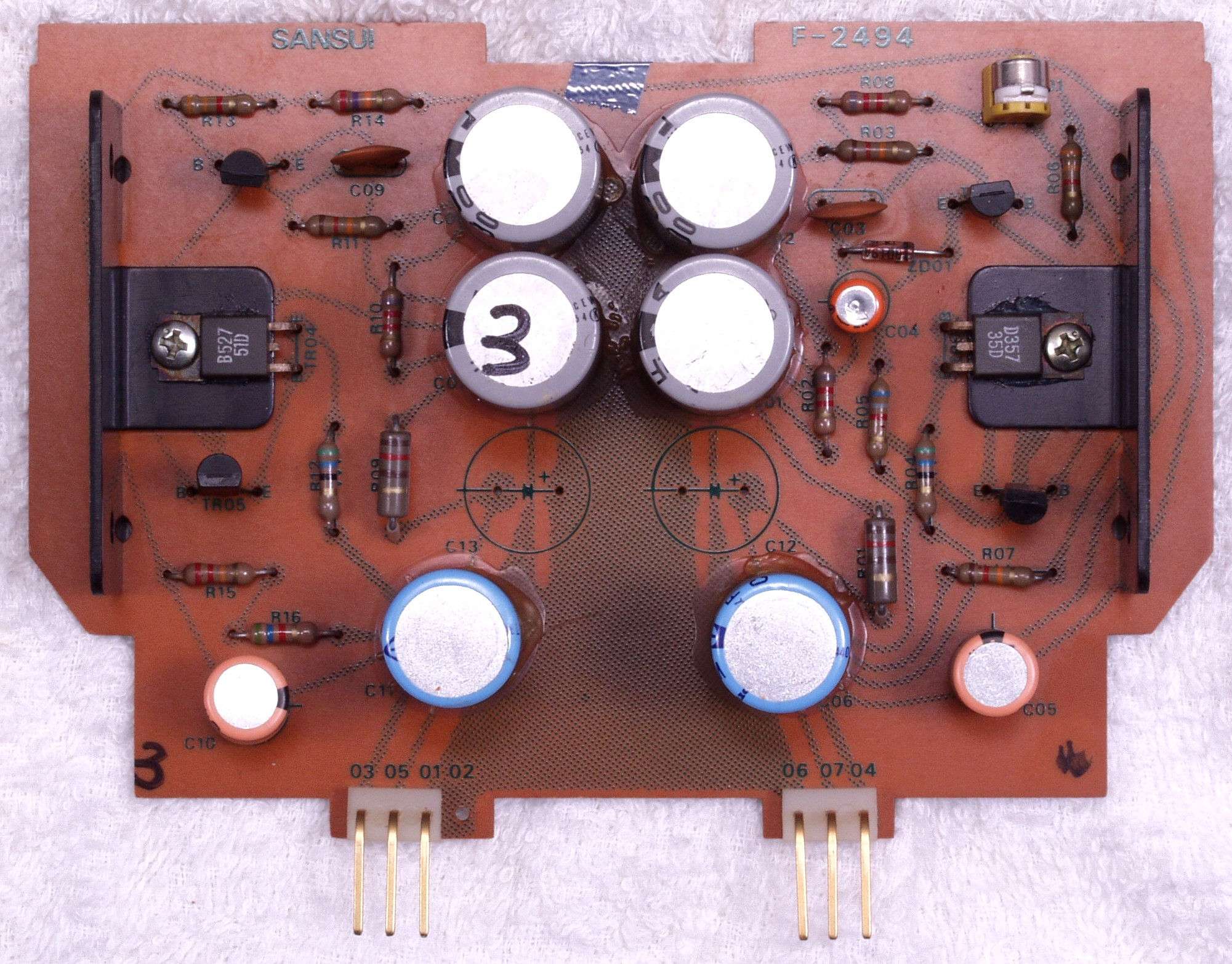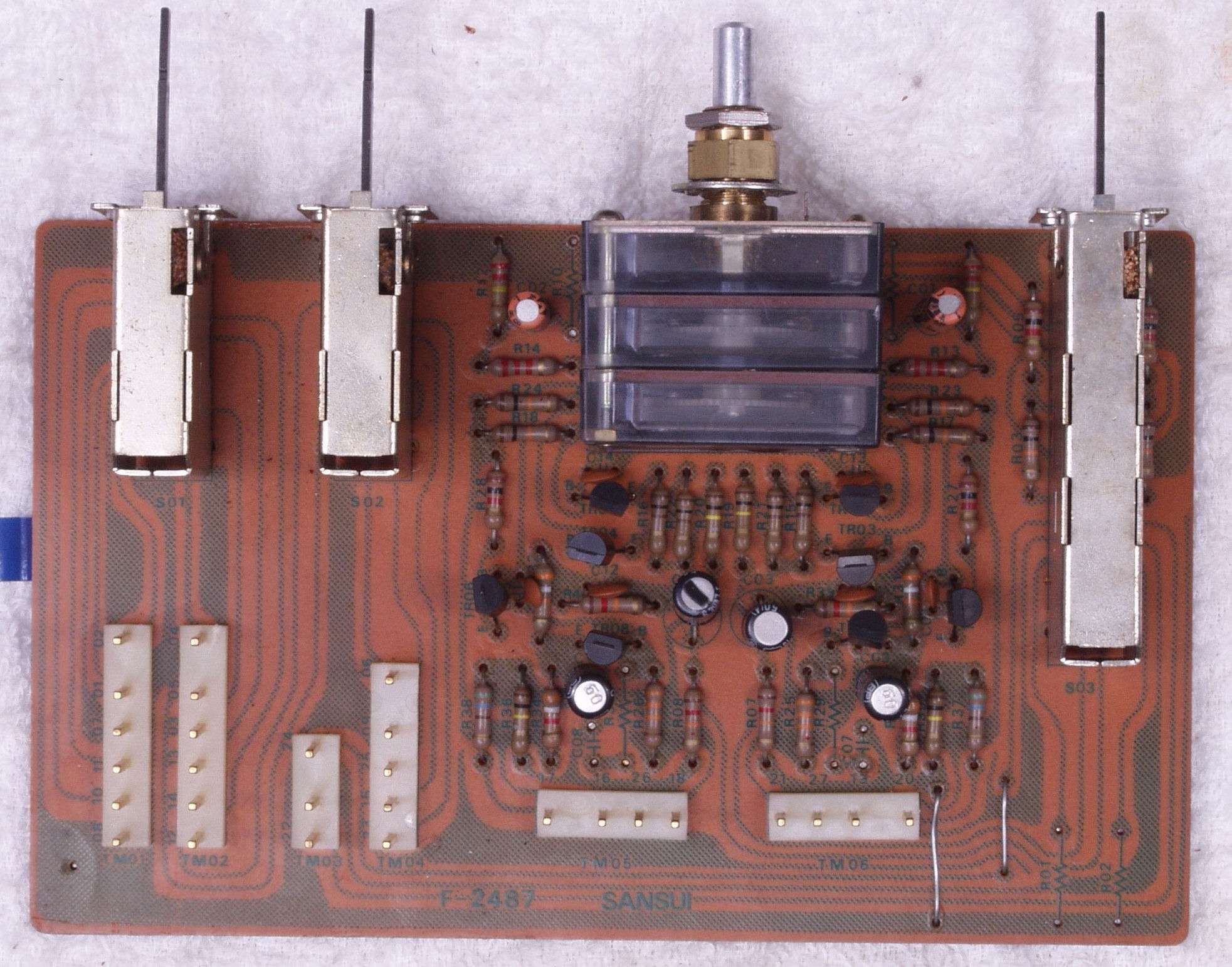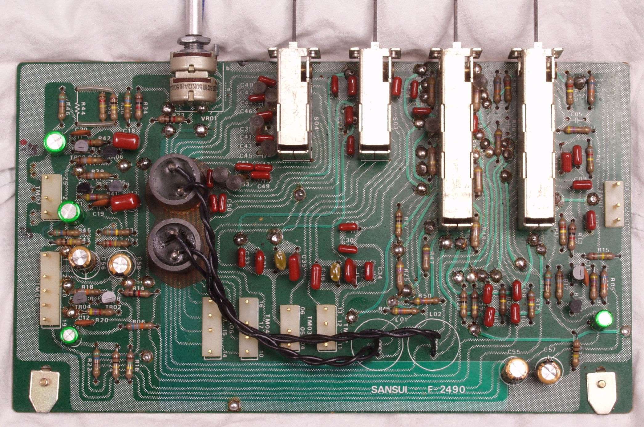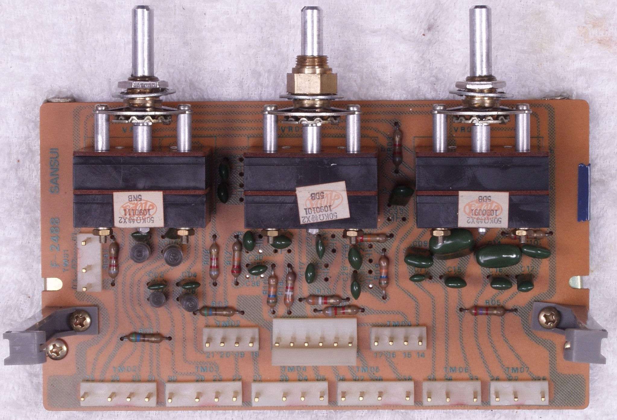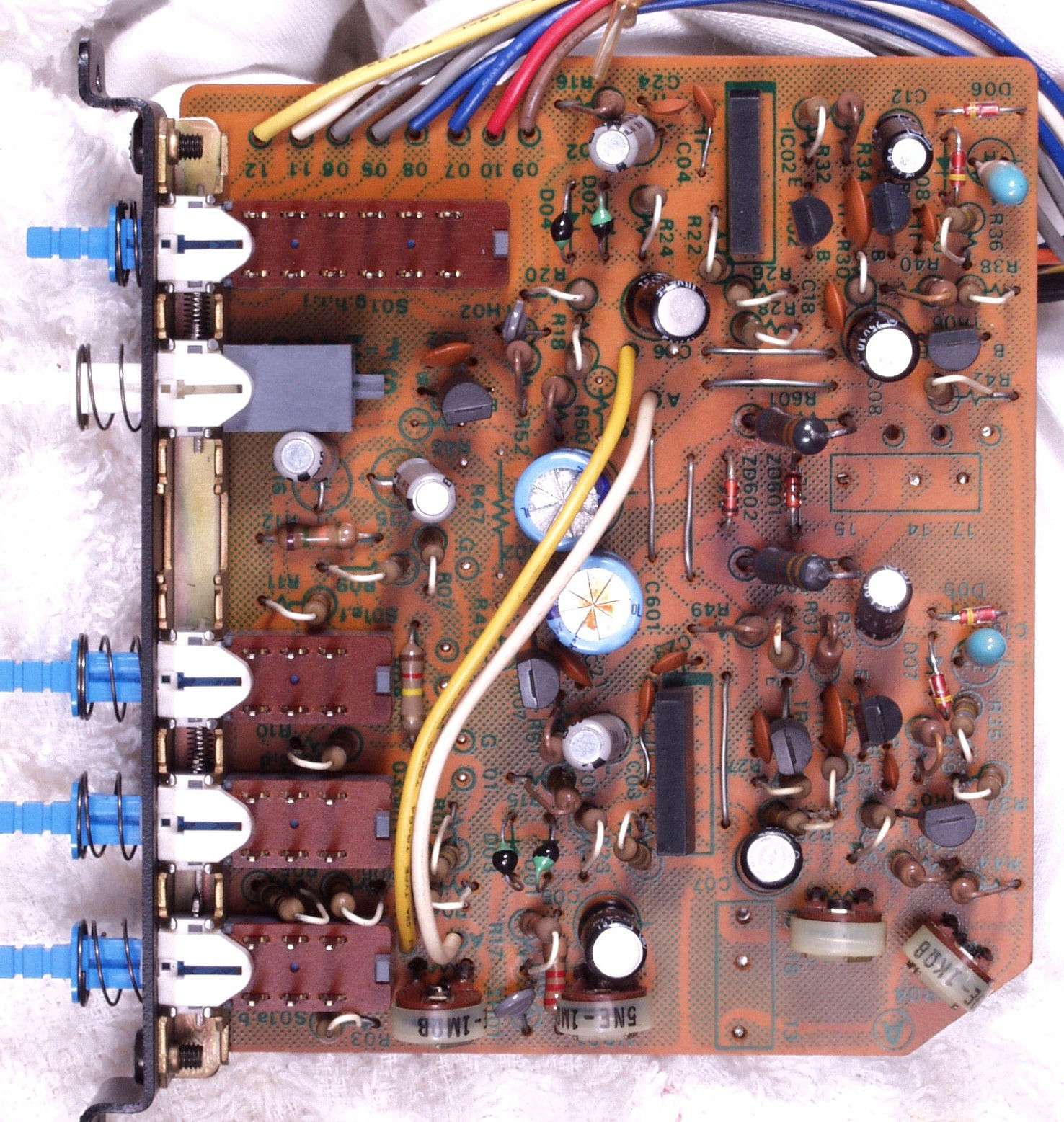 C−7B. 修理後 L−EQ−AMP基板  TR(トランジスター)3個、電解コンデンサー10個交換