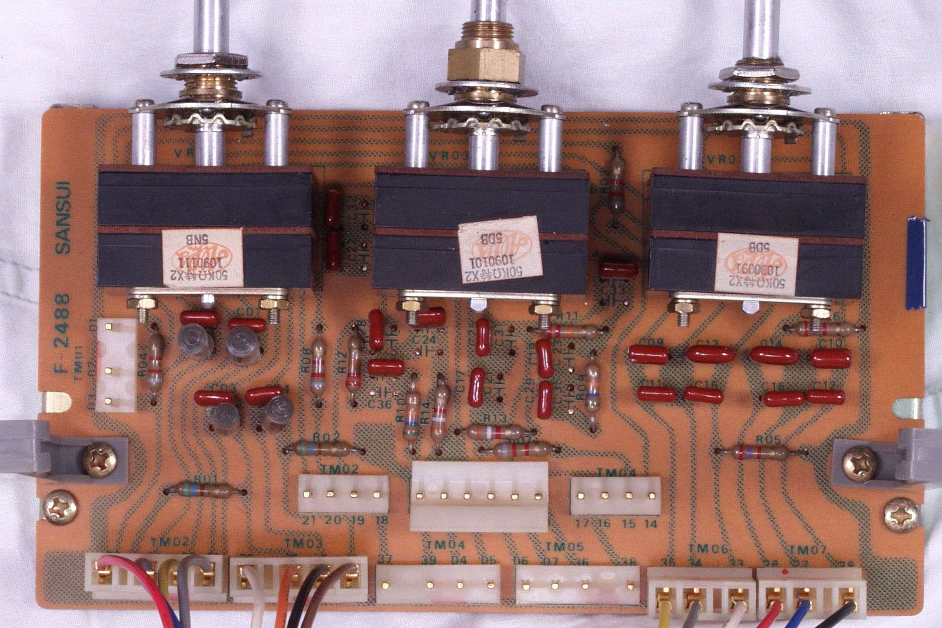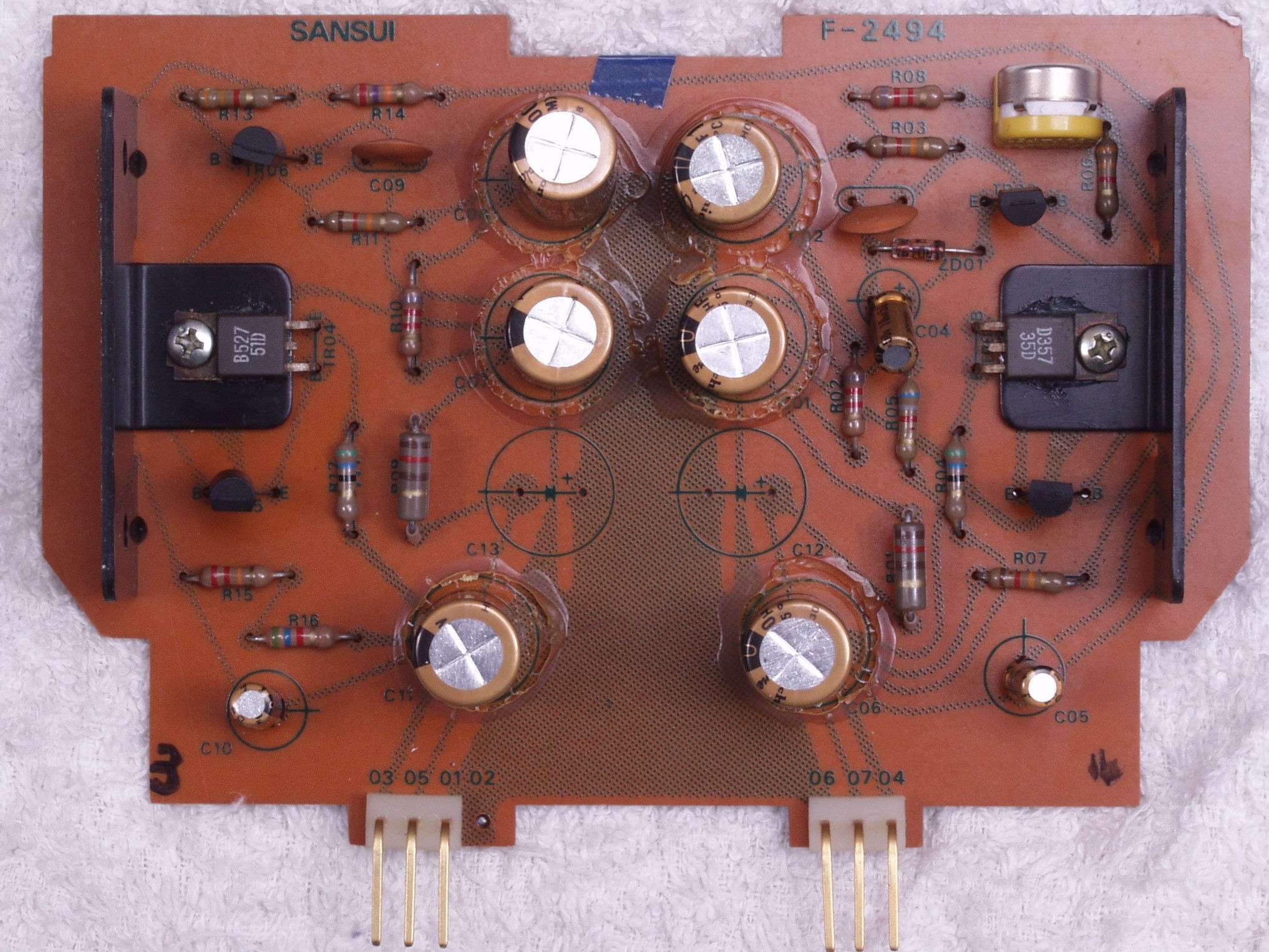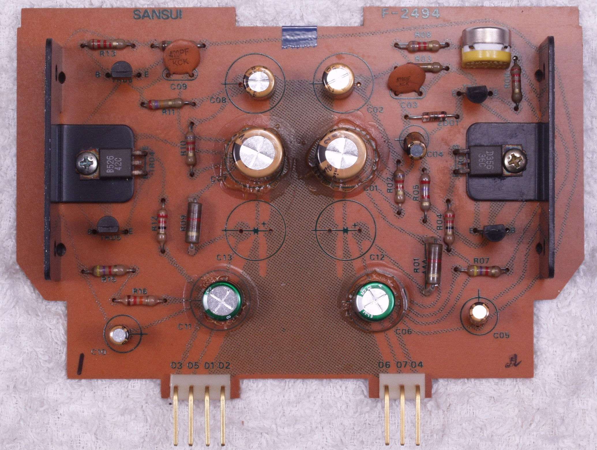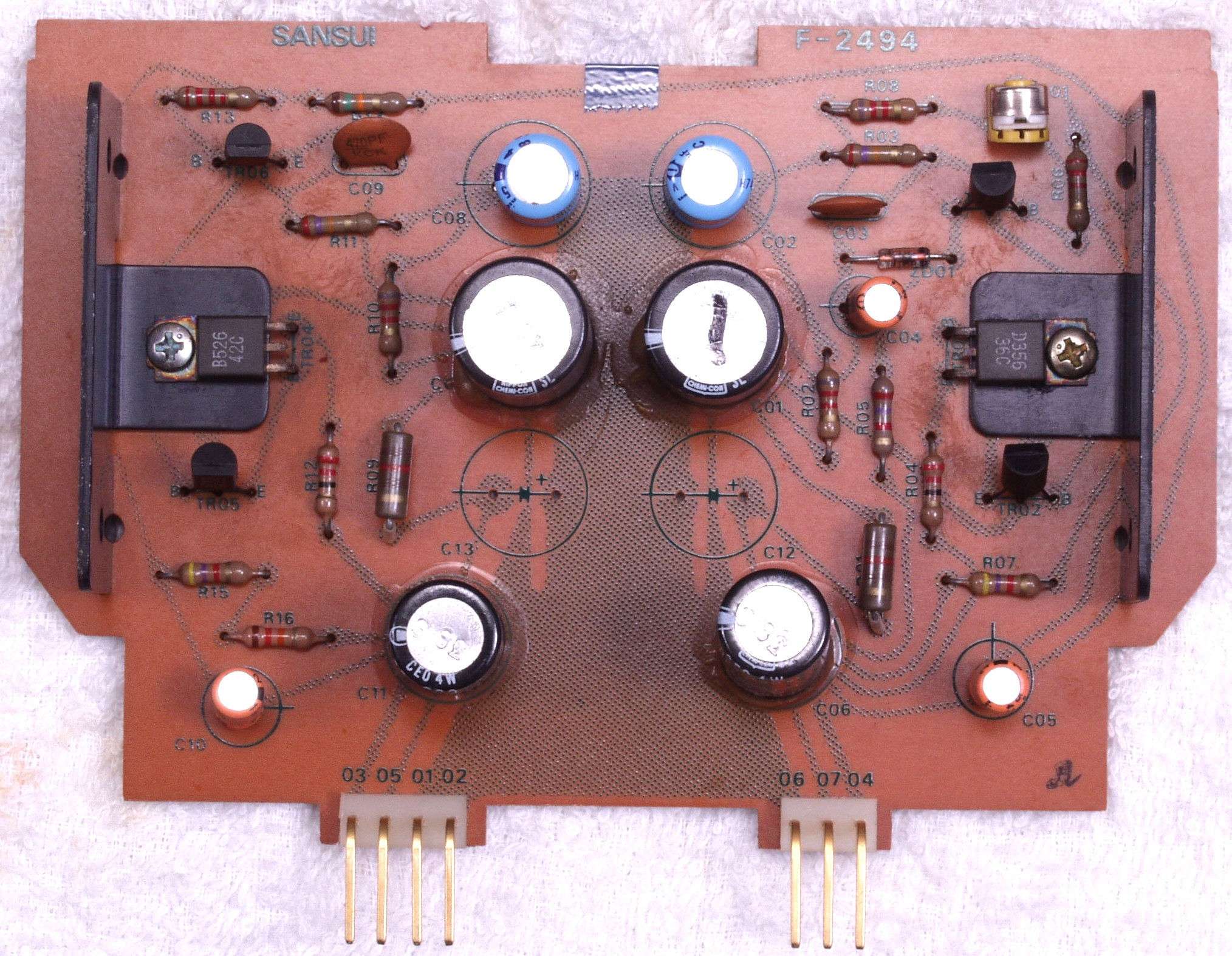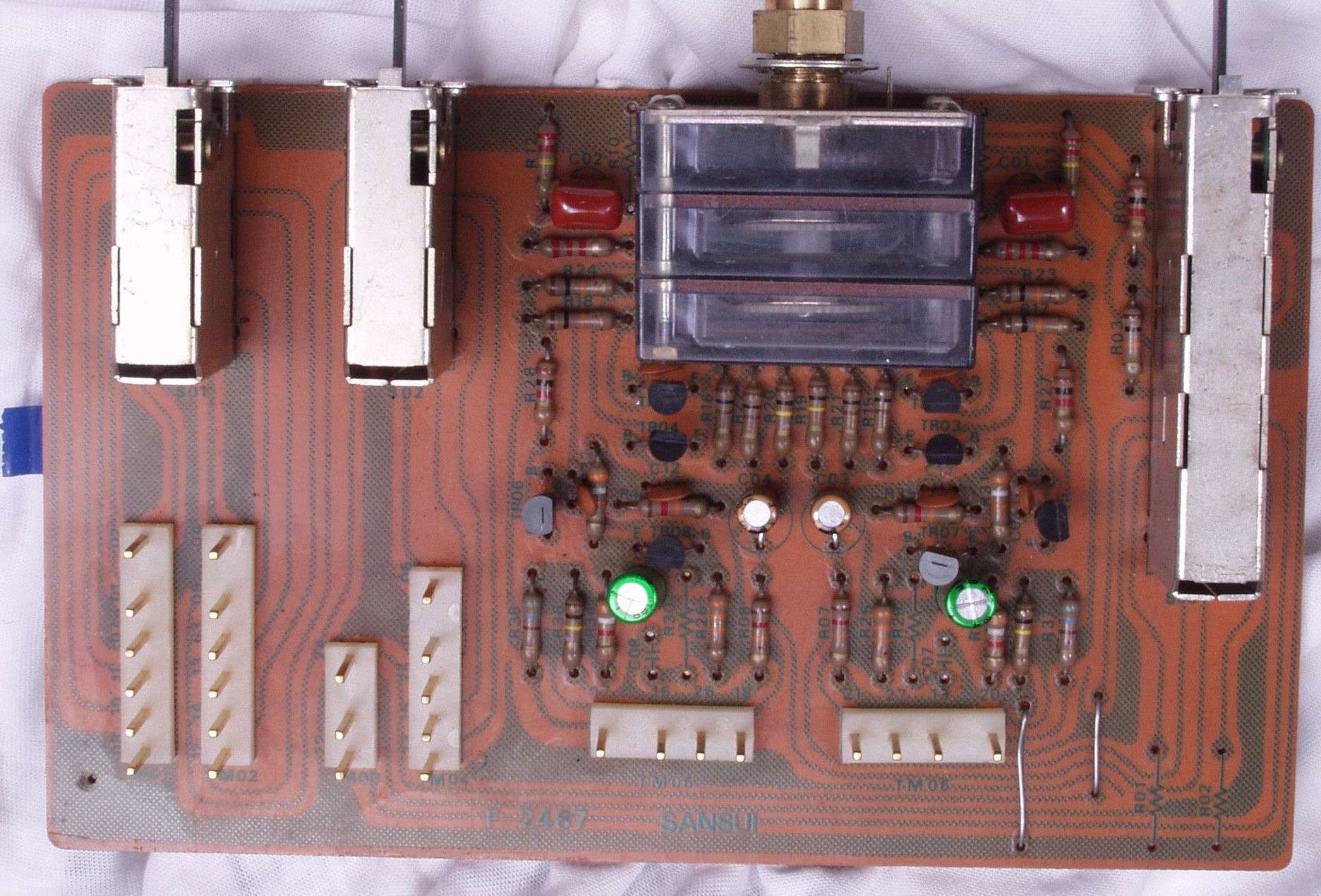 C−7B. 修理後 L−EQ−AMP基板  TR(トランジスター)3個、電解コンデンサー10個交換