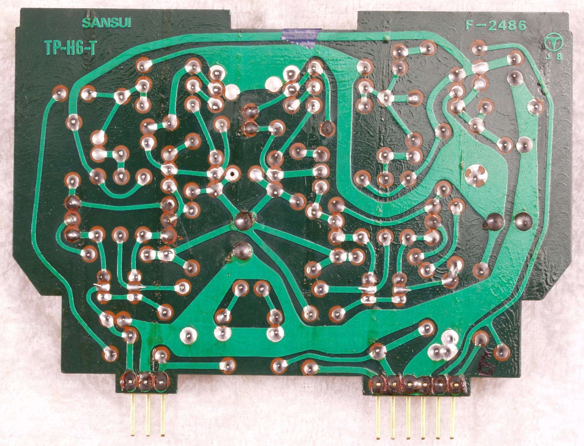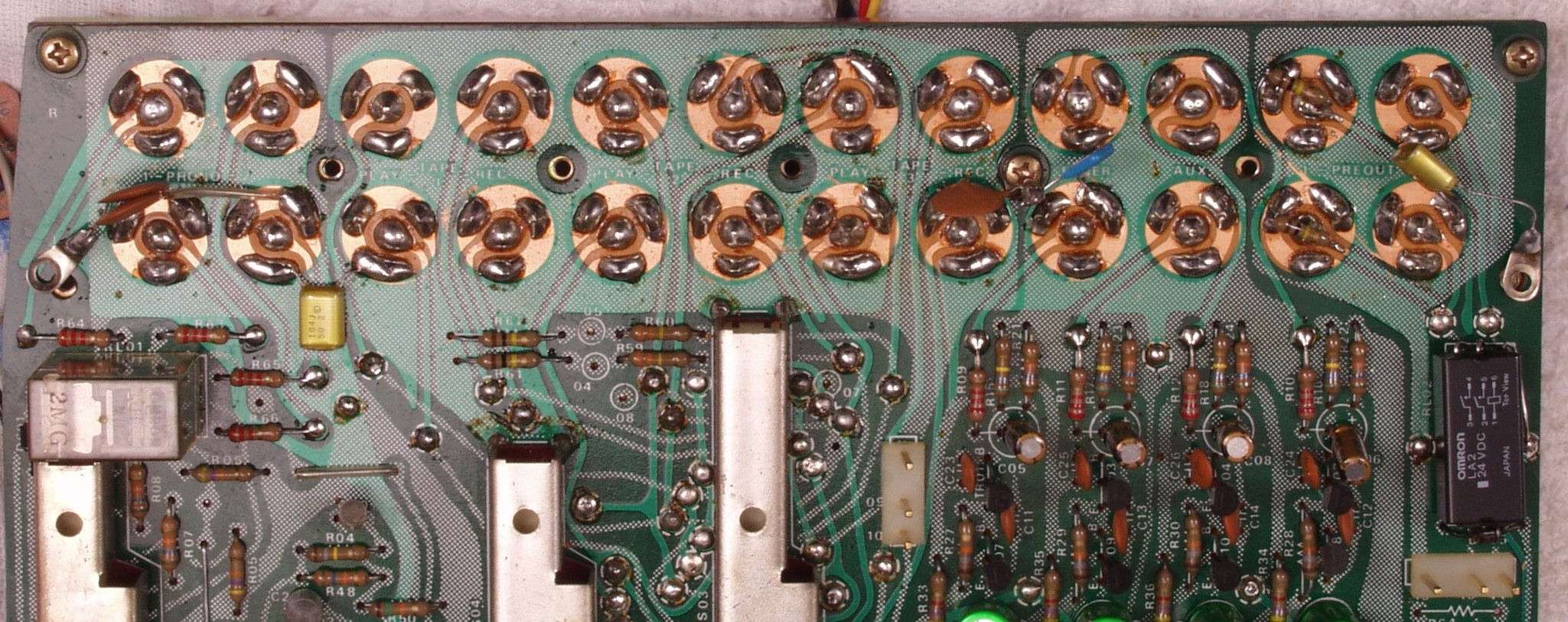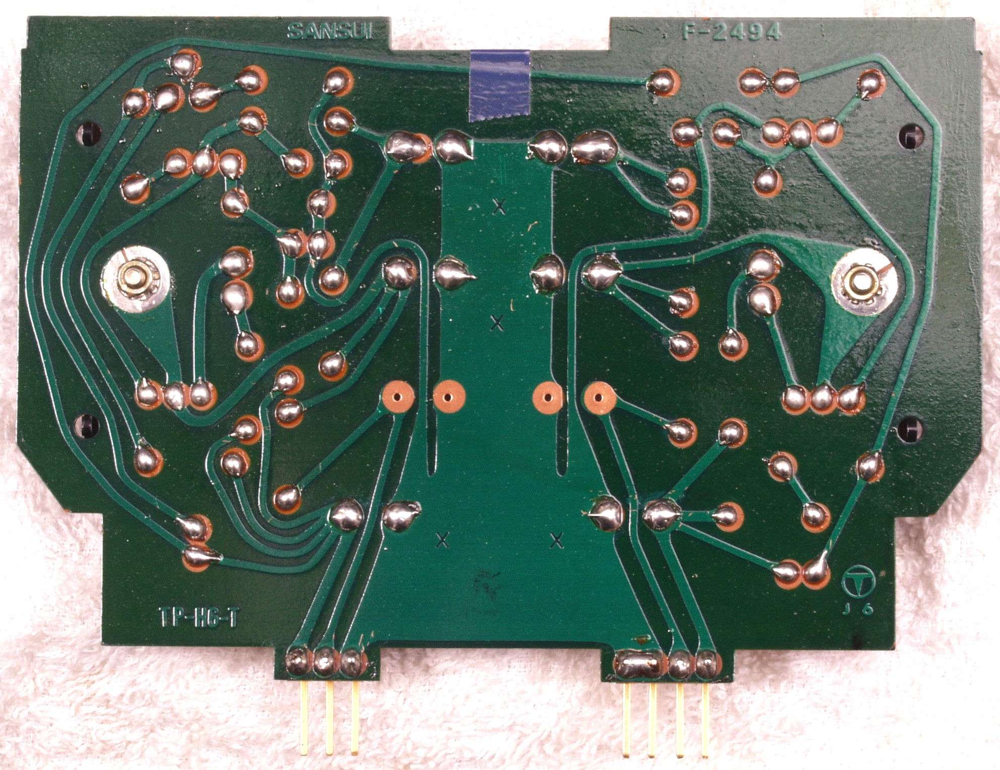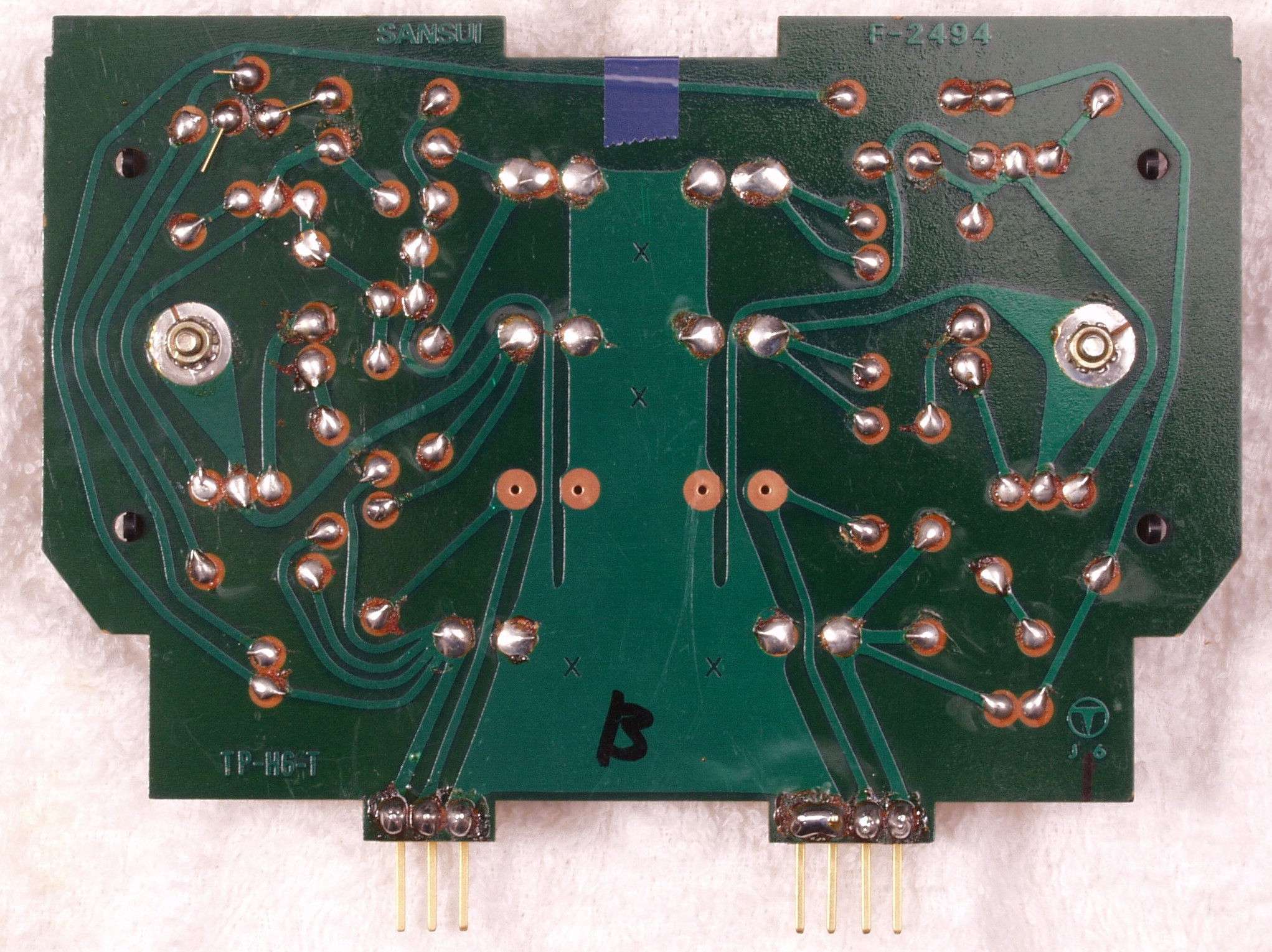 C−2C. 修理前 メイン基板裏 色が変化している所は、接点復活材を吹いた後