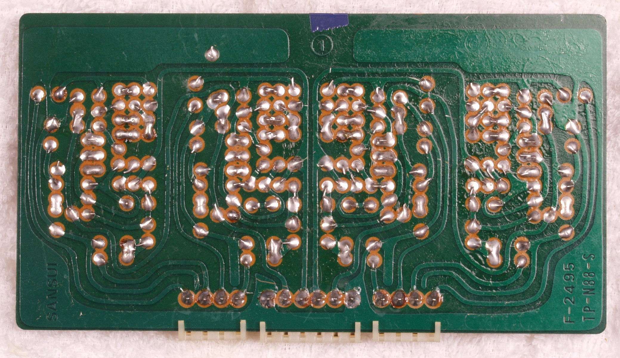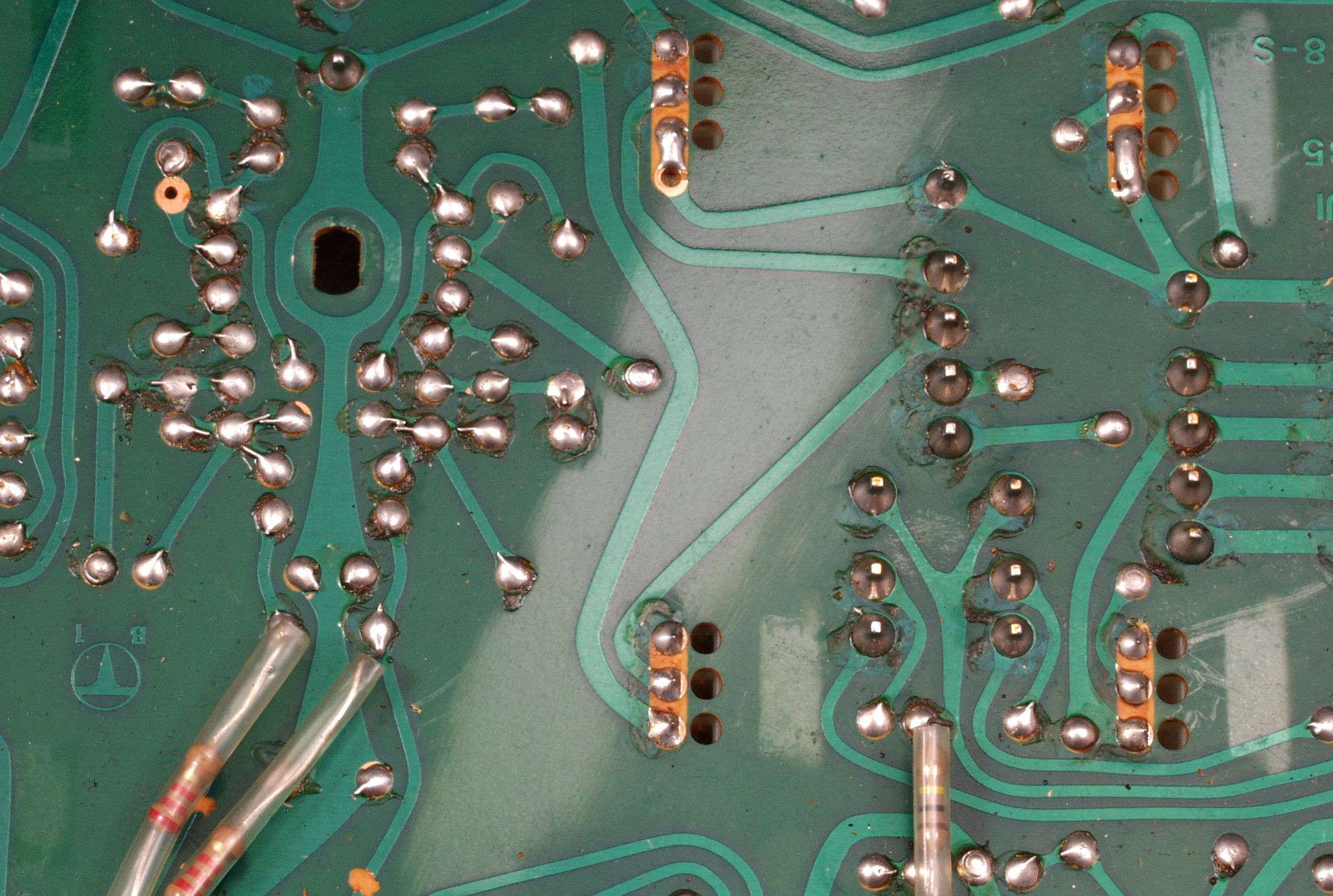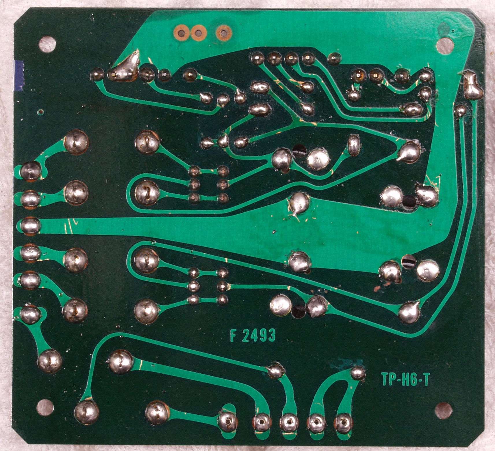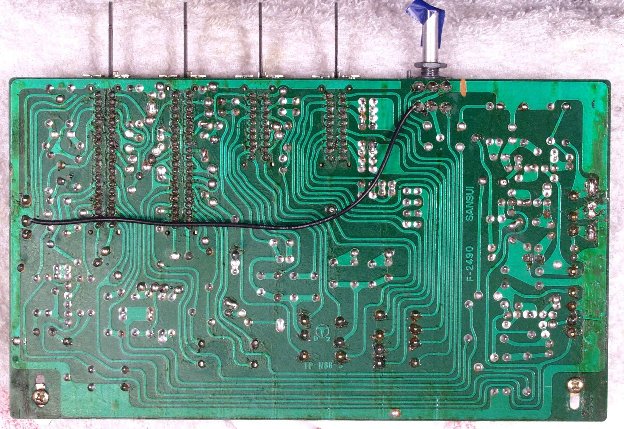 C−2C. 修理前 メイン基板裏 色が変化している所は、接点復活材を吹いた後