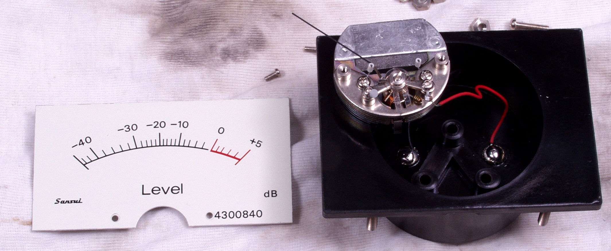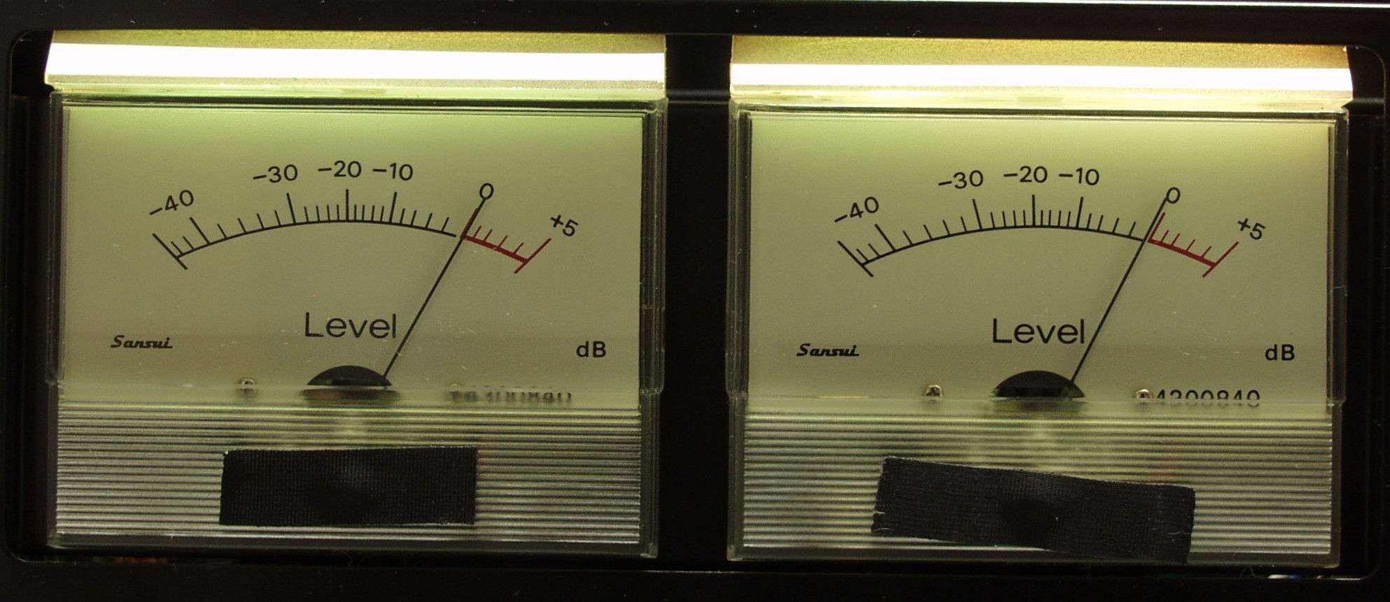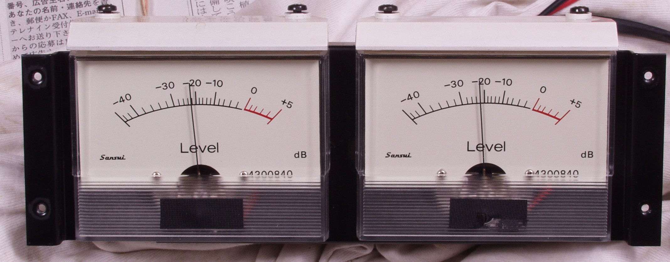 上中=SP出力電圧測定器、赤針=R出力、黒針=L出力