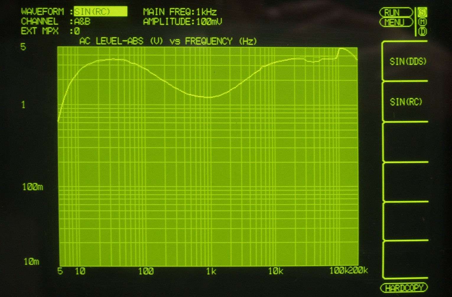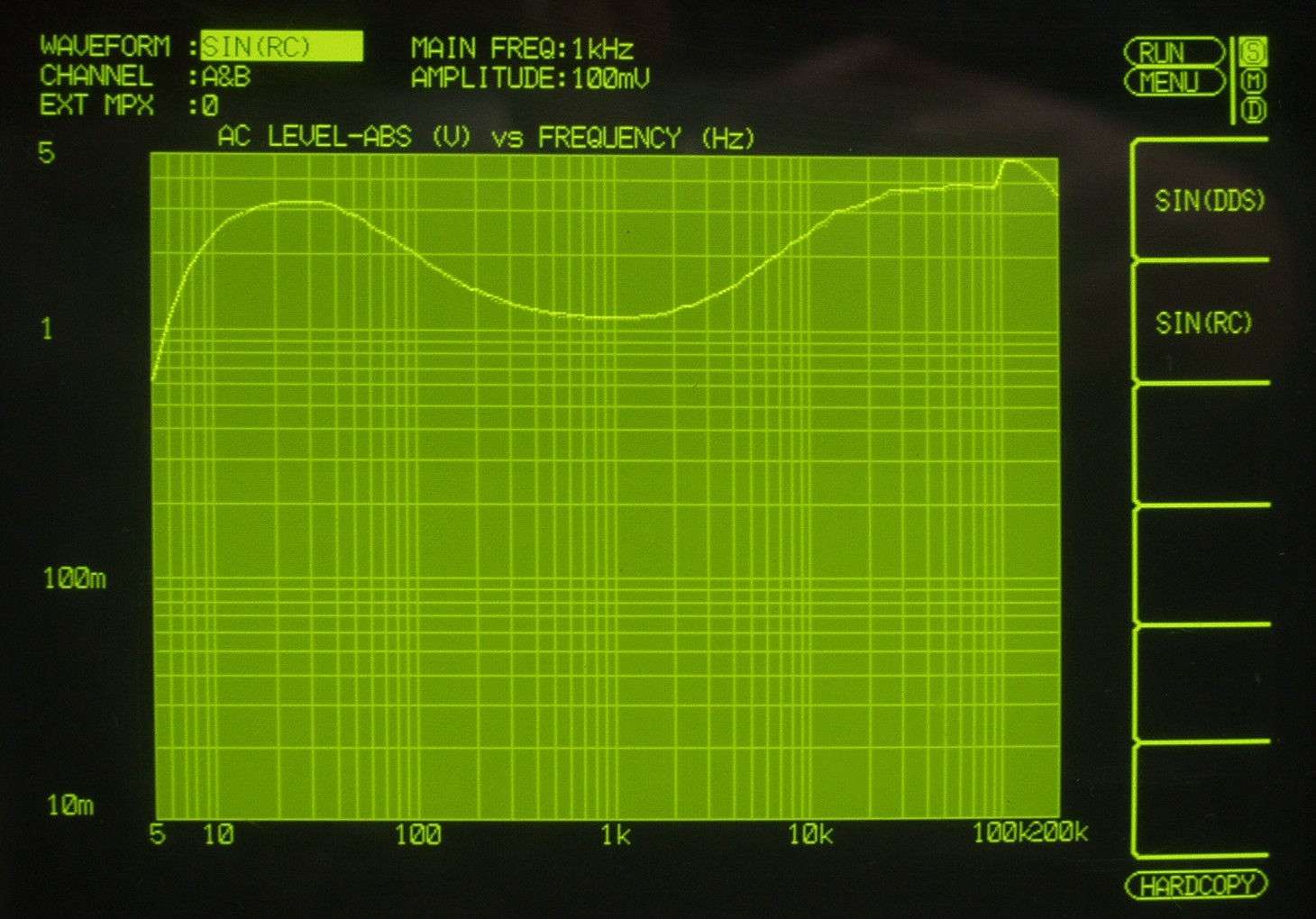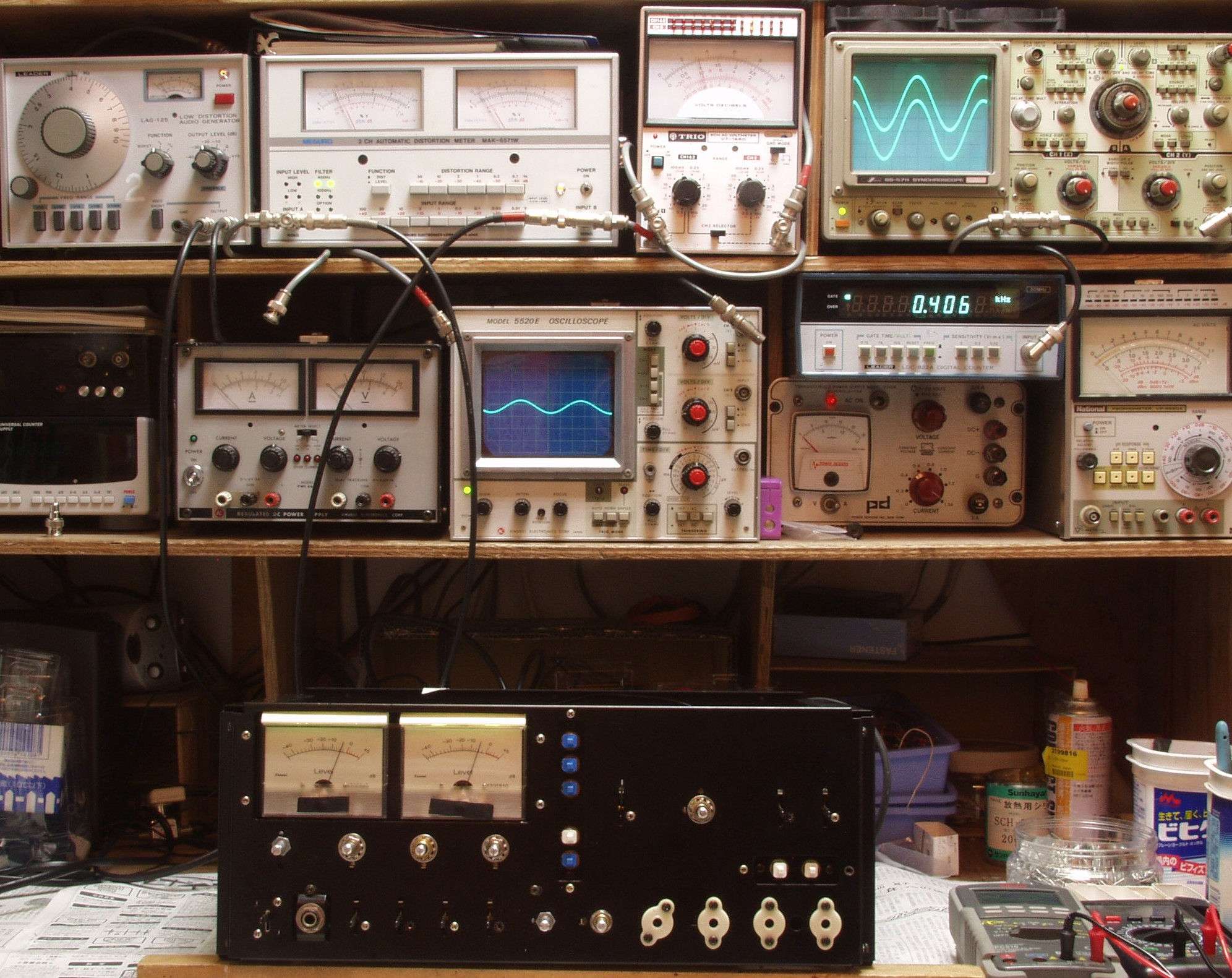 上左オーデオ発振器より400HZ・1KHZの信号を出す(歪み率=約0.003%)