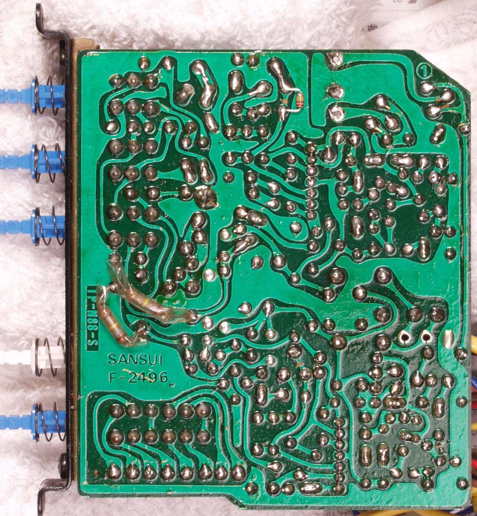 C−6D. 修理(半田補正)後 R−EQ−AMP基板裏 半田を全部やり直す