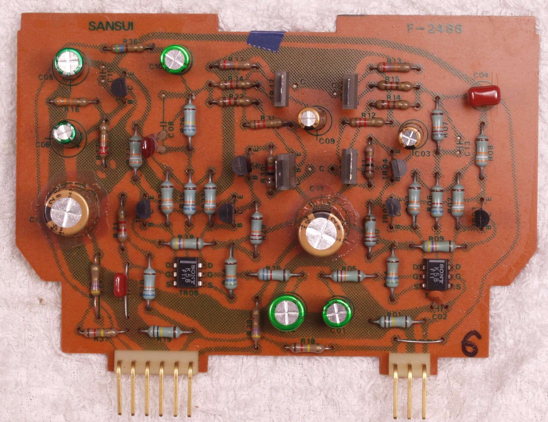 C−6B. 修理後 R−EQ−AMP基板 TR(トランジスター)3個、電解コンデンサー10個交換