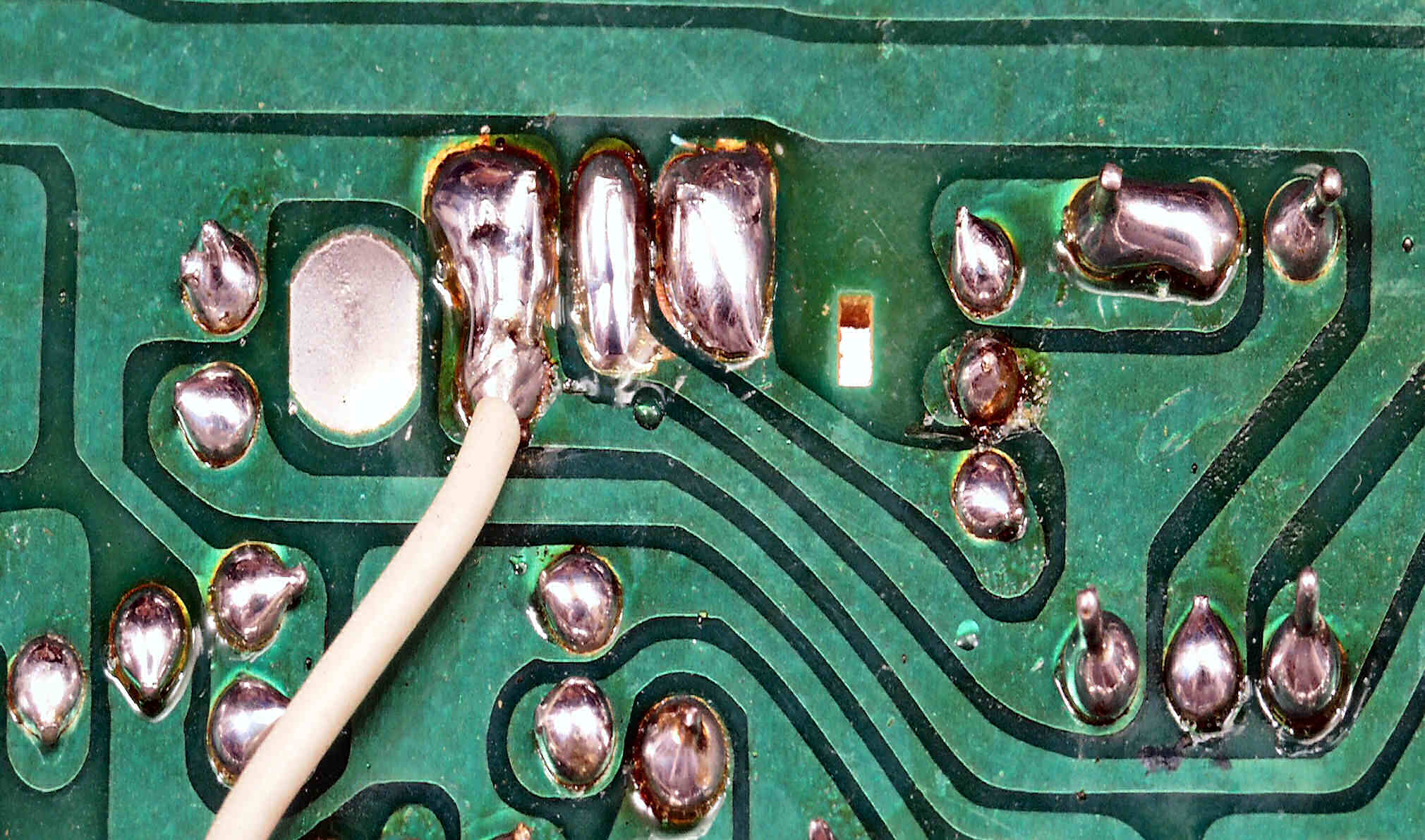 | C4E. 修理後 電源基板裏。 不要なフラックスを取る | ||||||||||||||||||||||||||||||||||||||||||||||||||||||||||||