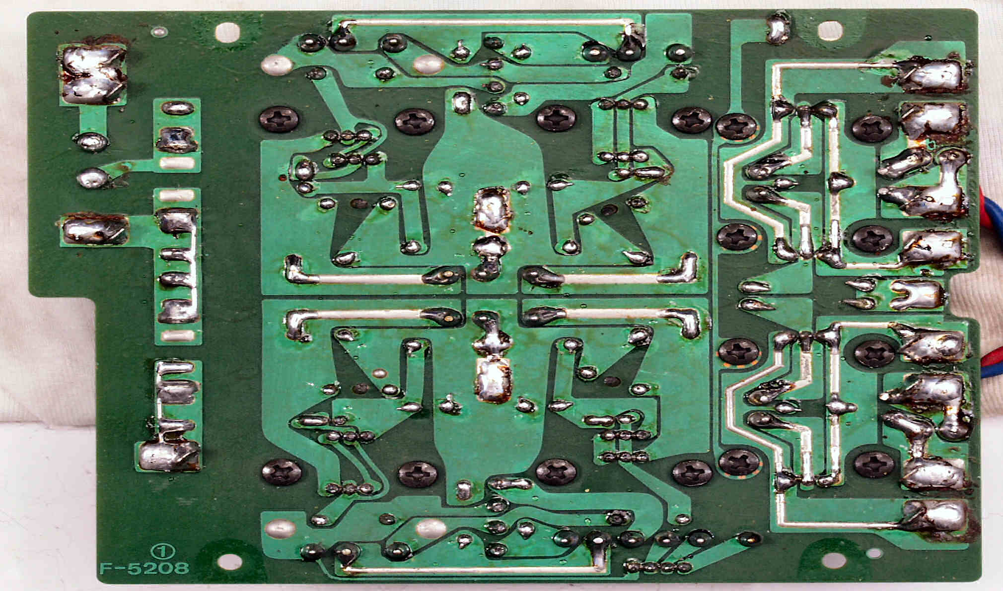 | C1F. 修理後(半田補正) R側終段基板裏 全ての半田をやり修す | ||||||||||||||||||||||||||||||||||||||||||||||||||||||||||||