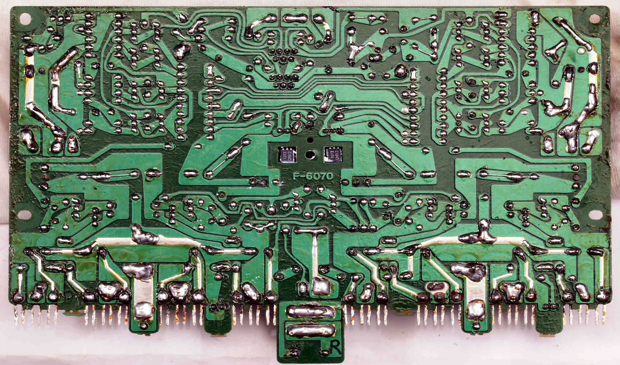 | C6D. 修理後(半田補正)後 EQ・Video SW基板裏 全ての半田をやり修す | ||||||||||||||||||||||||||||||||||||||||||||||||||||||||||||