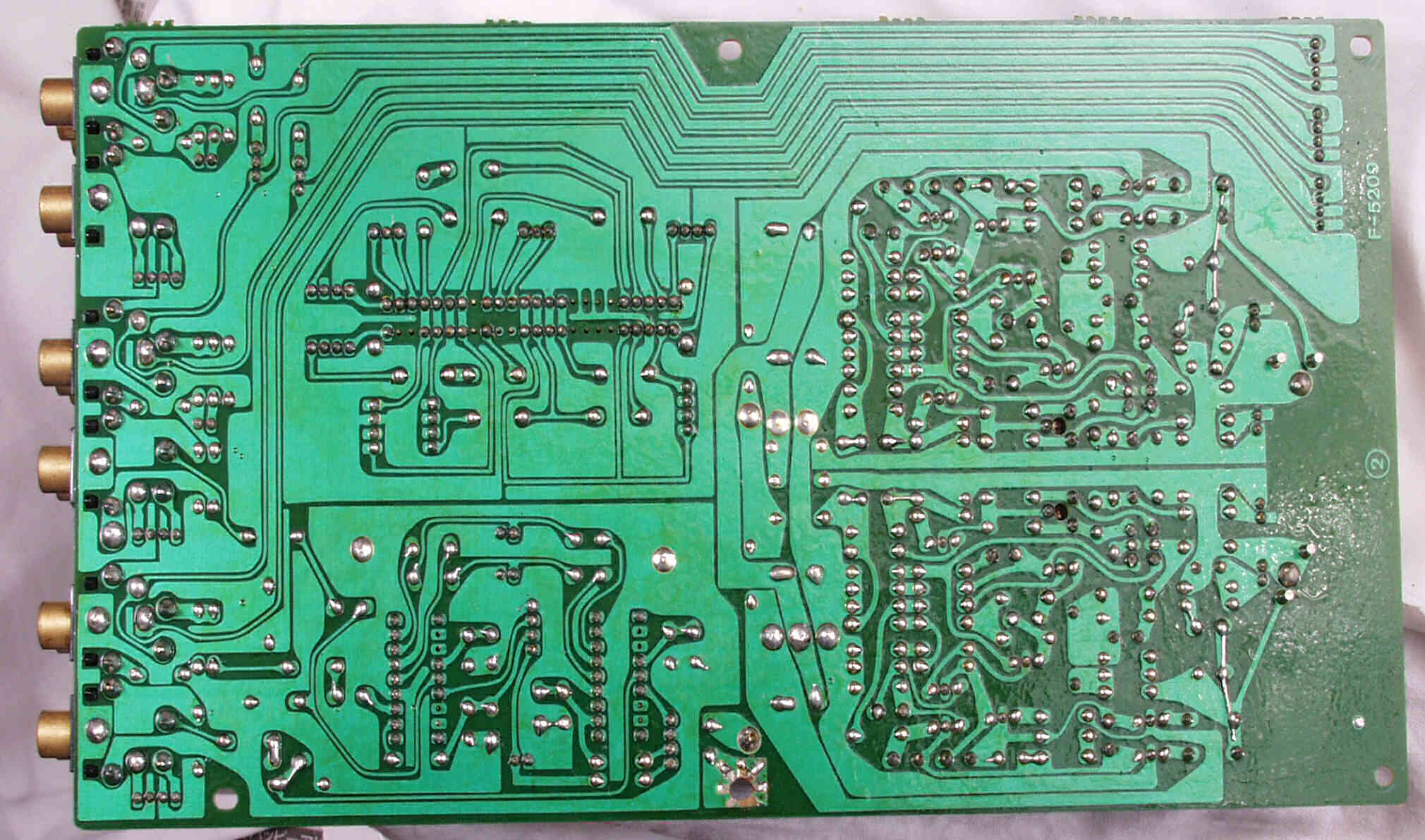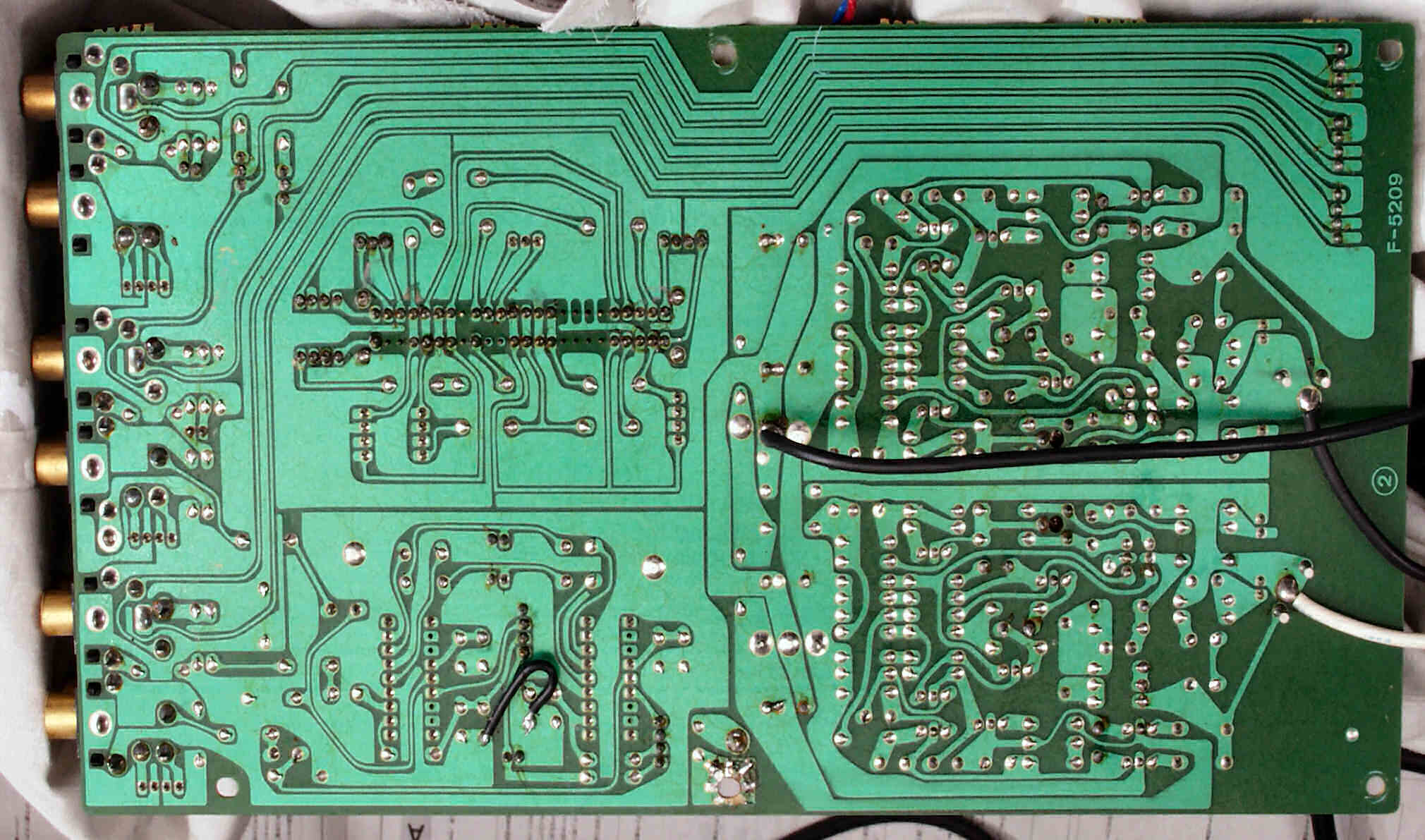 | C7A. 修理前 Phono・CD・Tuner・Line入力RCA端子基板裏 | ||||||||||||||||||||||||||||||||||||||||||||||||||||||||||||