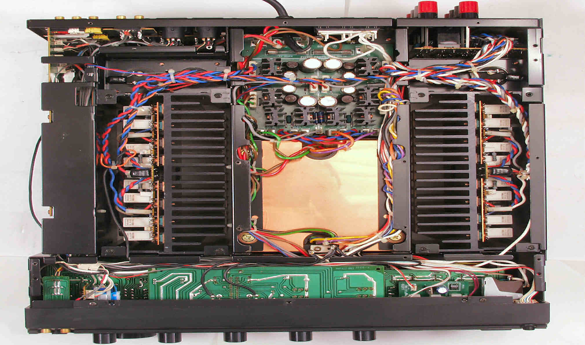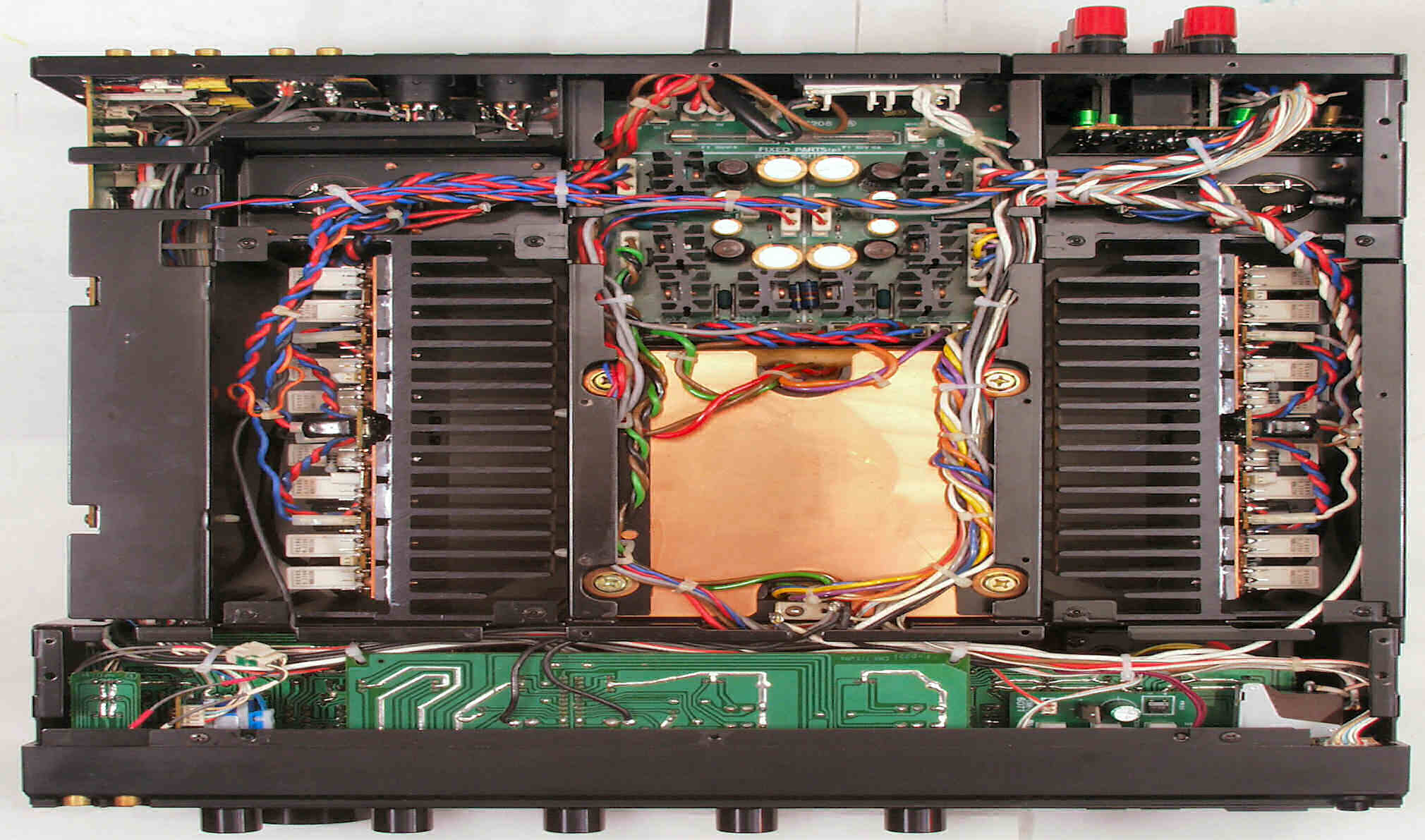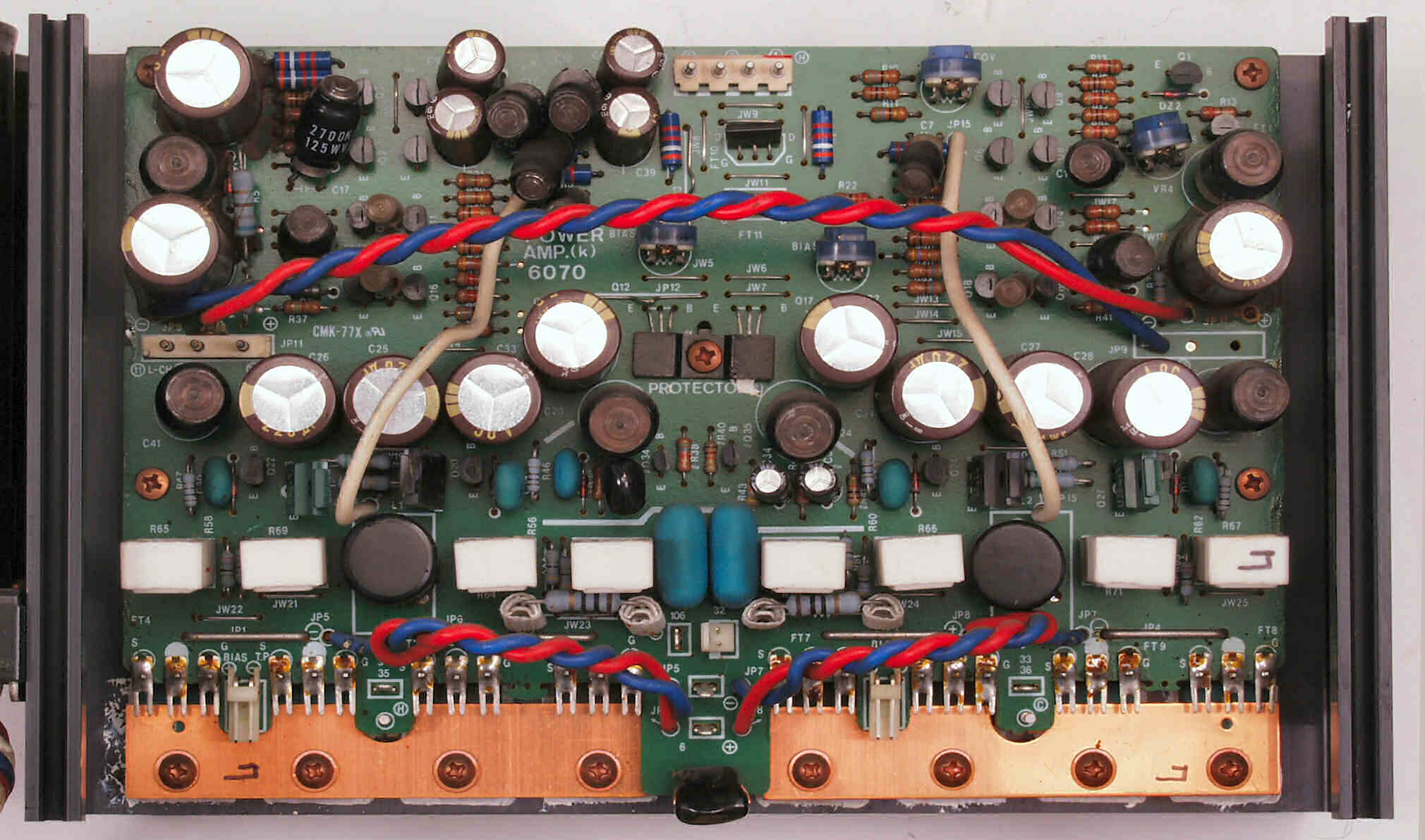 | 注意 このAMPはSP出力の線(アース側)も増幅しています。 アースに接続してはいけません。RL−SPのアース線も接続(共通)してもいけません 又、DC−入力が可能ですが、絶対に使用しないこと=詳しくはここ参照 終段FET(電界効果トランジスター)を、現在の高性能に交換してありますので、出力が1.3倍出ますので注意して使用する事 |