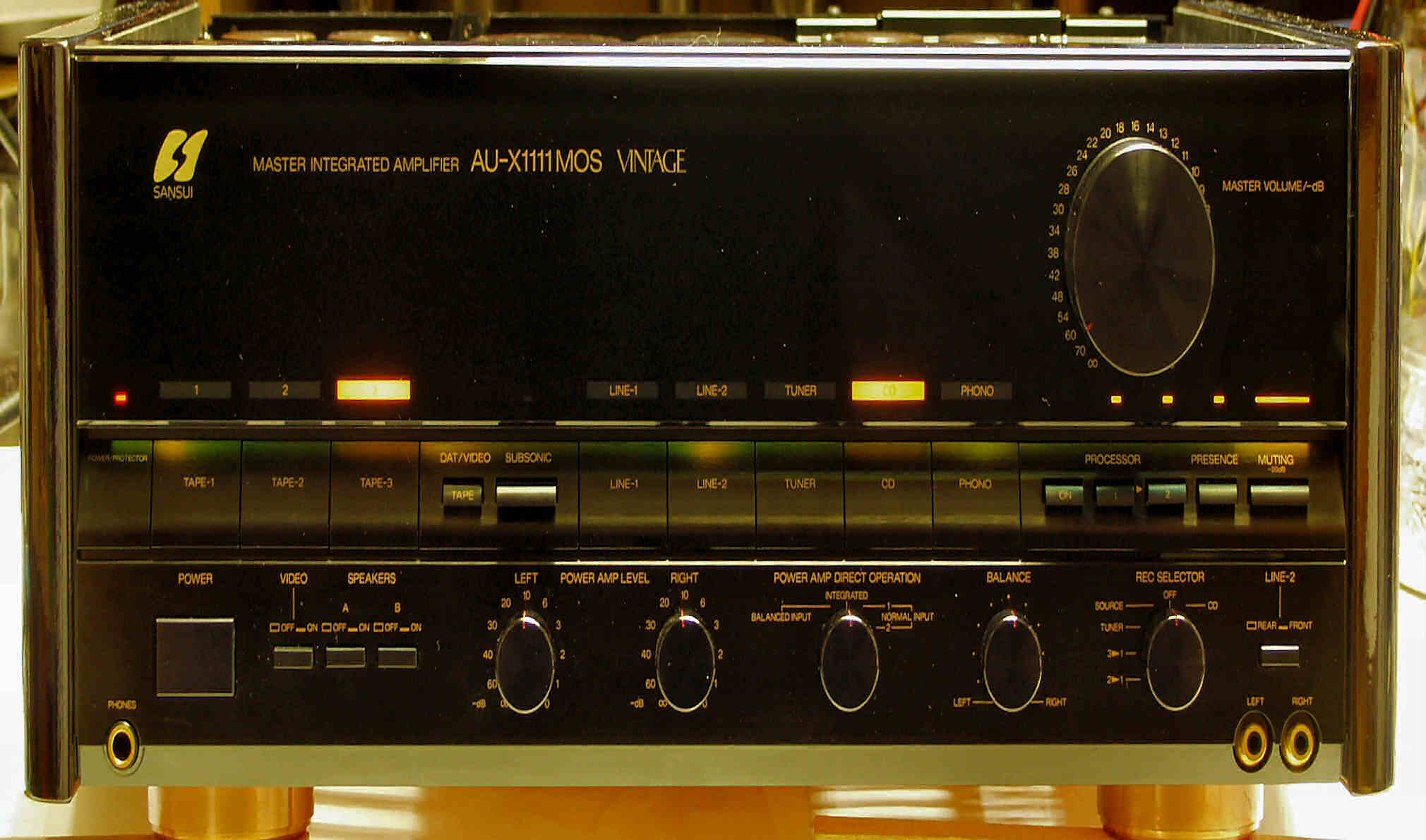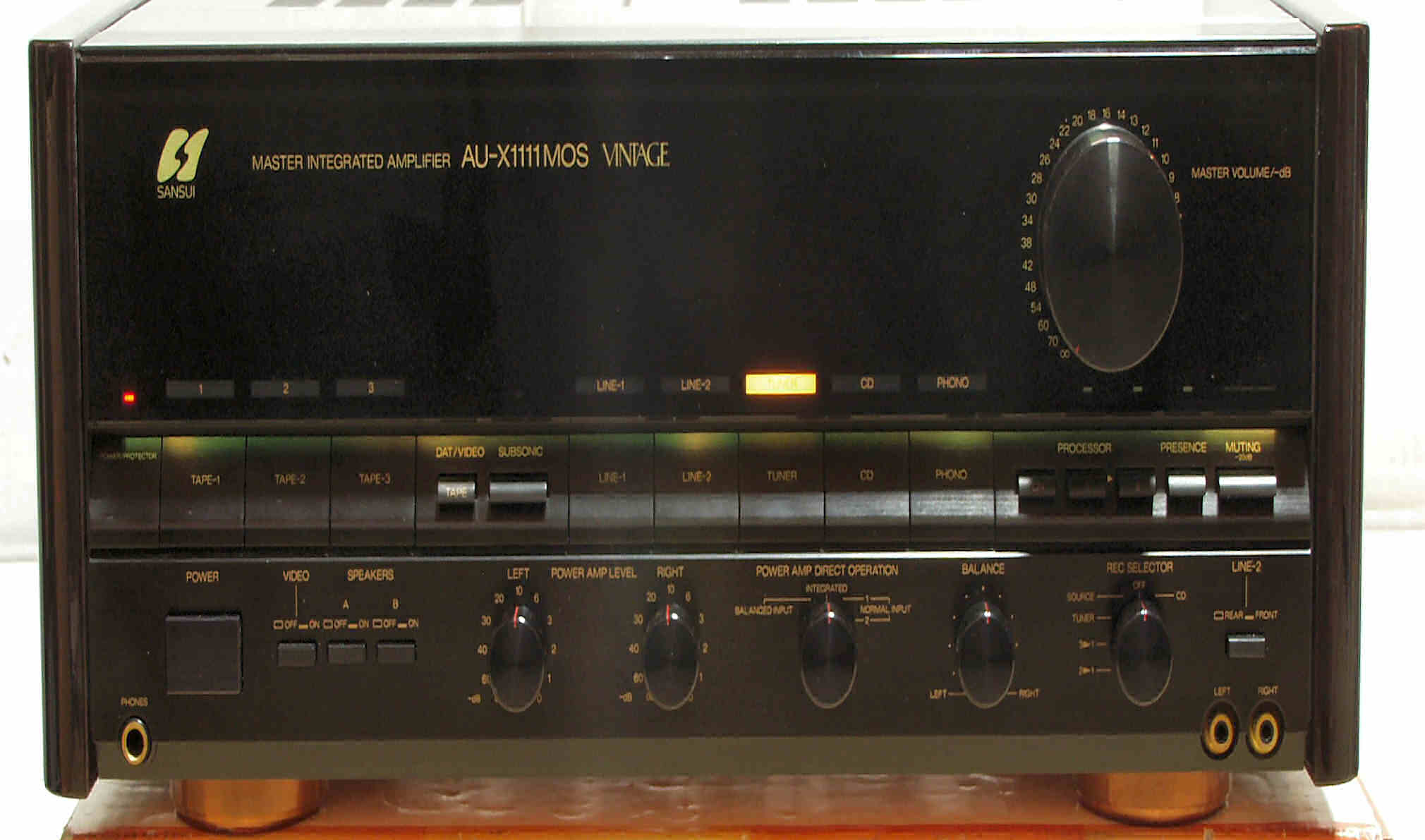 E. 調整・測定 E. 修理費 160,000円 オーバーホール修理。 チューンUPの為に、A1Aの大型コンデンサーを除く電解コンデンサー交換。 S.Sansui AU−X1111MOS VINTAGE の仕様(マニアルより) |