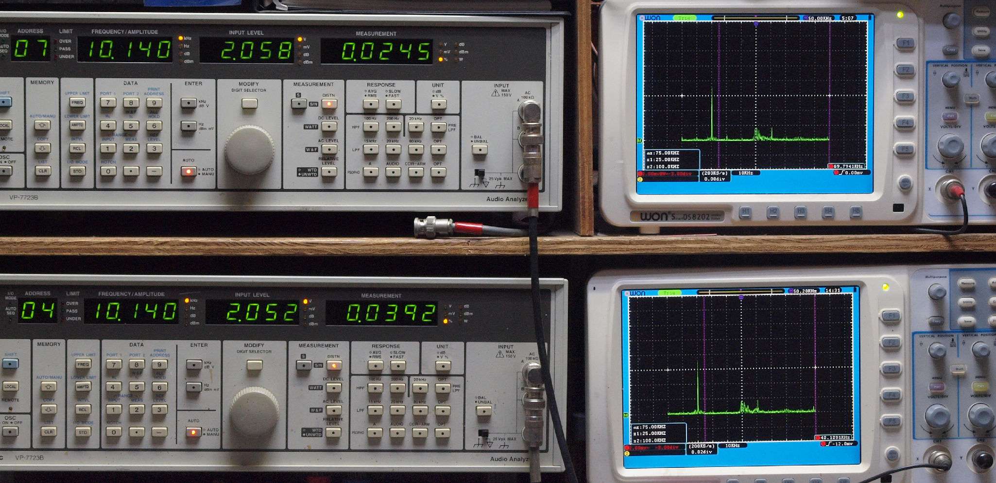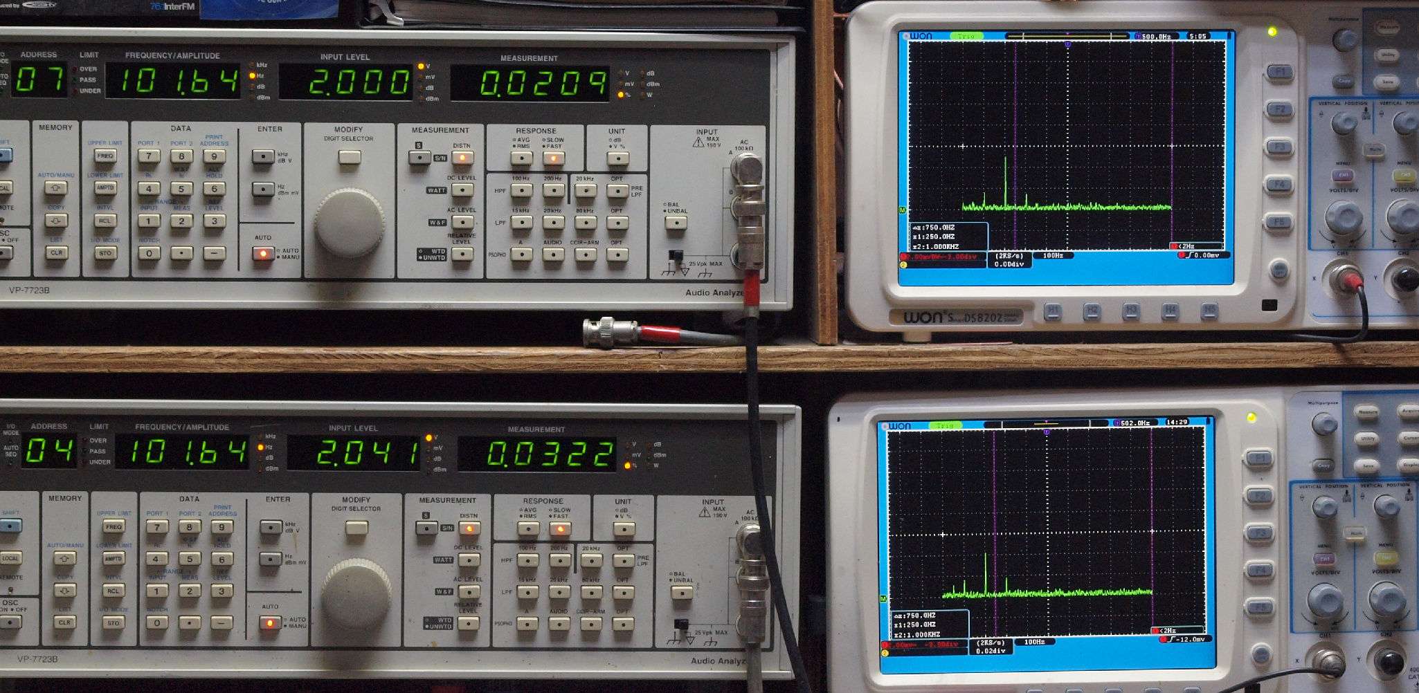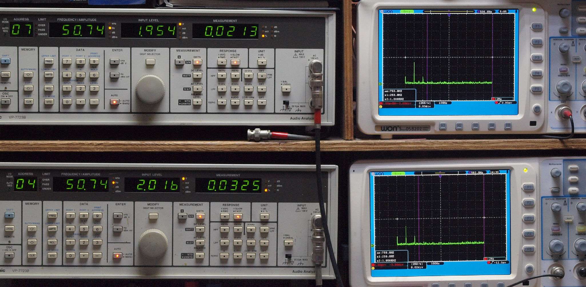 よって、ダイアル設定出力レベルより低くなります。測定機器の仕様や整備の様子はこちら、「VP−7723B」「VP−7201A」。 FFT画面の見方はこちら。