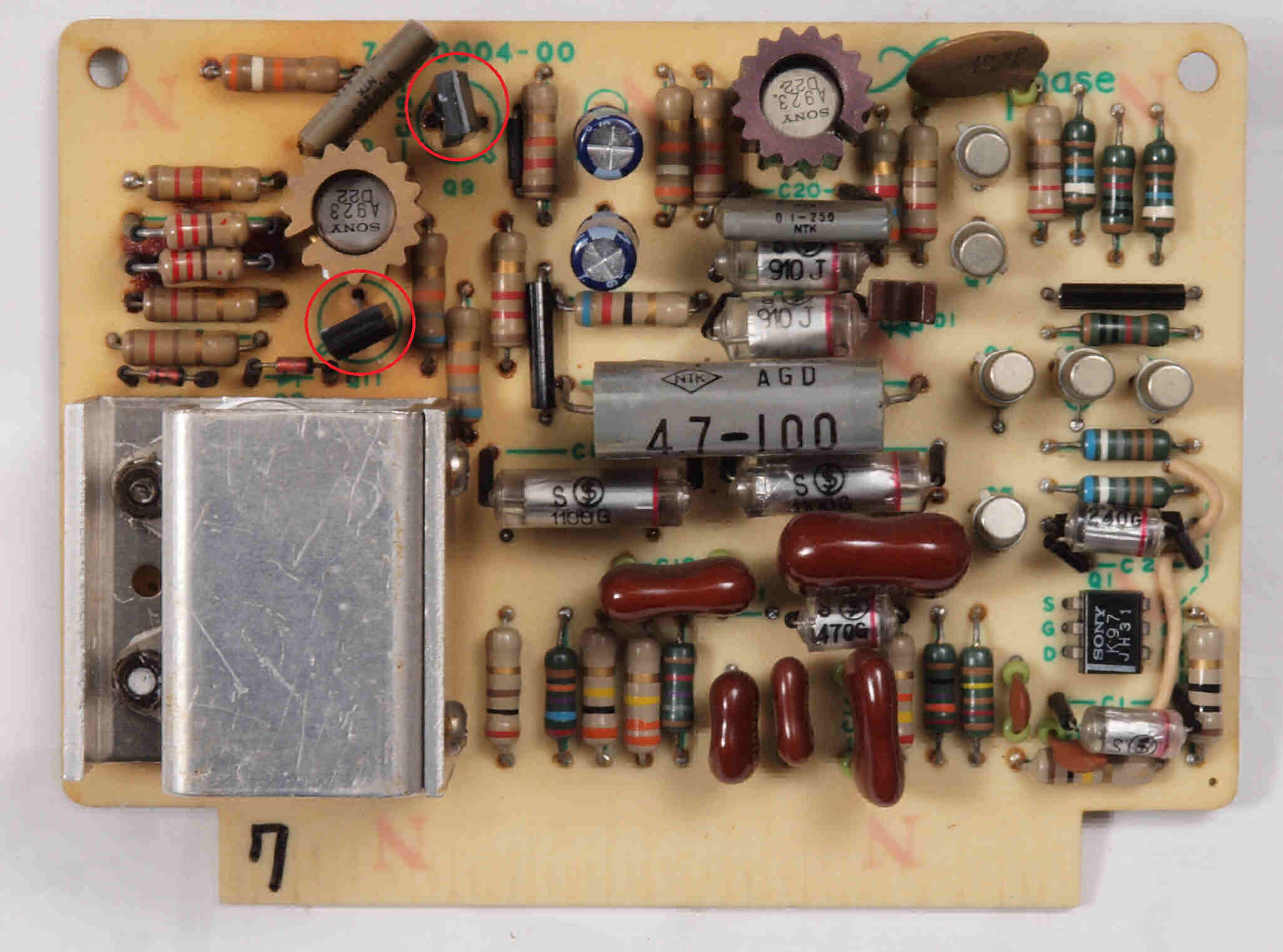A1. 修理前 R側EQ_AMP(イコライザー・アンプ)基板。