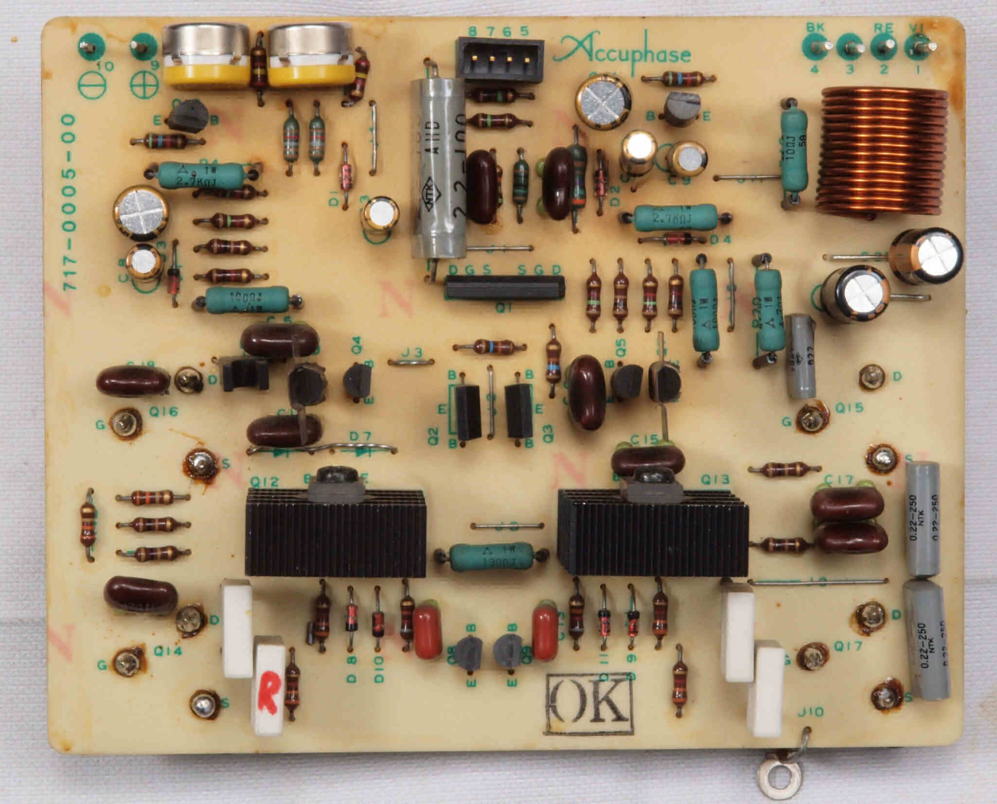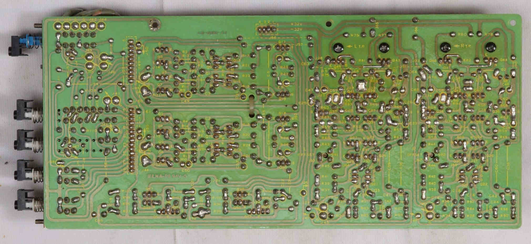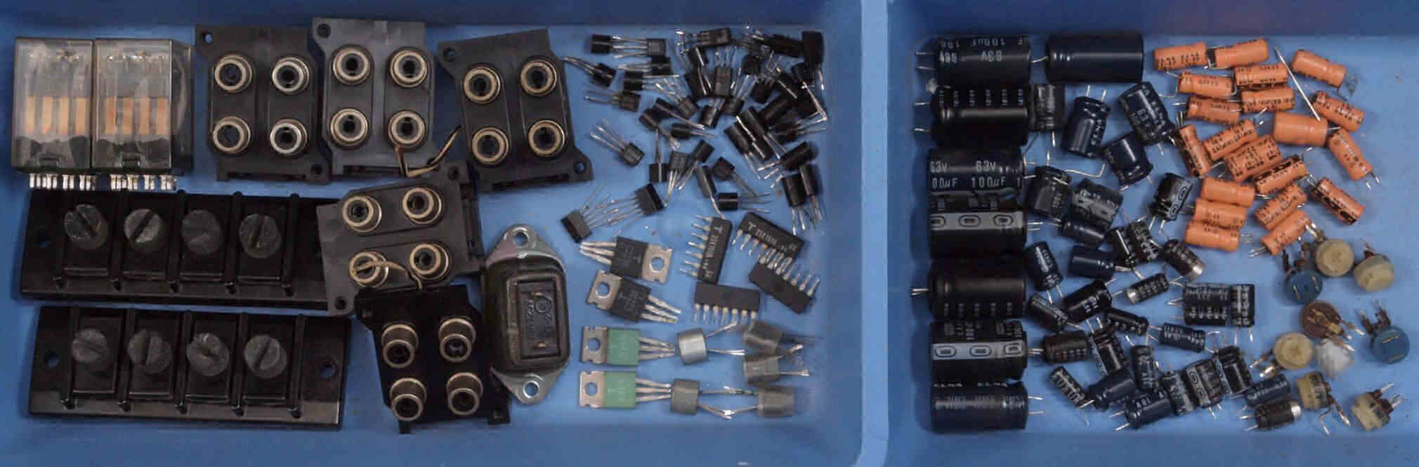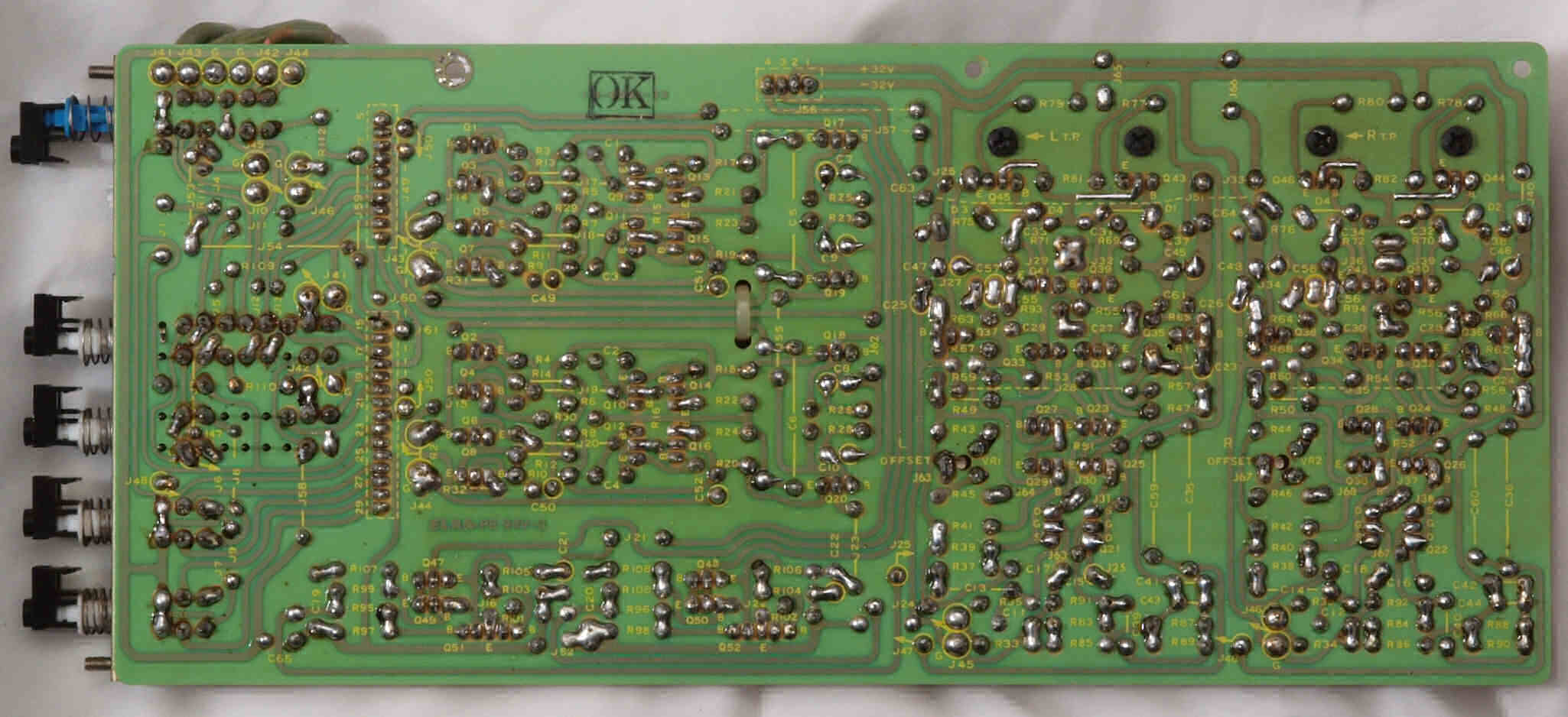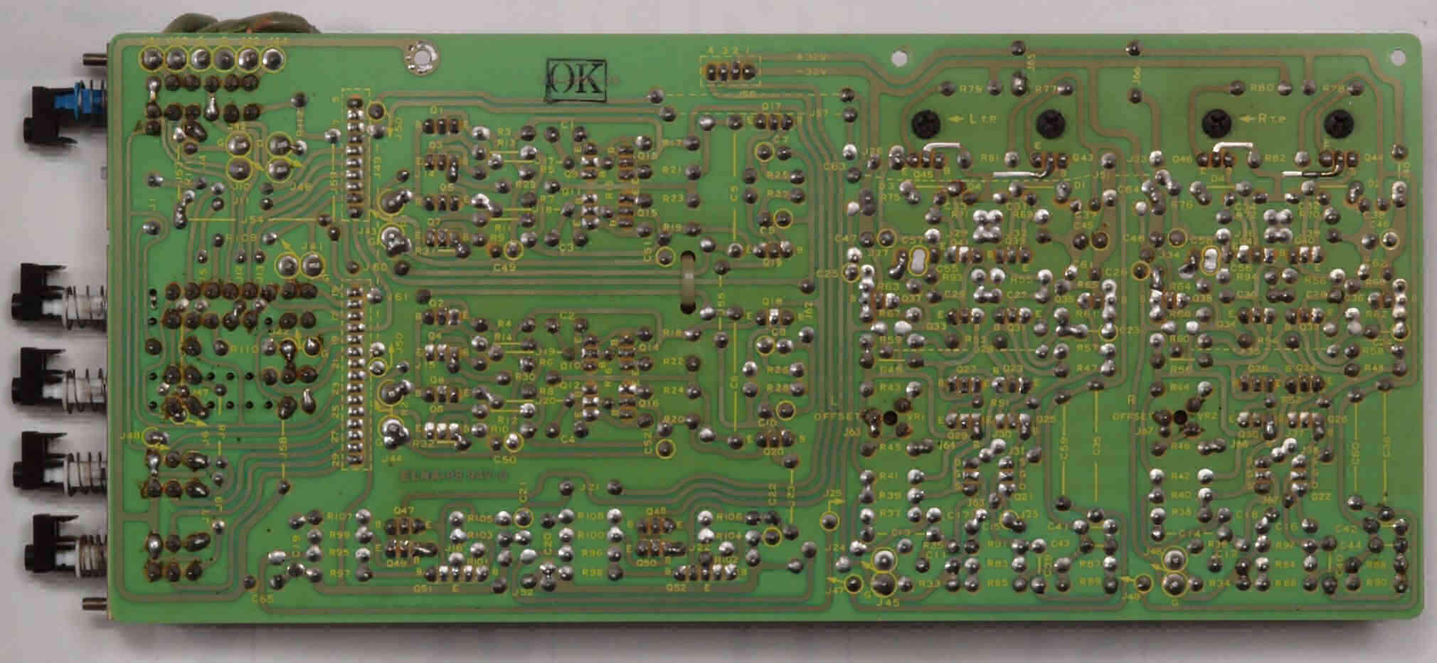 初段複合FET(電解効果トランジスター)4個、TR(トランジスター)24個、半固定VR2個、電解コンデンサー6個交換。